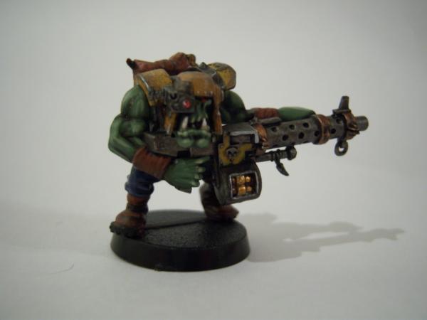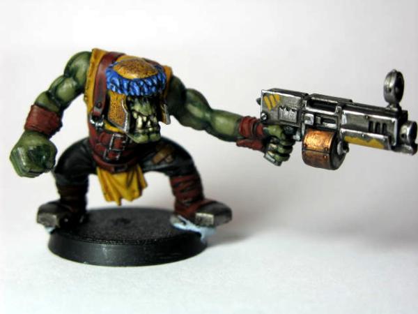 I can't make up my mind what to paint yellow on the Ork I am currently working on, this is the figure