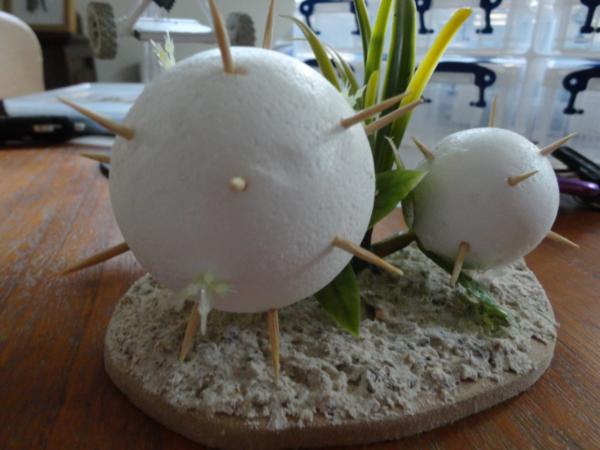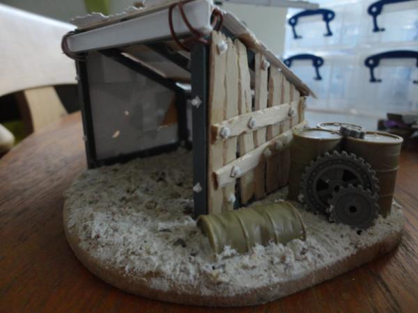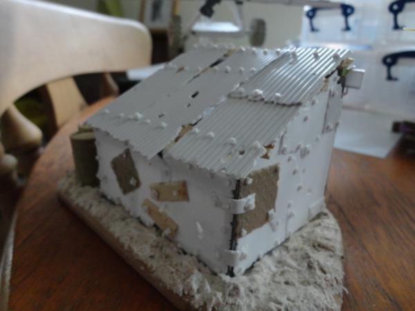 In other news I bought a airbrush and compressor about four months ago, but I'm one of these guys that puts of doing new things, especially when there is a risk of trashing expensive models. So I decided to build some small scenery pieces to test the airbrush out on. I've built a small scrap shack/shed to store gubbins in, and a spiked plant thing inspired by the old GW cocktail stick cactus.