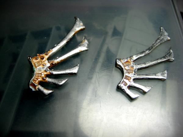 Yeah, I really like the nice, flat bits of armor. They fit perfectly, look easier to sculpt, and look perfect for the theme. Texture be damned, a bit of chipped up laquer and those would looke perfectly in theme.