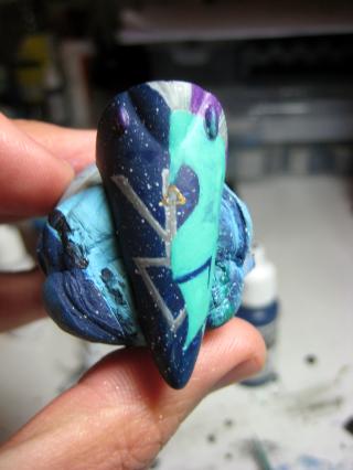 Front - I'm pleased overall with the work, but the cloak on the front looks a bit on the long side.. That, and the GS didn't lay properly, leading to the folds. I started sanding it, and it still needs a bit more.
