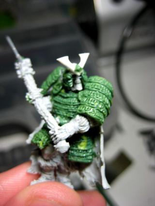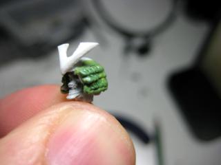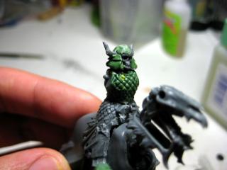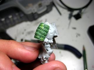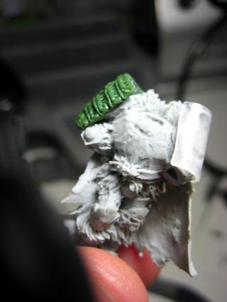 2- Sideview- current one has the nub taken out from behind the head, and green-stuff to reconstruct it onto a more fitting shape