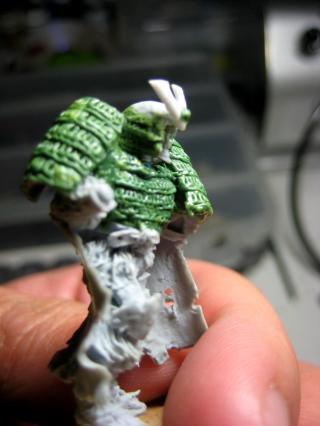 PIP Wizard Back- I'm overall very pleased with the green and the gradations... but the horrid GS work and other bits and pieces... the fact that I didn't clean him at all before putting hime together... yep. Knocks it down a few pegs.