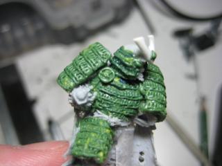 And as a sneak peek, I’ve got a single shoulderpad and leggings (possibly gloves?) to finish on Topknot before he’s finished. Definitely my favorite of the group.