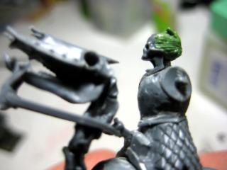 Then I figured they needed weapons if their lances broke (preferably on their enemies)- so I made a trip to my FLGS to get some plasticard. Shaped, and added a bit of GS on the ends and mid-edges to get a handguard for each. Yes, I realize they are a bit "thicker"... no, I'm not going to do them over.