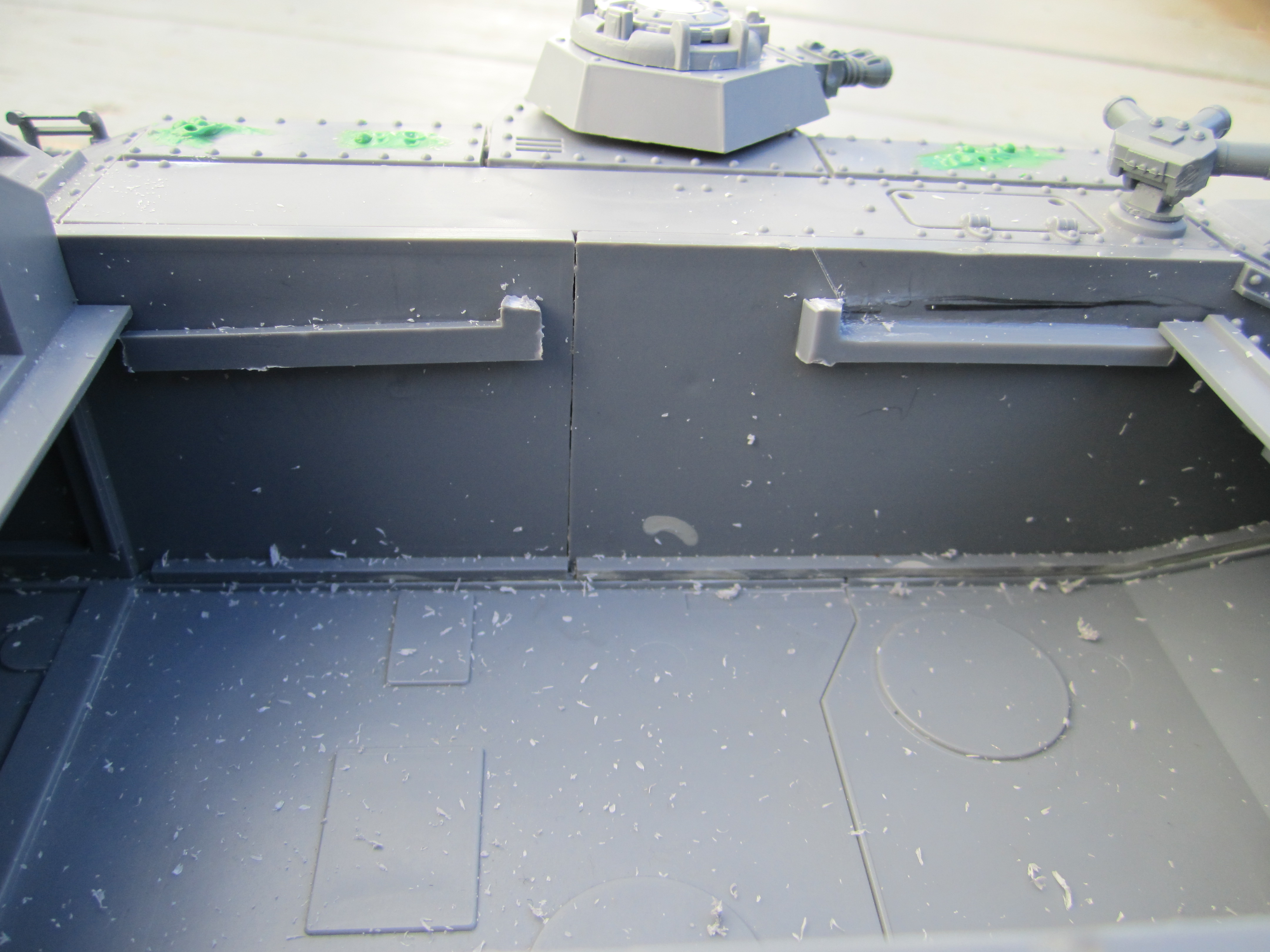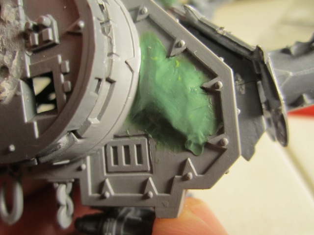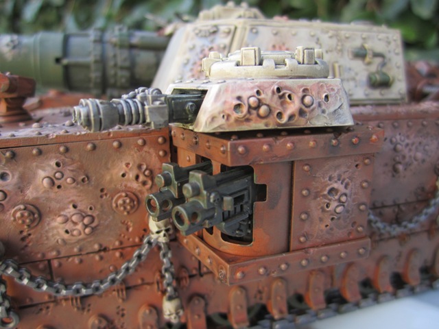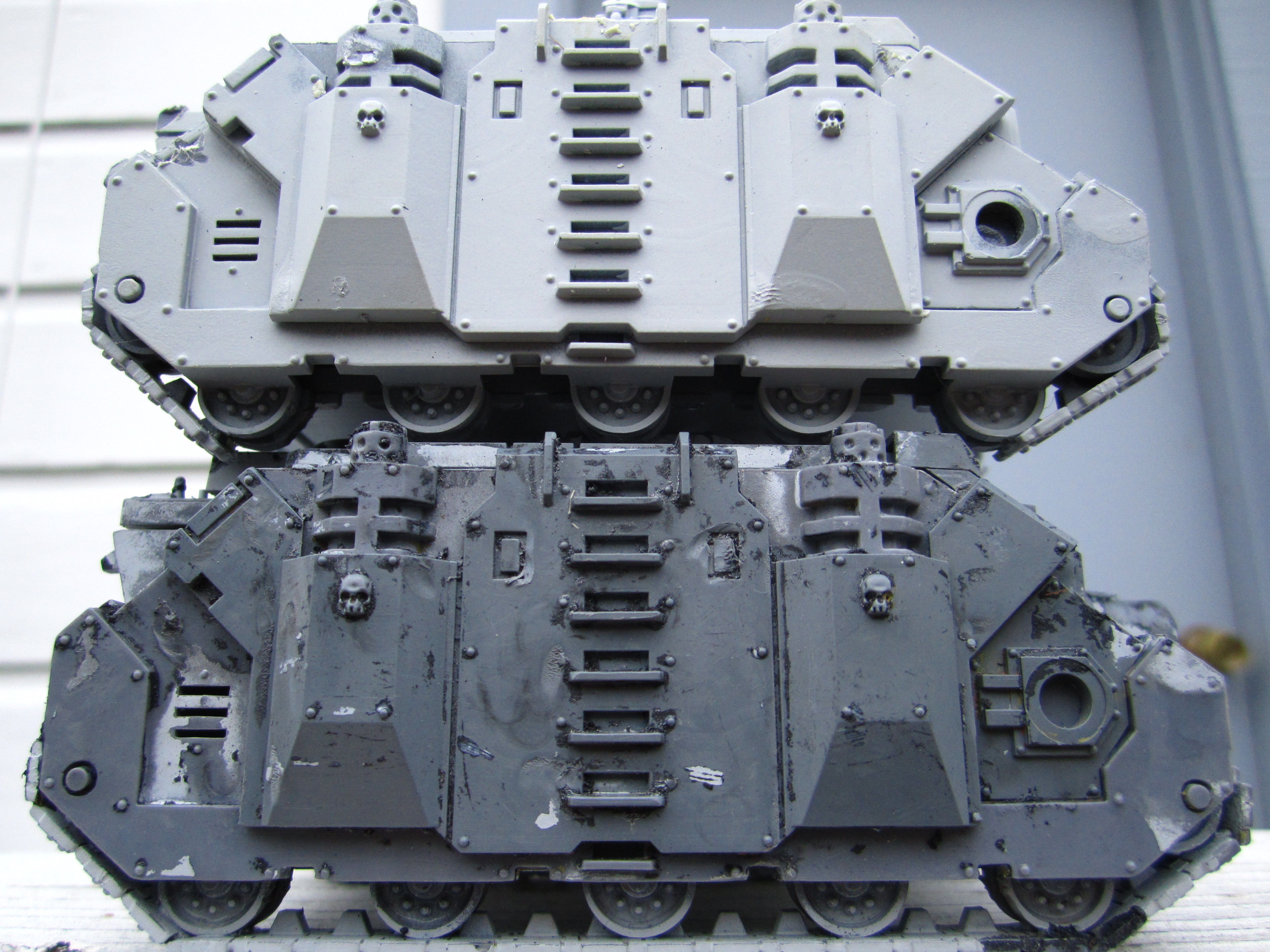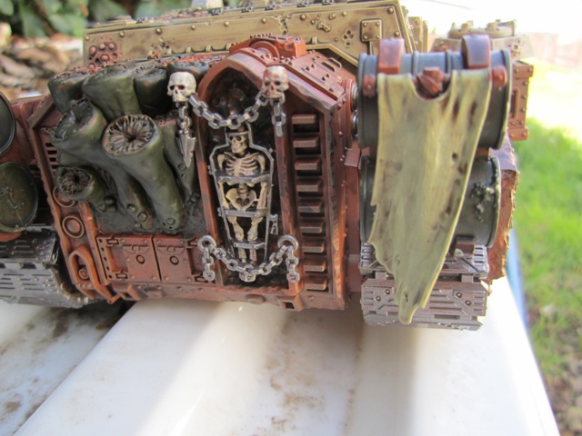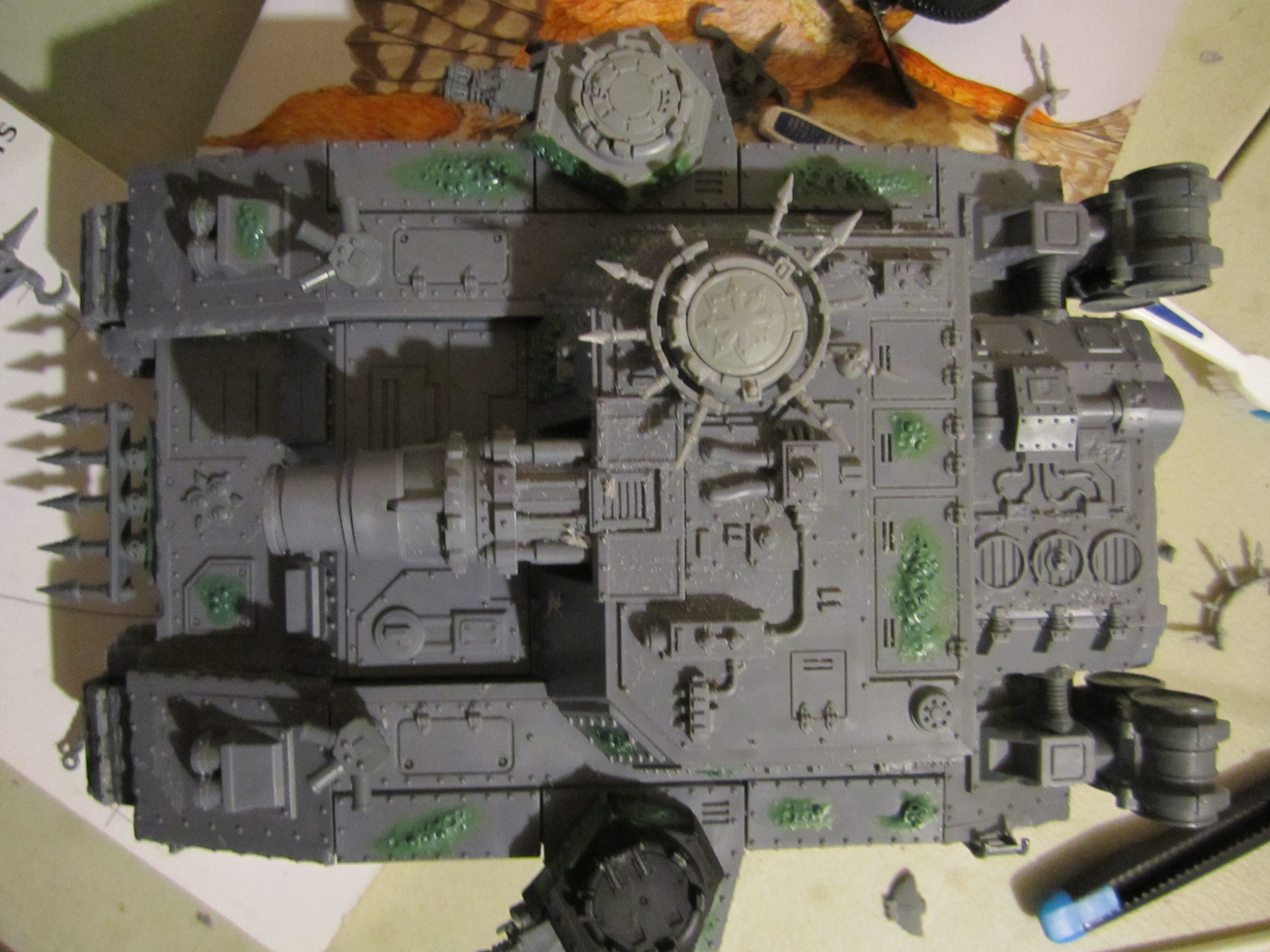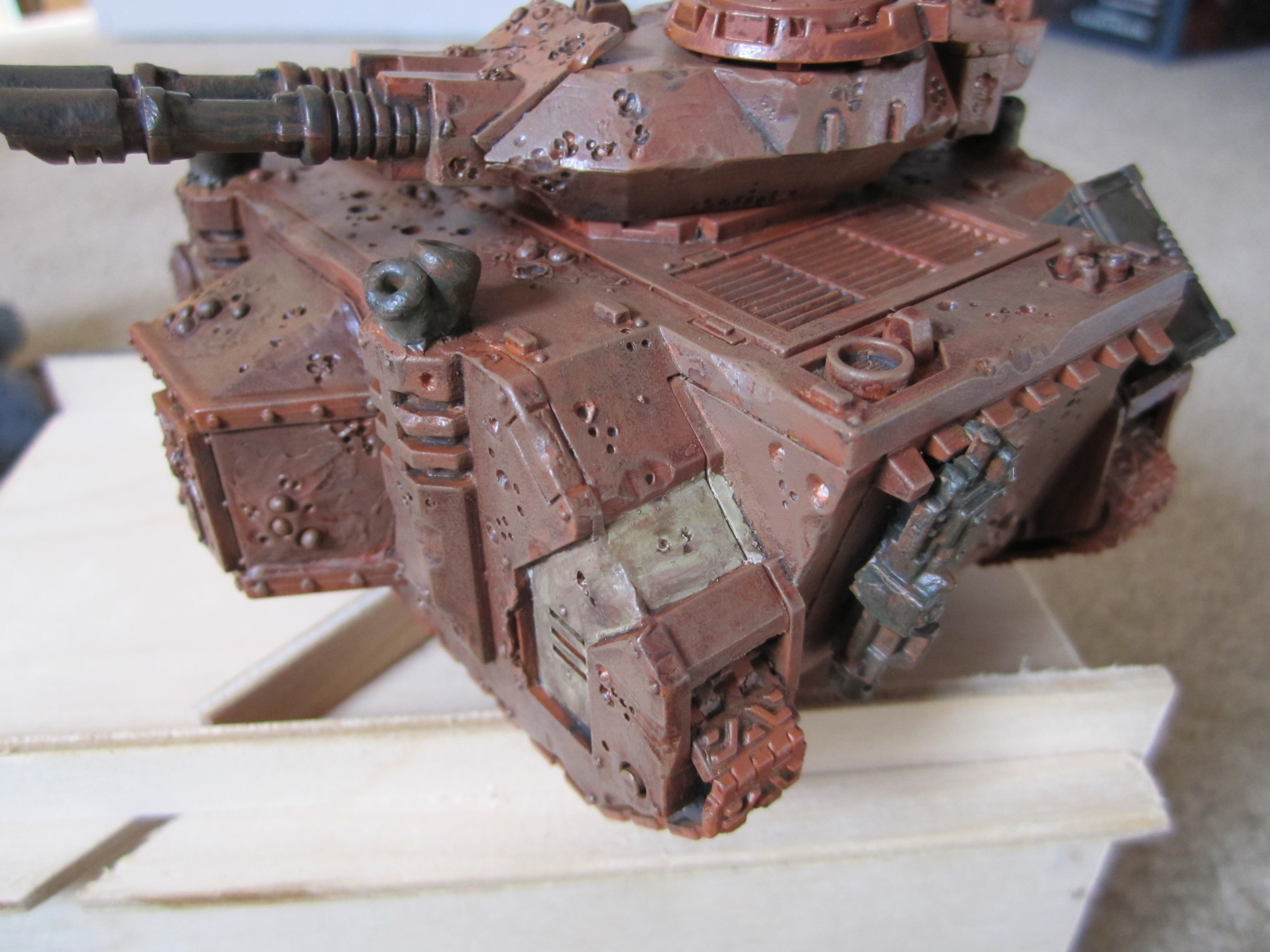 SO its been a little while but as with all projects that i start they move in fits and bursts of energy. My land raider and my terminator squads are the first that are feeling the shift in attitude. I spent a couple of hours working on adding the mark of nurlge to the outside pannels of my land raiders. Hundreads of holes drlled with a pin vice drill and lots of scaping on the sides and edges so that there is lots of evidence of corrosion and wear. Yeahhh. done for the most part.