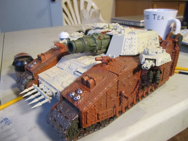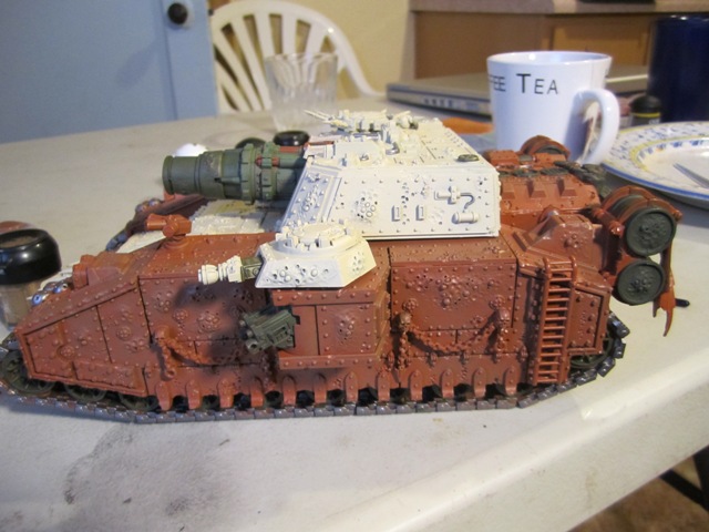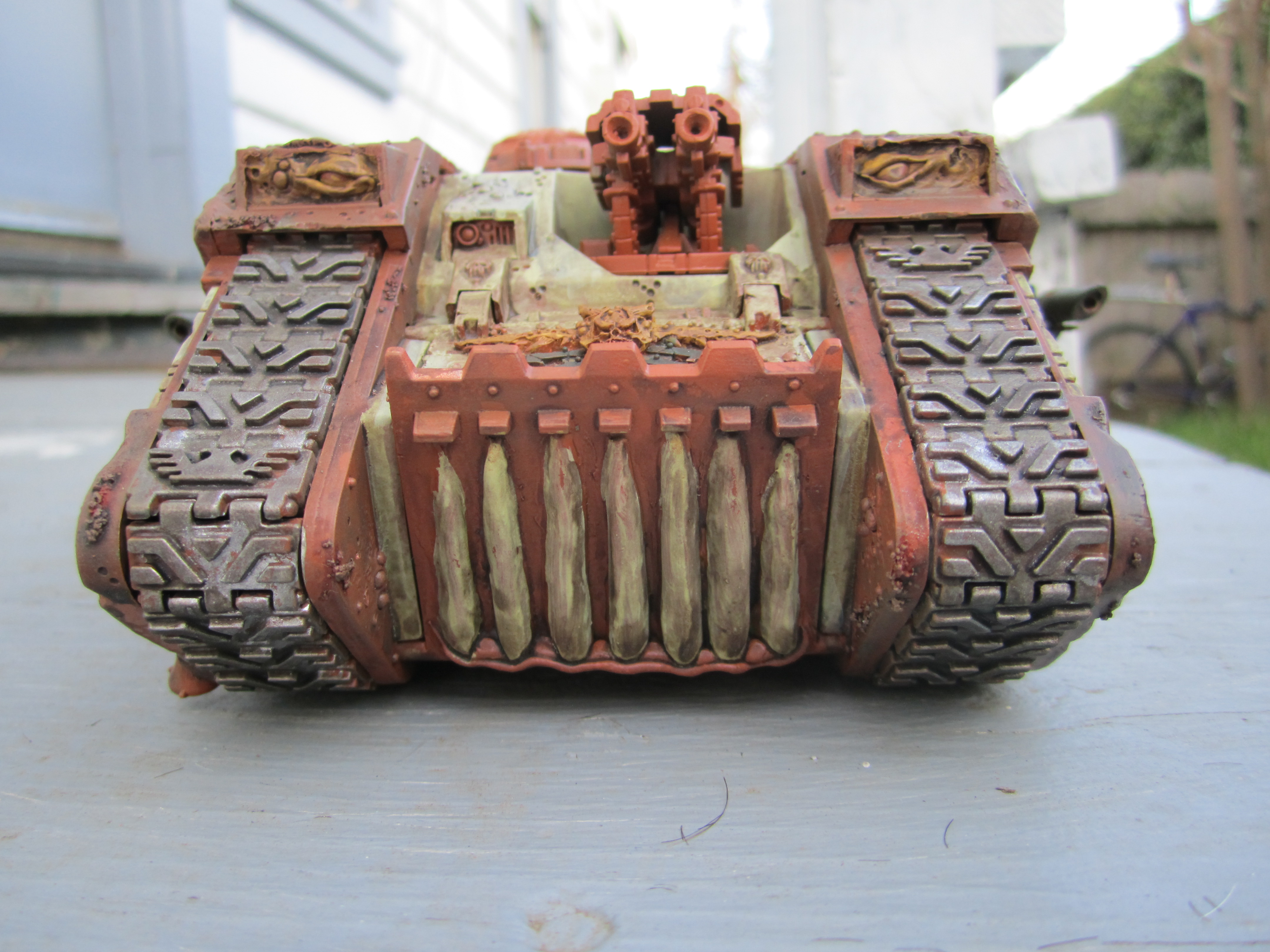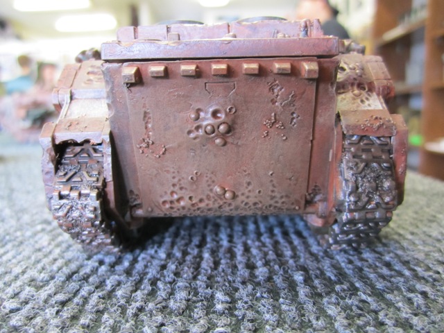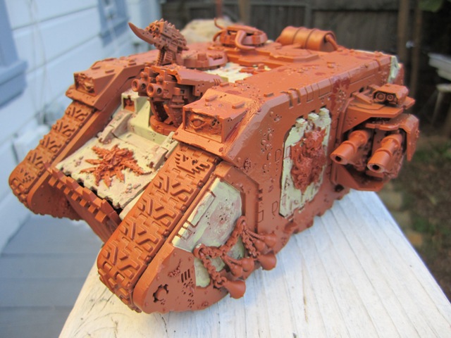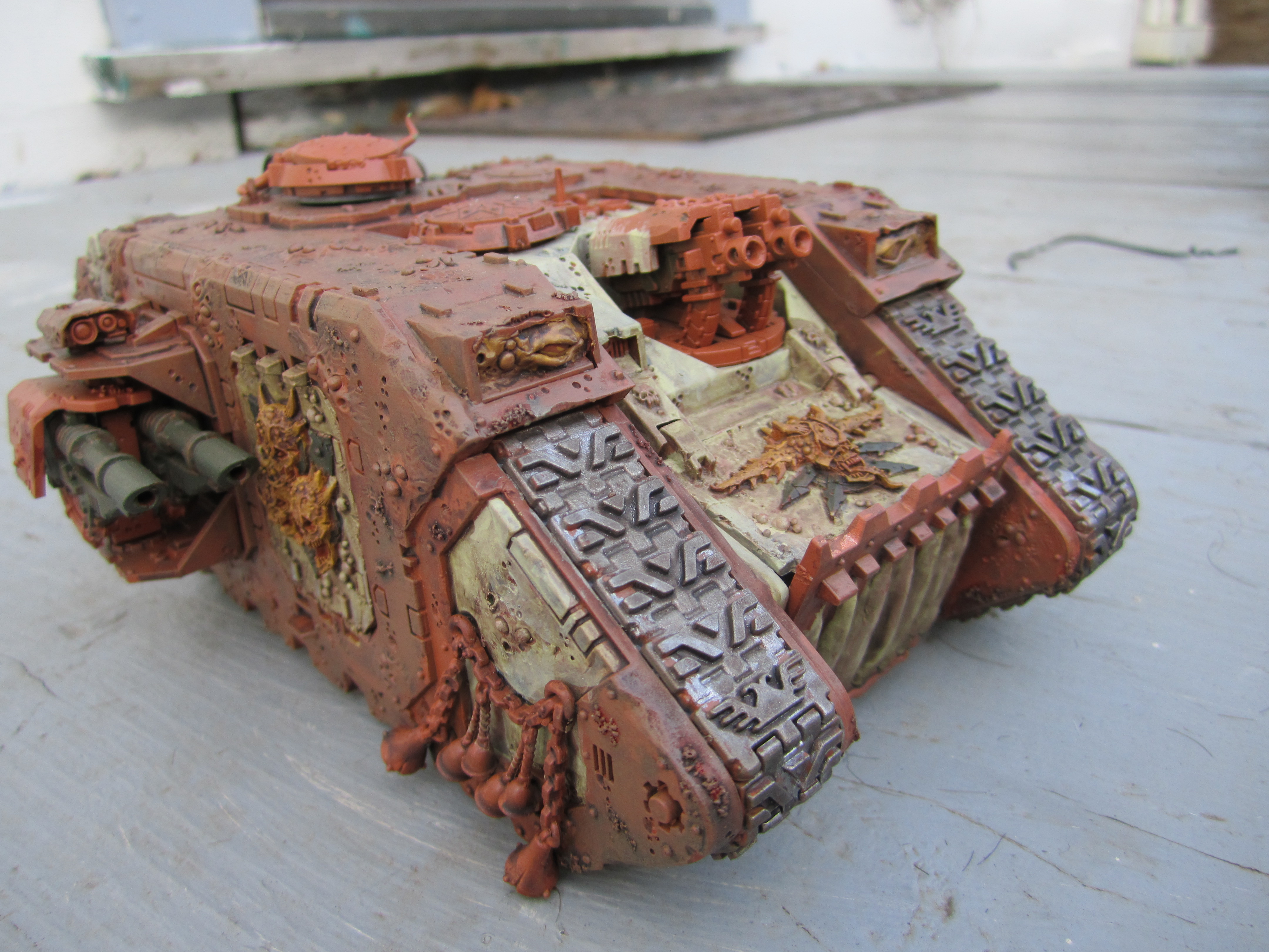 the rhino i won a local painting contest with which gave me a big boost motivation wise to continue plugging away at this. i think i used the cash from the win to buy a land raider that i still have to assemble.