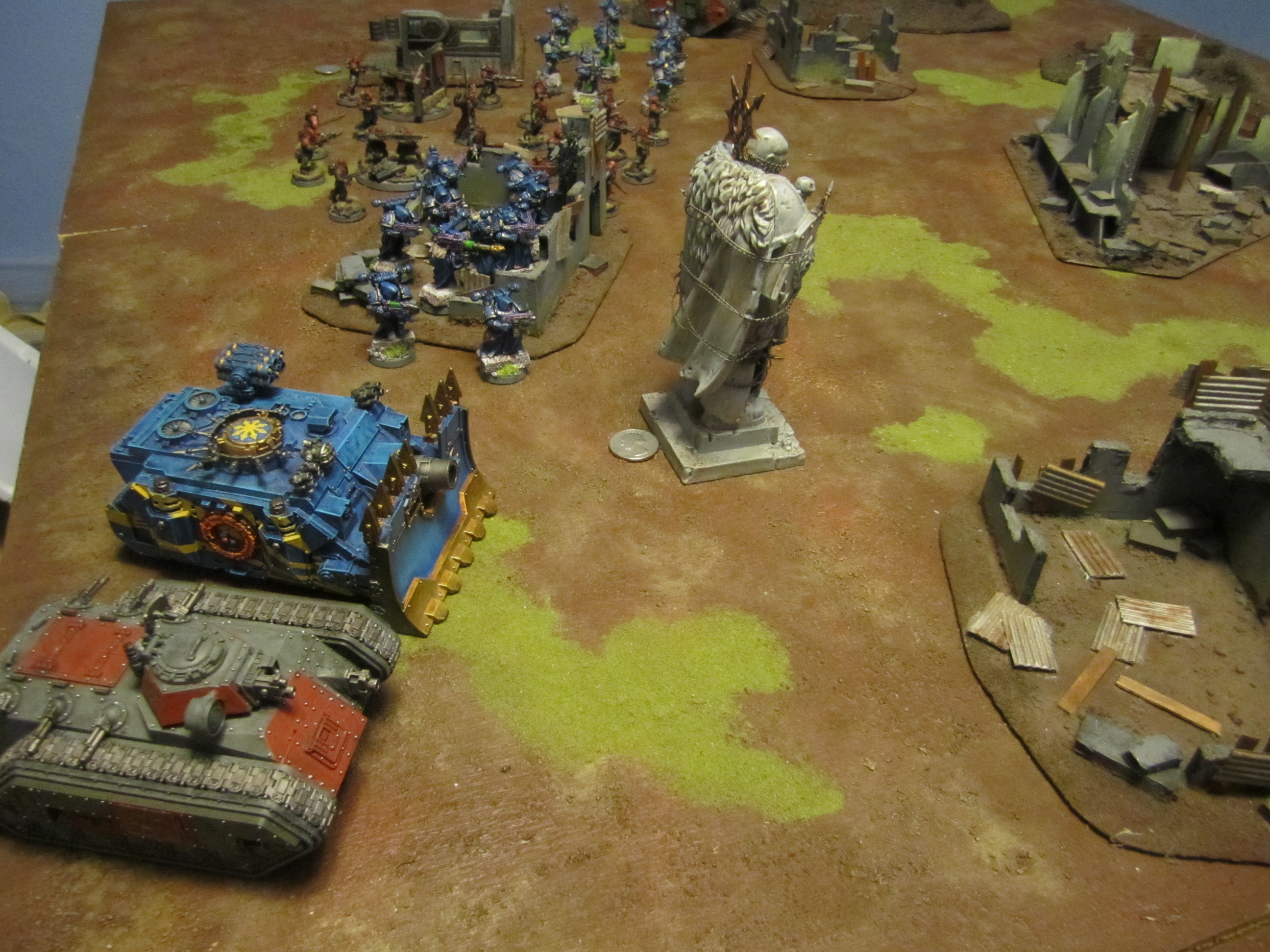 Looks awesome. I am so stoked you are helping me out with the fortress! I wouldn't have thought of that way to cover up the angel wings. It's looking great. I hope your neighbor does not complain. I'm really happy that this fortress is not going to look like a fortess with chaos spikes on it. It is going to be unique.