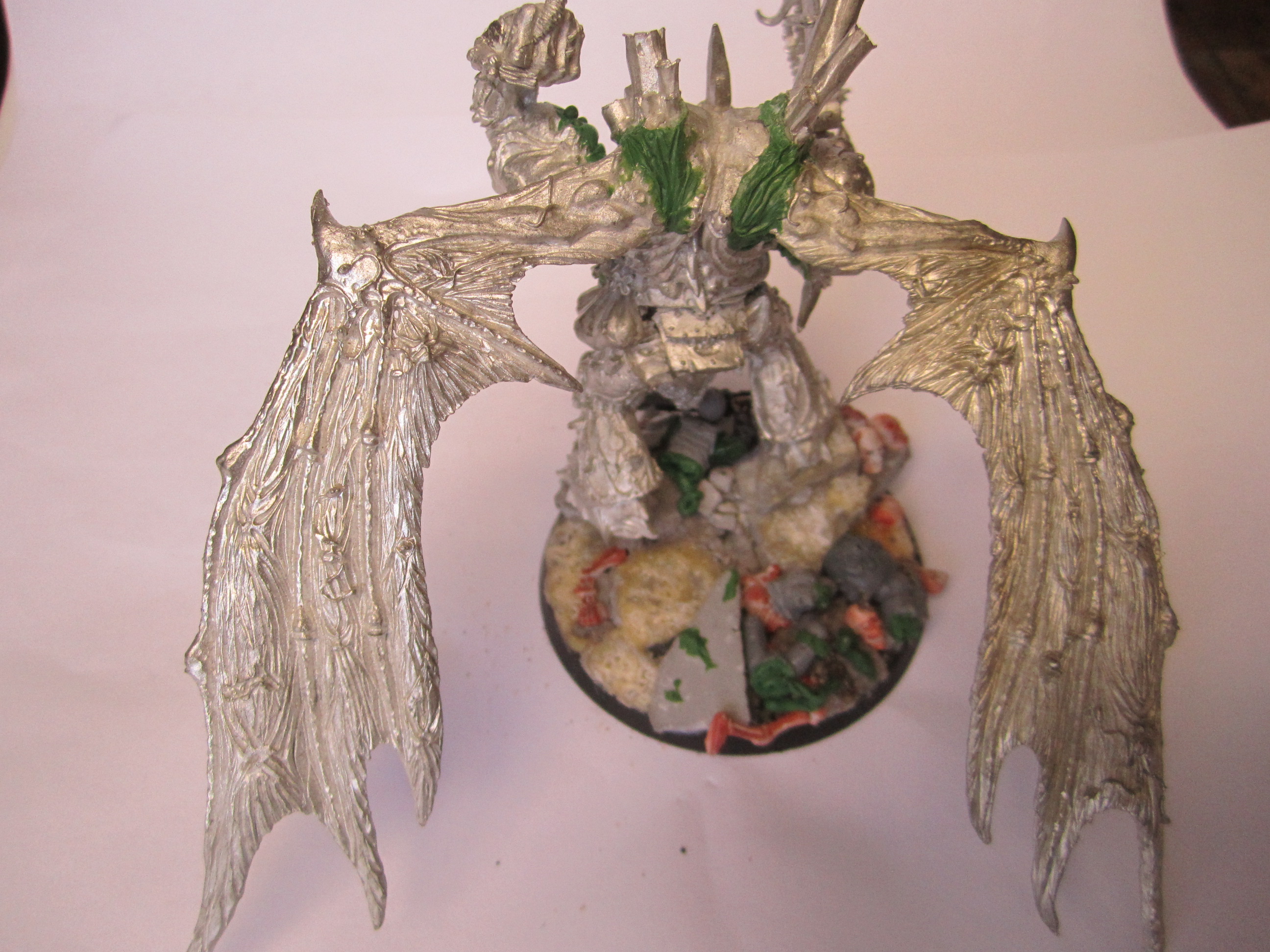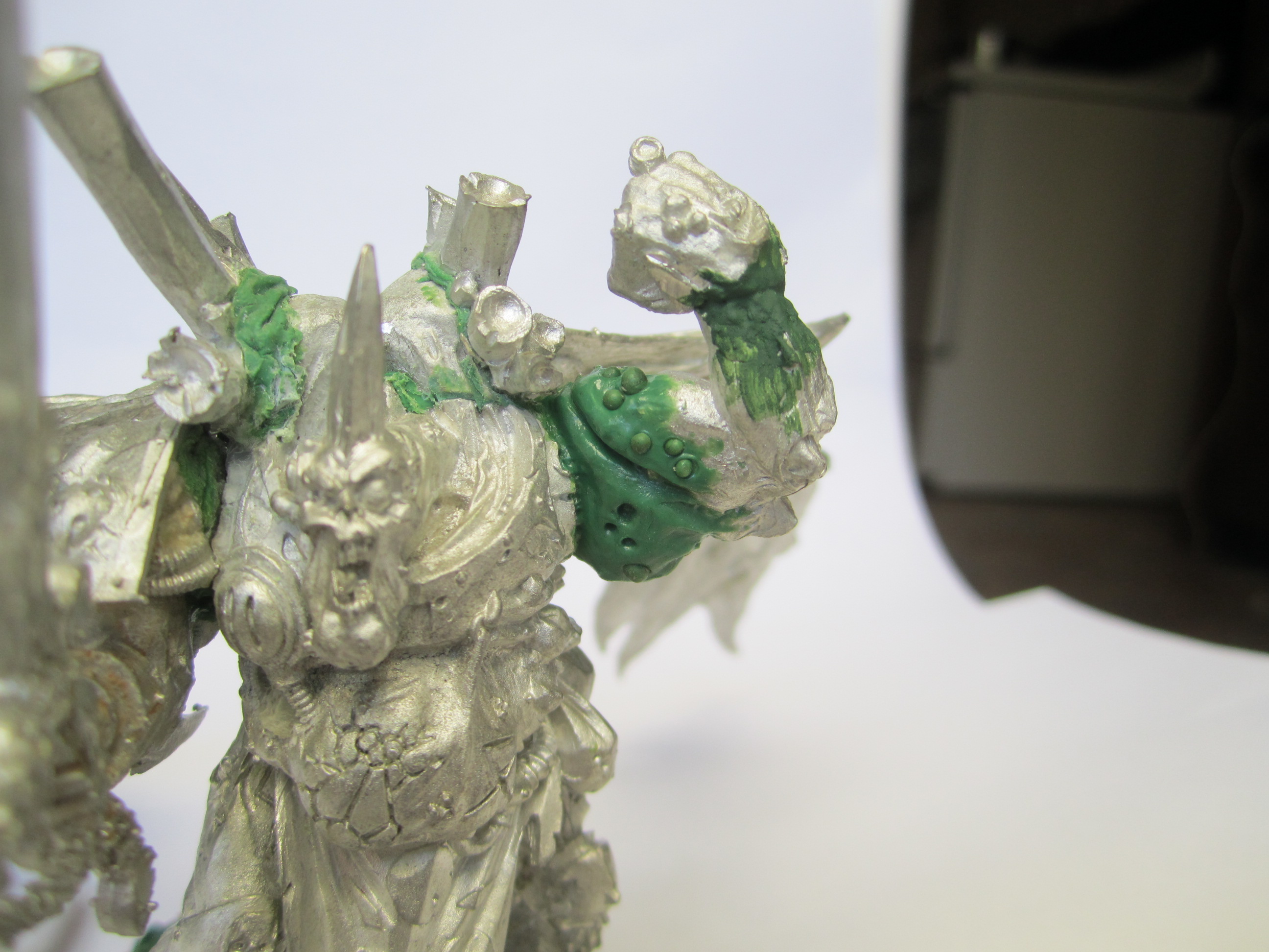 So i finally am done with school (enough) that i can work on my Nurgle army. There is a 700 pt tourni coming up that i am going to play my deathgaurd in for their first official time in a game EVER. Yep thats right i have only played them one other time and that was as part of a Apoc battle where i was using a lot of borrowed figs. THis tourni will be their official debut. SO in order to field them i needed to have my demon prince painted enough to field as he will be leading my army.