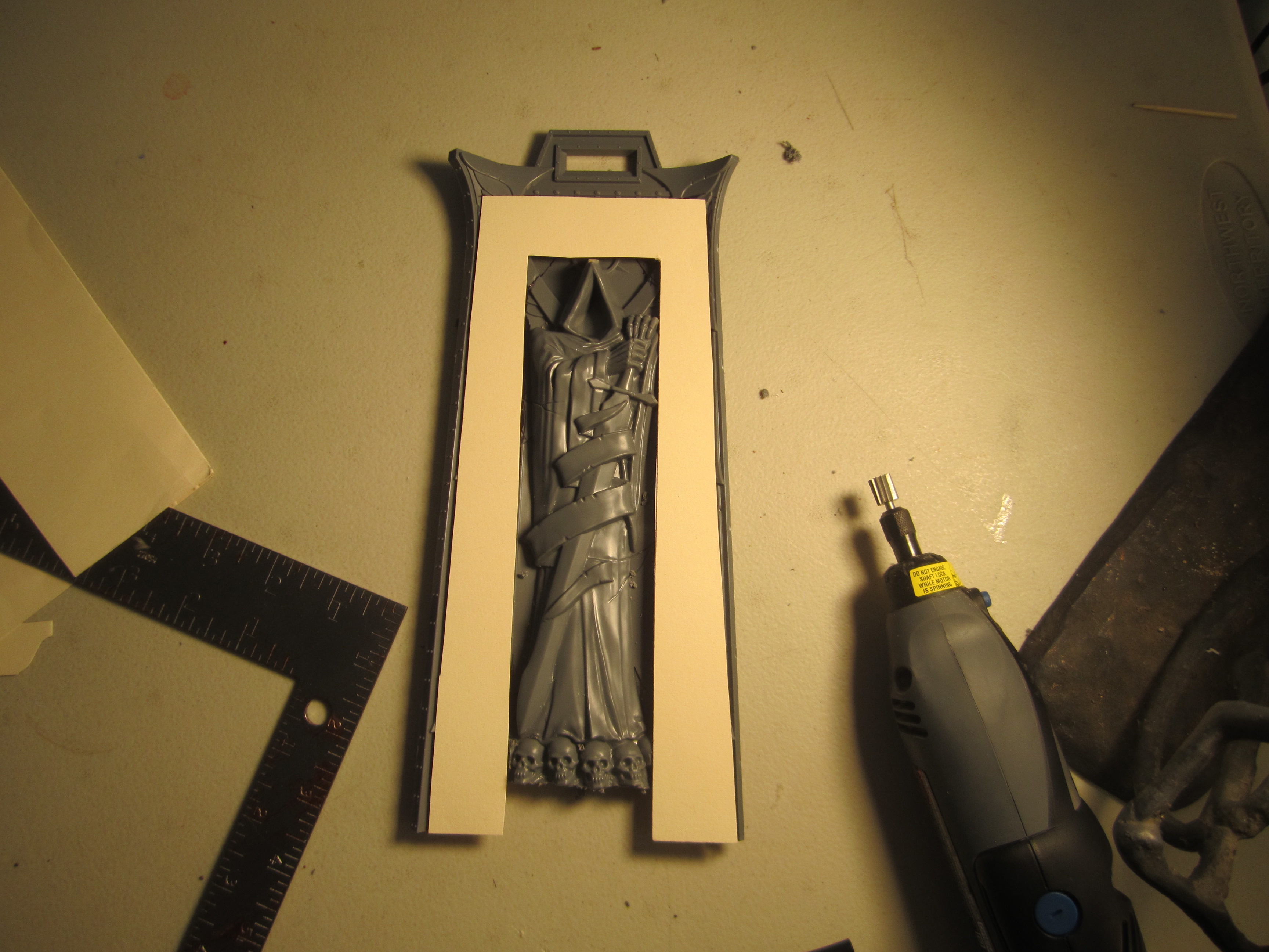@ Magnusthered~ Hey man. Glad to see you here since THIS is your fortress. I too am happy with the way that things are progressing. I am going to take the plunge and cement the inlays into the tower. Next step after that is going to be adding the plates and rivetting the outside. Probably another four hours of work. Still tossing the idea of the four patron gods around as a possible for the idols on the side of the tower. I am going to have to actually mute their faces slightly as far as detail goes so that they will look more like statues. The chains and spikes are gonna be some of the last details that i add so stay tuned.