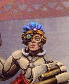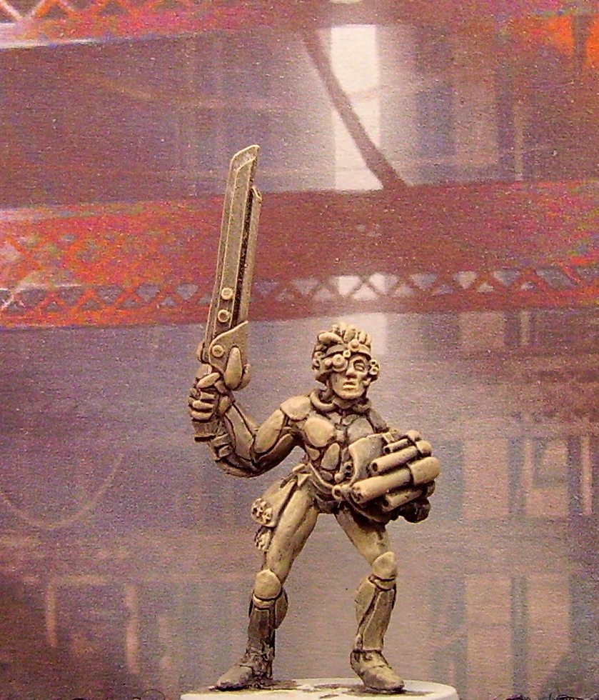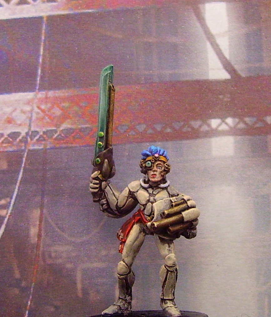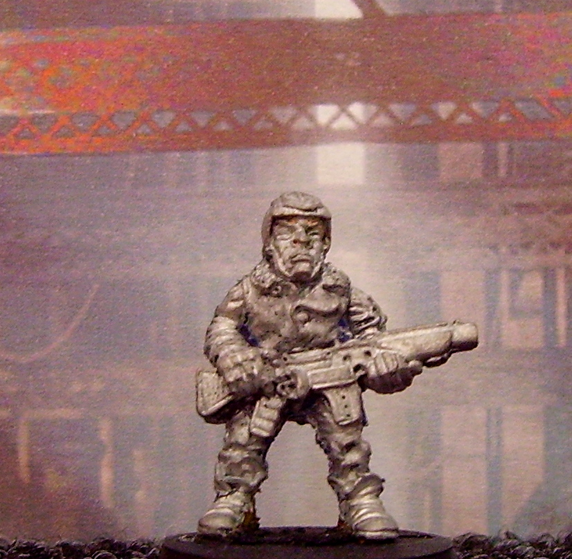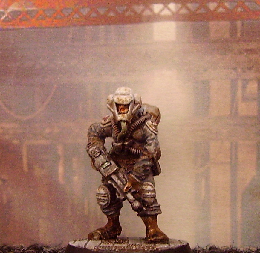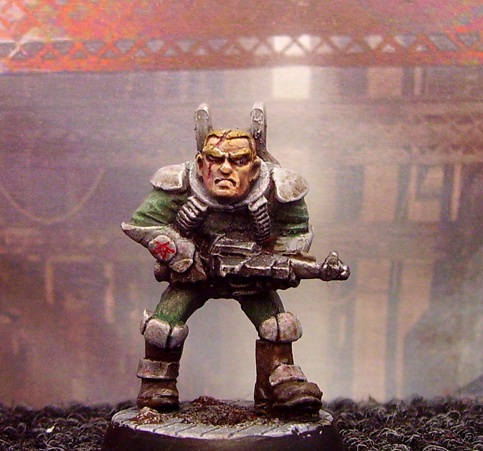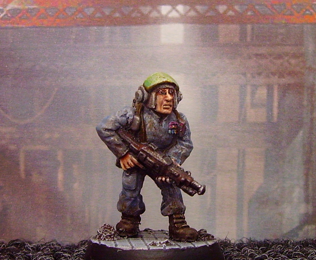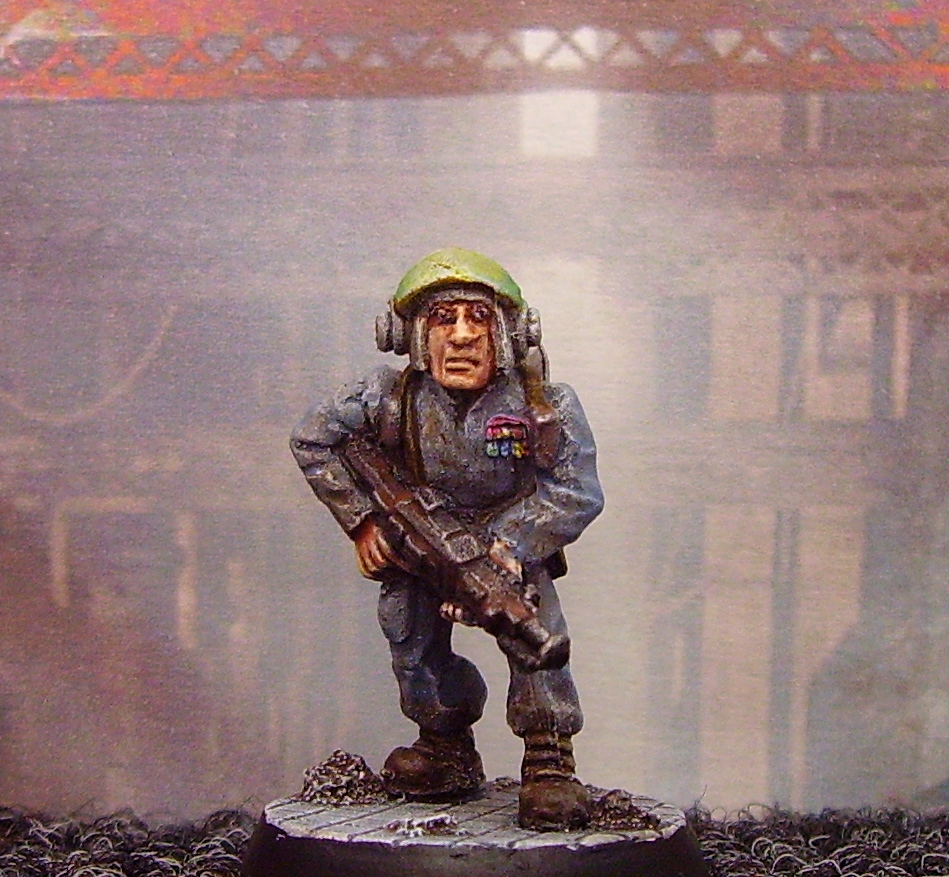 Thats the name GW give him in the catalogue but I might call him "crazy" Ivan Oblastov, most daring pilot in the Lambada Spur. Dishonerably discharged from the navy for his massive Krak habit, Ivan needed creds and a ready supplier - he found both when he joined the mercenary warband (need a name for them soon).