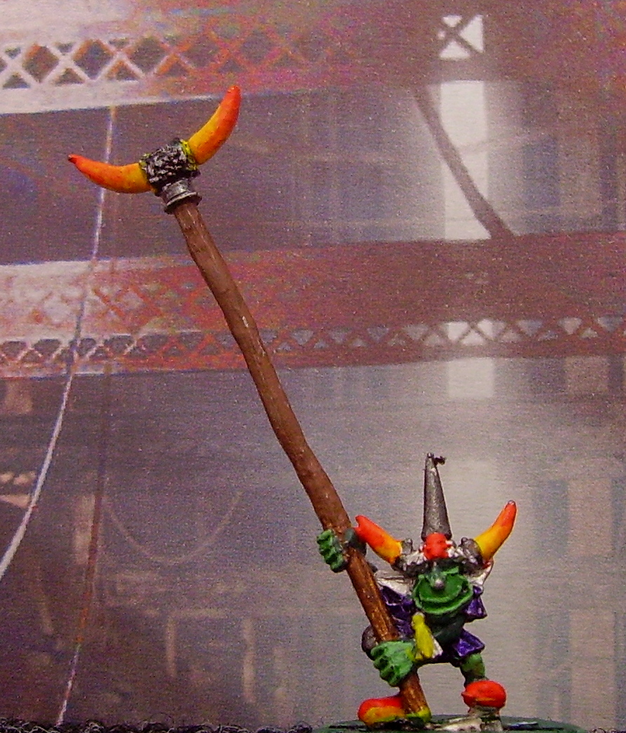 Here is makari (?) the gretchin sidekick of gazukull thraka (who is in the stripping fluid right now). I didn't paint this - all records of this stage in my painting skill have been conveniently wiped from record. A shame really because its always fun to look back.