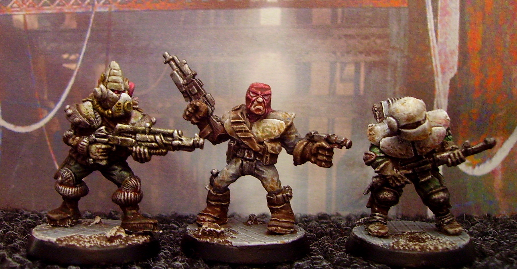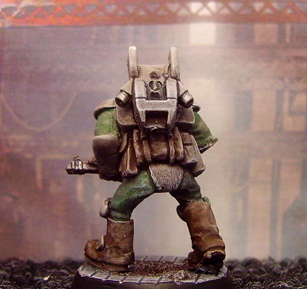 Ooh, now that guy is impressive! Looks like an old Dredd wastelander or something? It's funny how your early shiny palette has been worn down by the grimdark! But a fine thing too.