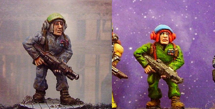 I'm enthusiasitic for painting the chap at the top on the right in the jumpsuit - he looks like he should be their pilot - hes got the right sort of helmet and those things on his cheast could be his old service ribbons