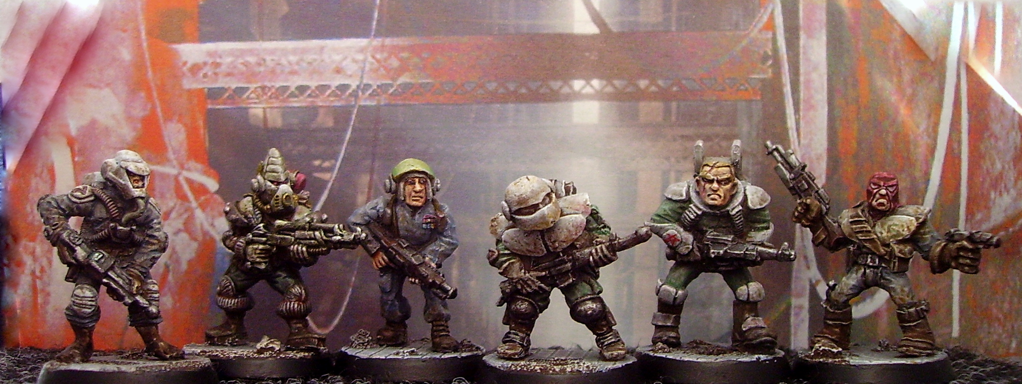 SUCH an improvement Weety - they look amazing together! A real motley crew, and they look tough as nails. As Archroy said, your faces are getting better and better, and the weathering is flawless. I especially love the background for the pilot - totally explains his lighter loadout to the others - if his day goes well, he won't even be picking up that rifle!