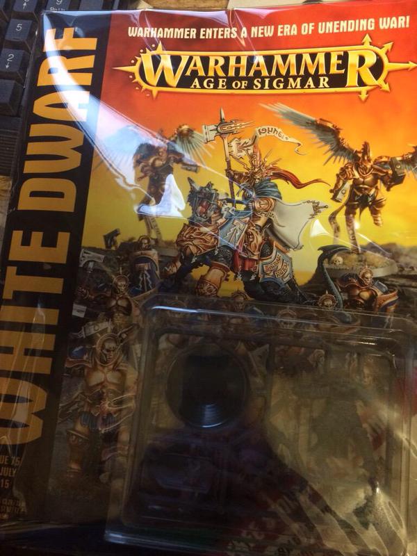 From the photograph on twitter it looks like its next saturday's white dwarf which has the free mini. Might be the first time I buy white dwarf in about 10 years.... Last free mini white dwarf I bought was necromunda! Free orlock or goliath mini. That's going back some....