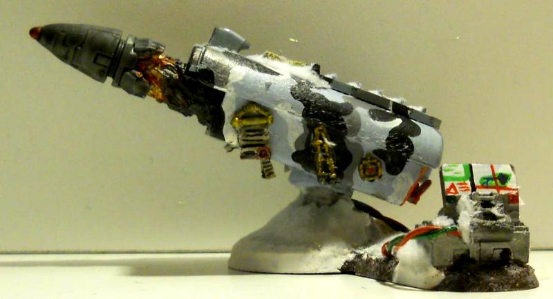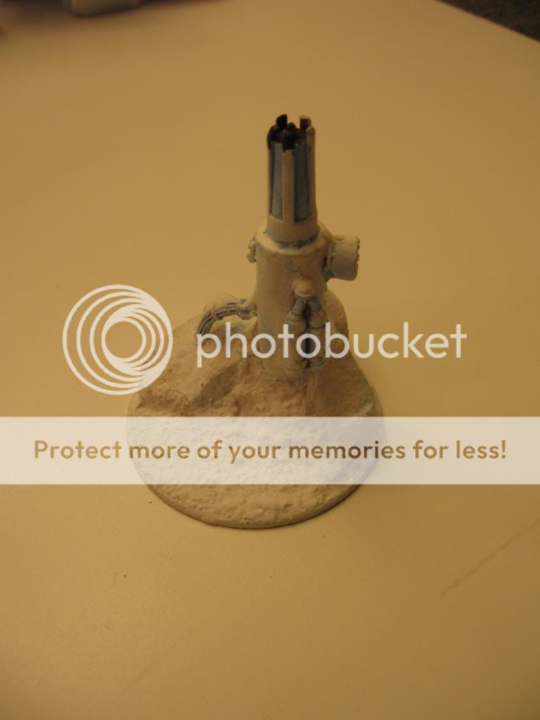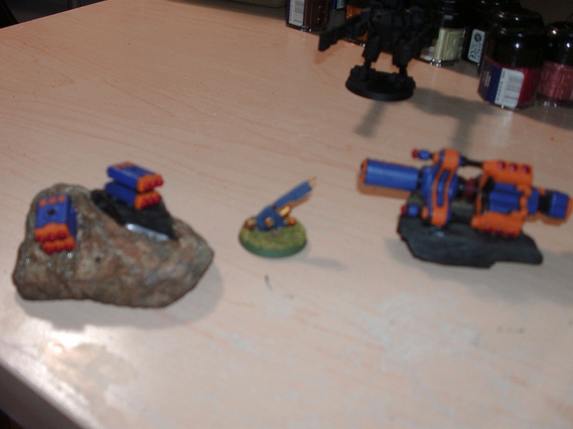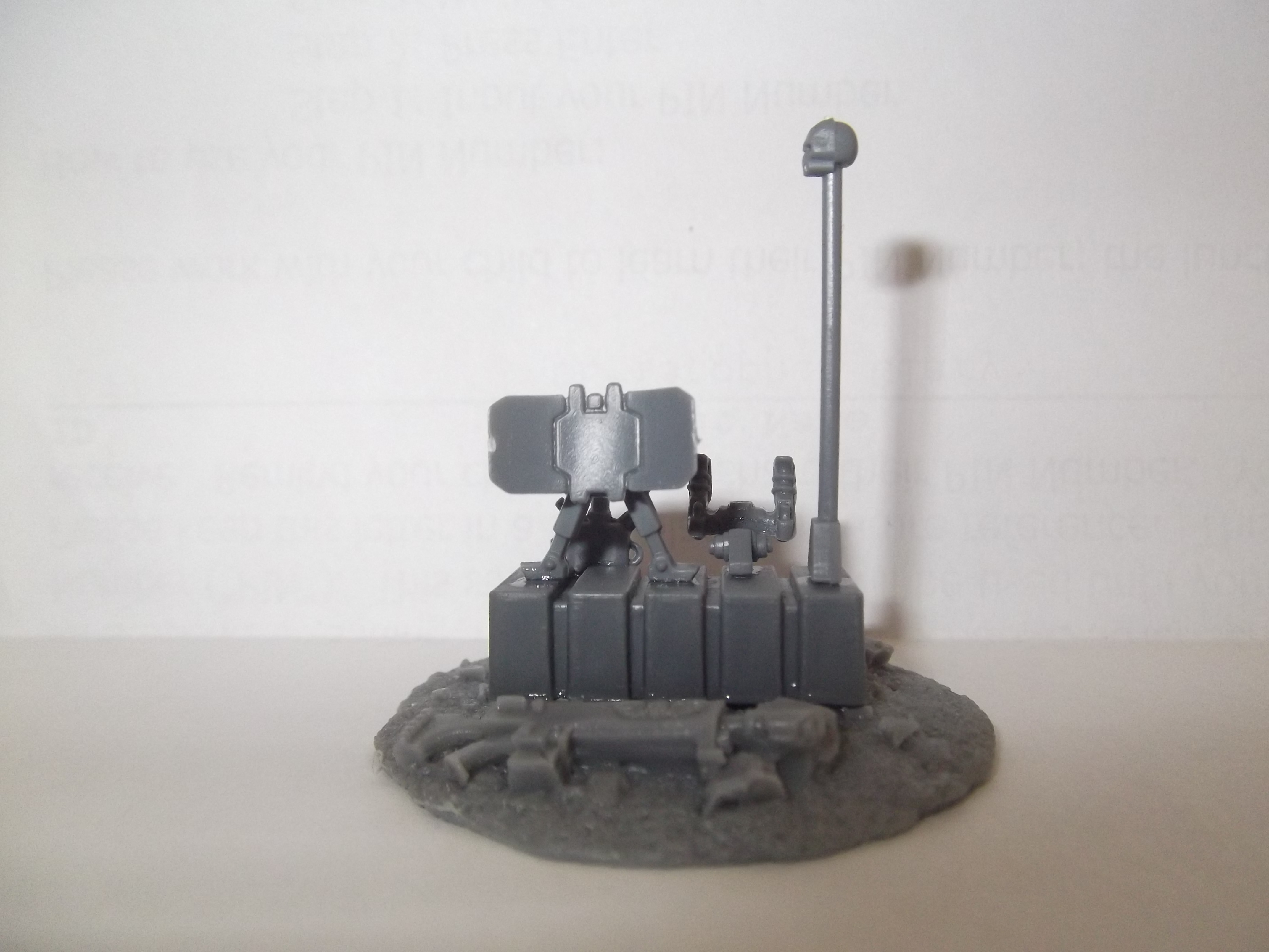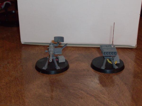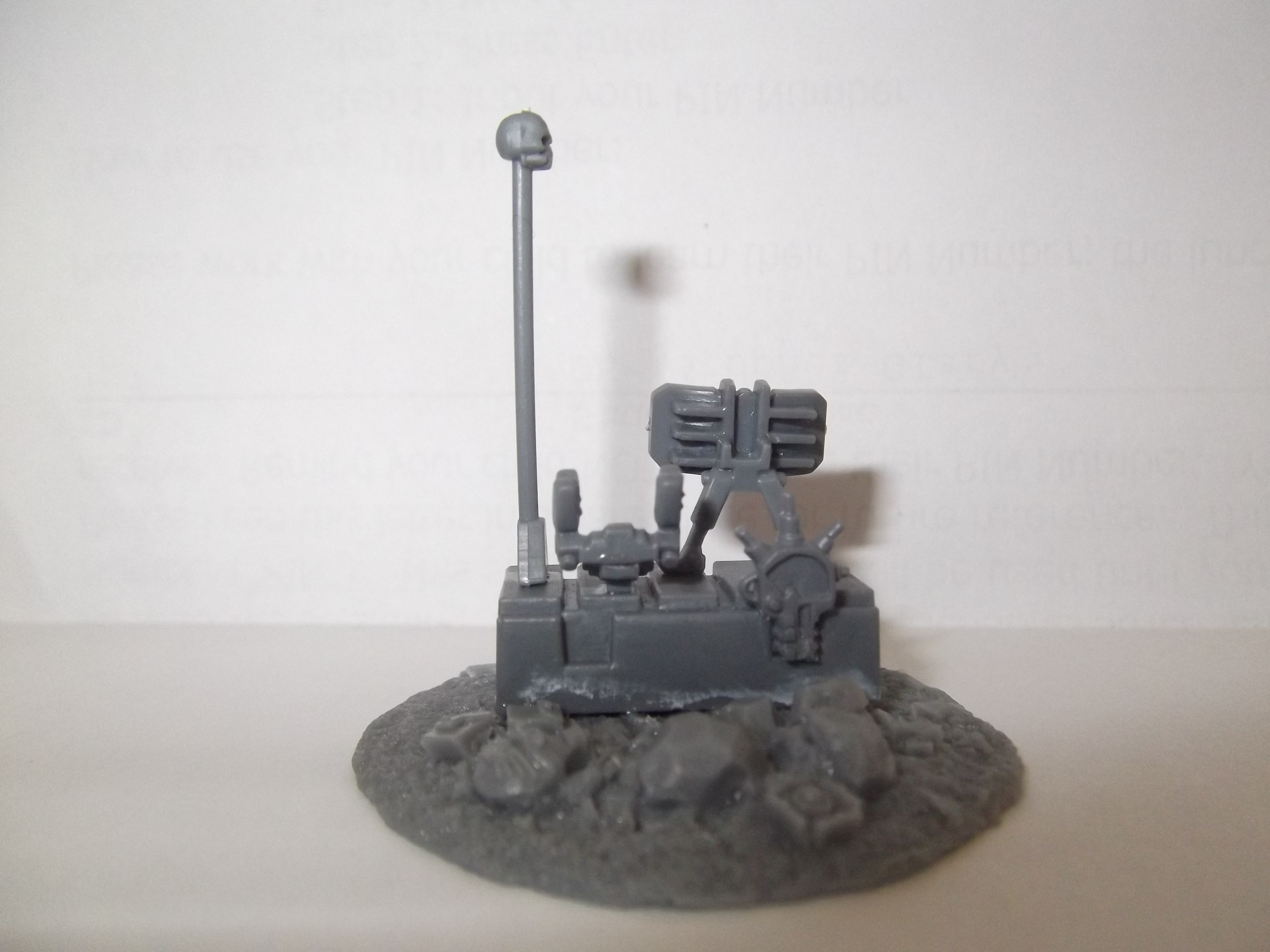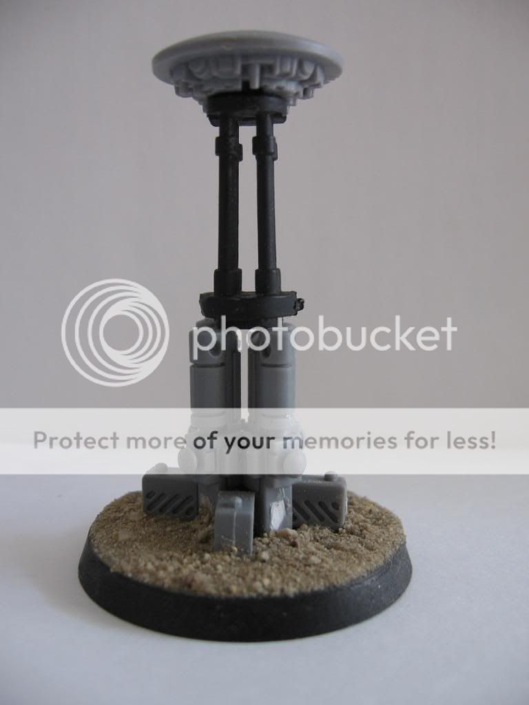 Thanks. The base is a trimmed down Tau drone, and was the fiddliest thing to get right as I needed to smooth down a portion of the top of the drone. The flamer is a land speeder heavy flamer, the RFAC is a Dark Angels land speeder assault cannon with a trimmed down Guard autocannon barrel. The gun shields are from the Guard HW kit. The stand they are on is a trimmed down teleport homer from the Terminator box. The random fiddly bit on the back is a Tau grenade pack thats there just because there is a similar bit on the SC2 versions