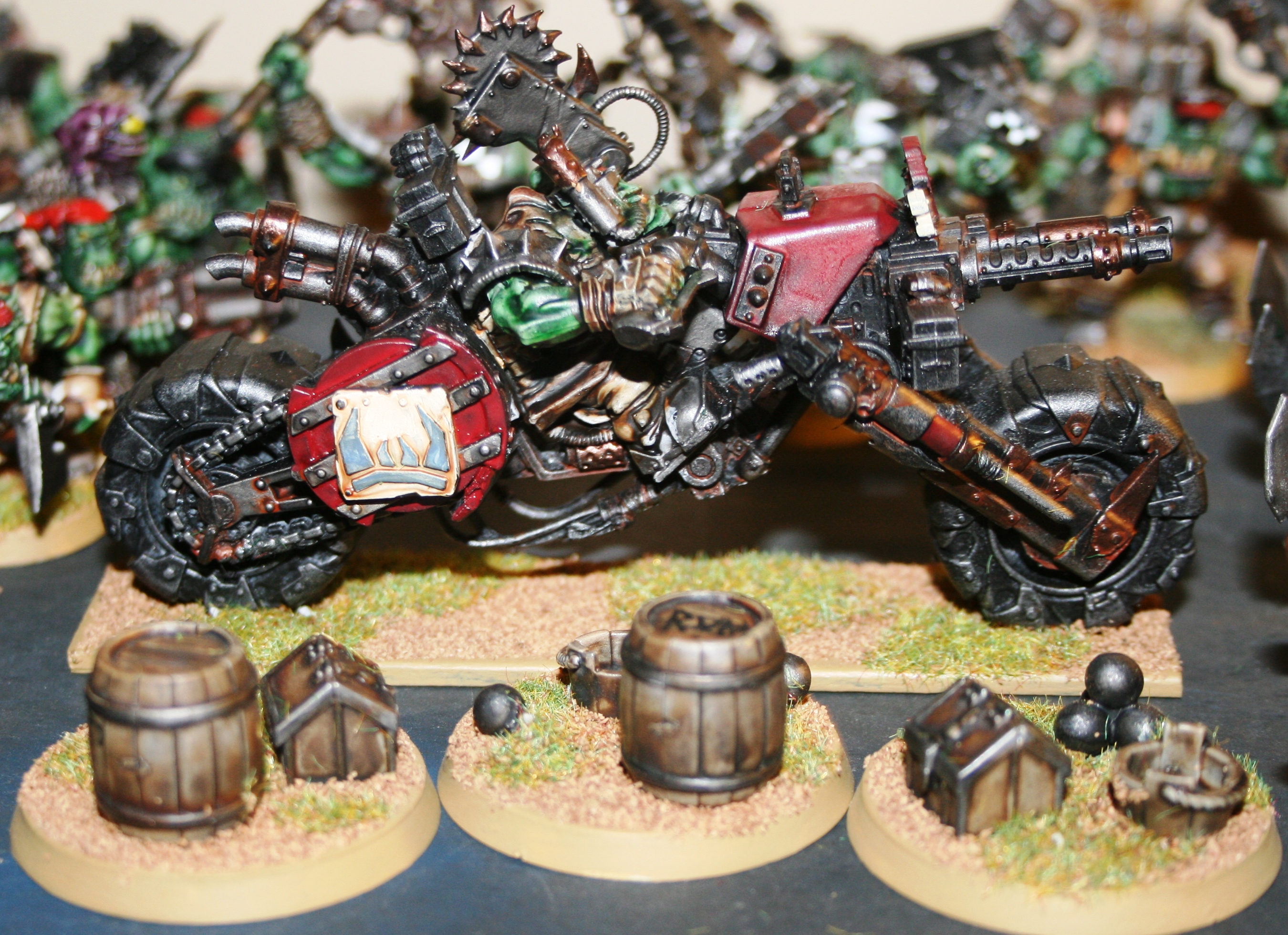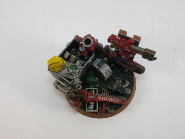 She did two Deathskull themed and two Goff themed, (my doubles partner had Goffs that year) plus the neutral Squig objective all the Orks are worried about fetching ammo from. Need a grot as bait while they collect the rounds.