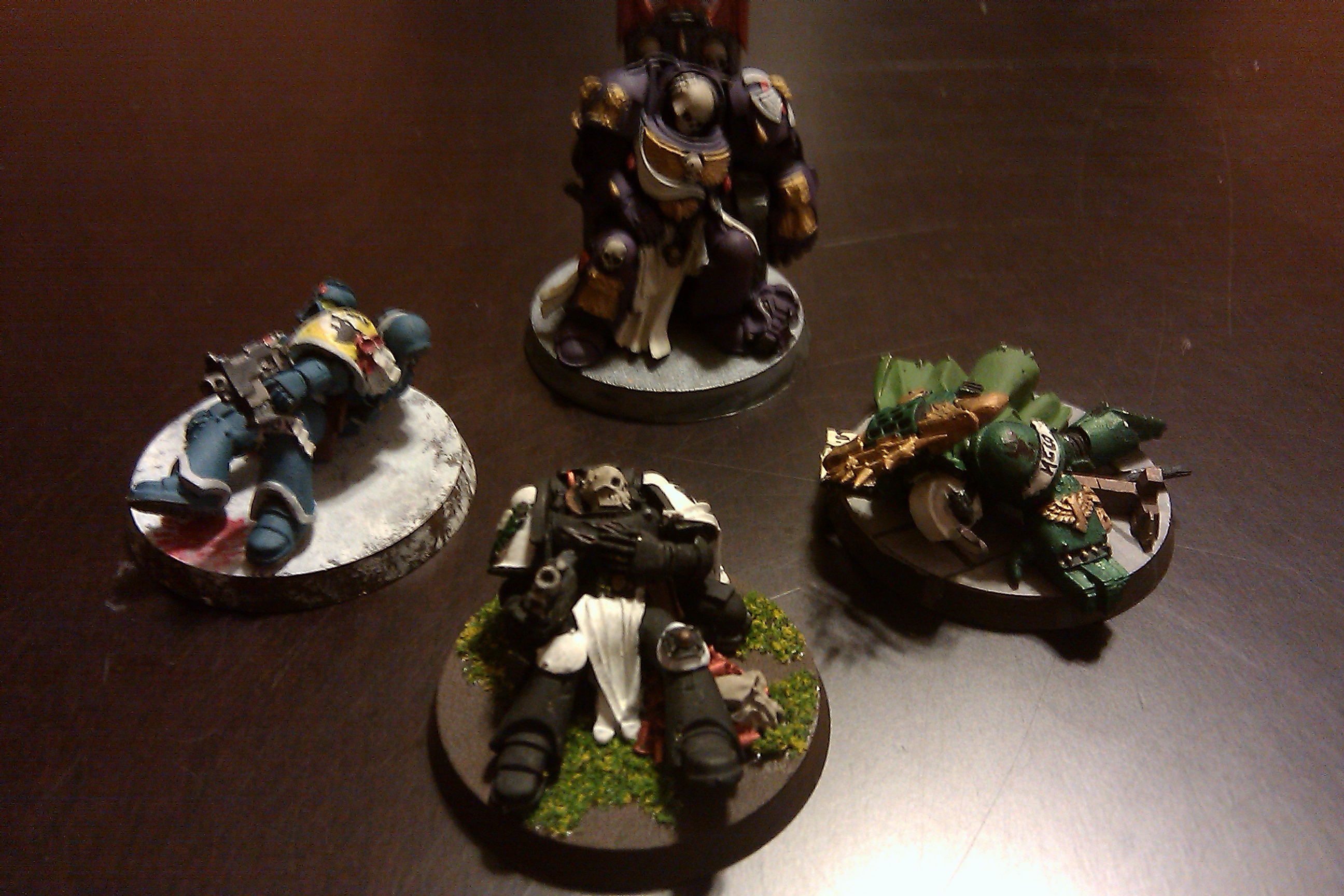 I really like the wolf priest and the large tau in show. The fallen marine still fighting is sweet also, I'd love to know how he did the intestines. Now I want to make some objectives.