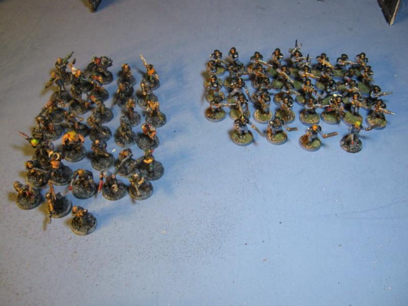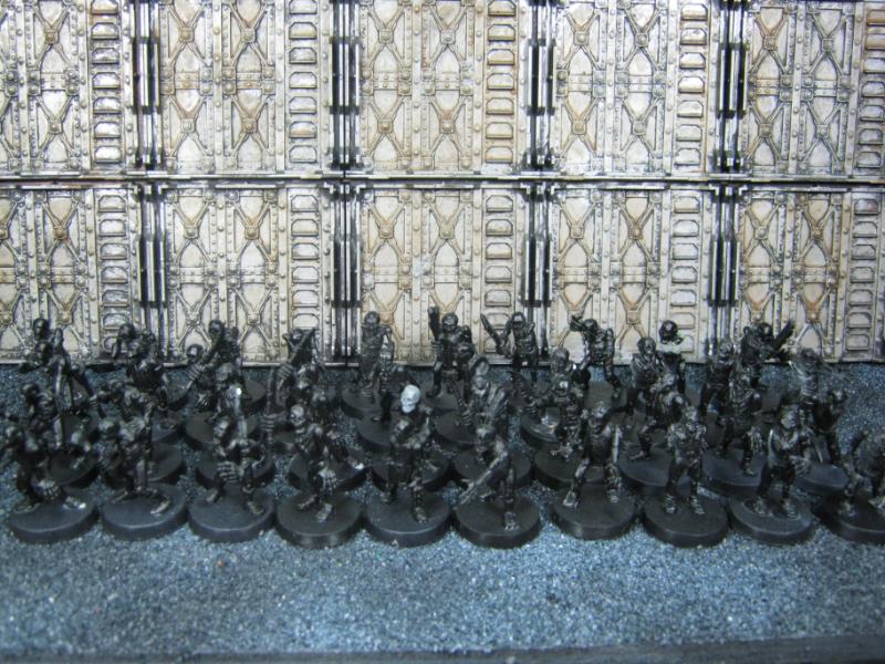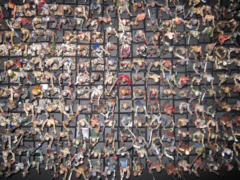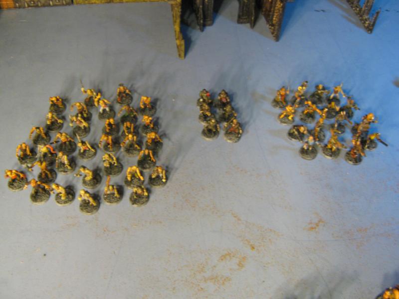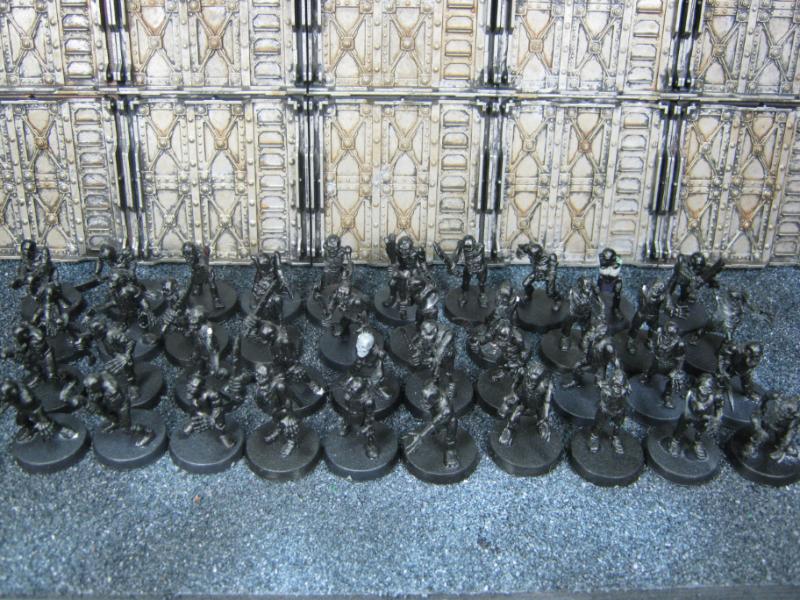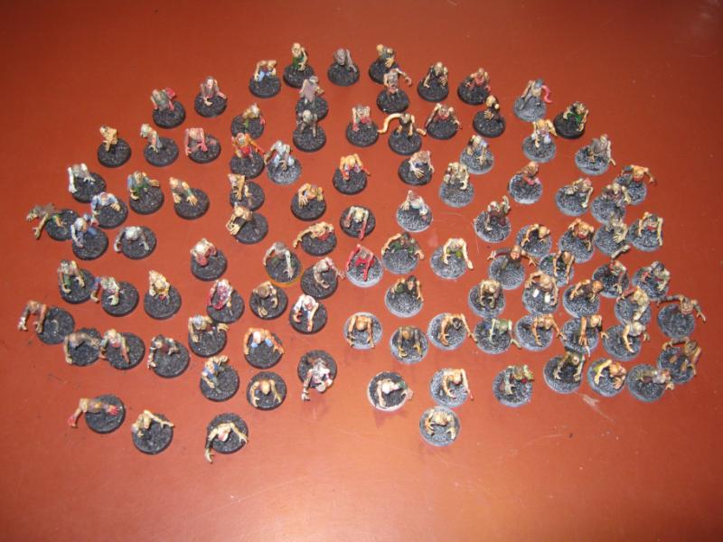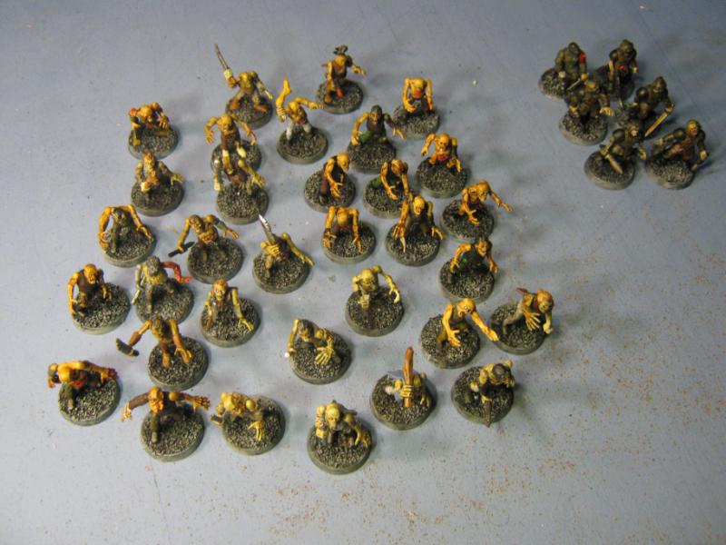 38 models in all. The guys in the green robes won't be part of this batch and somehow a Plague Zombie made it into the shot. Please disregard both.