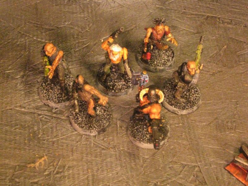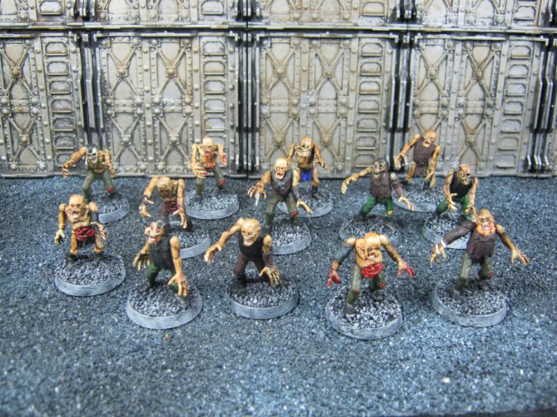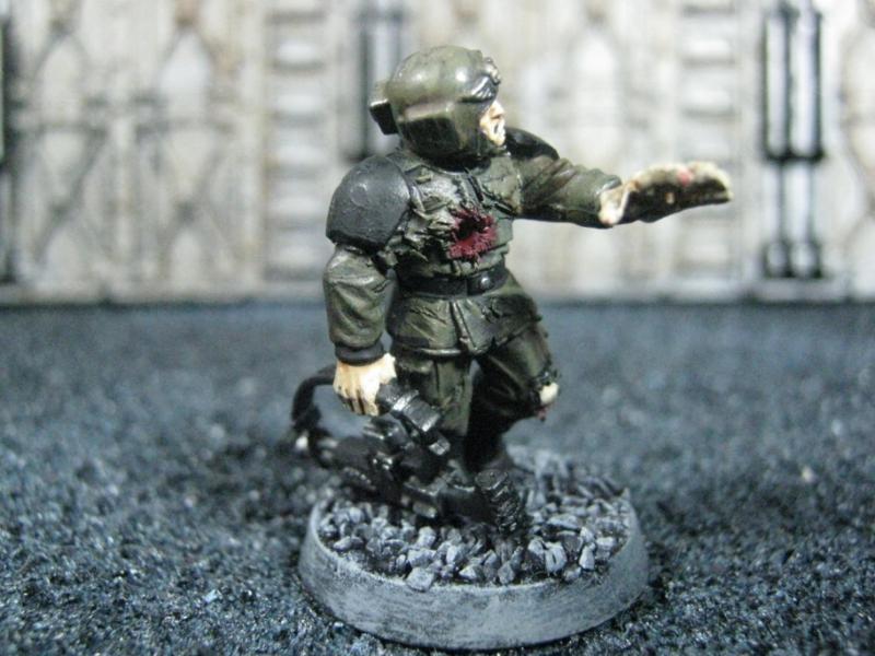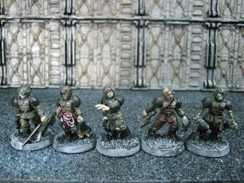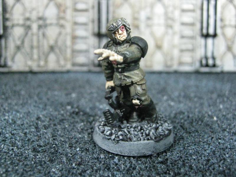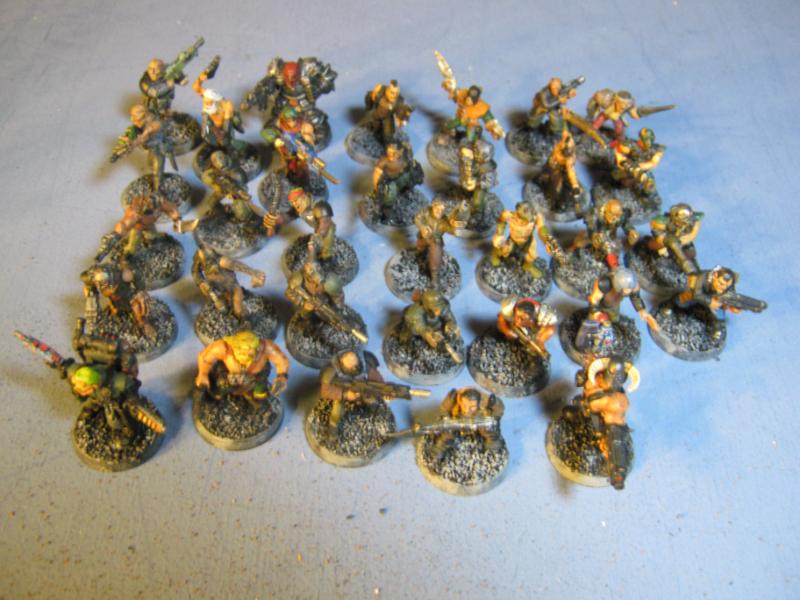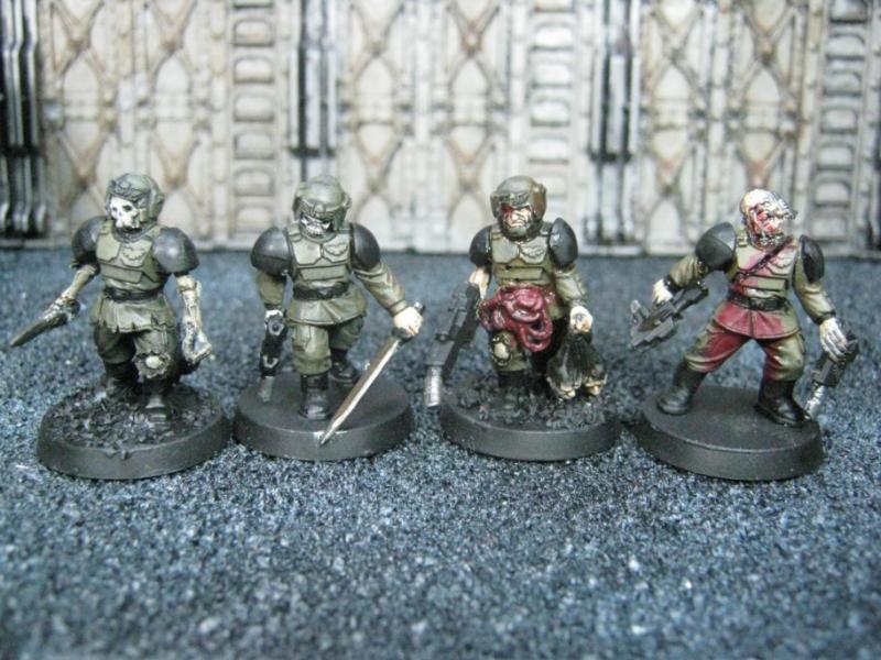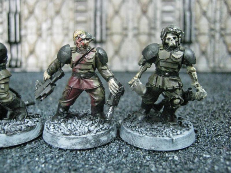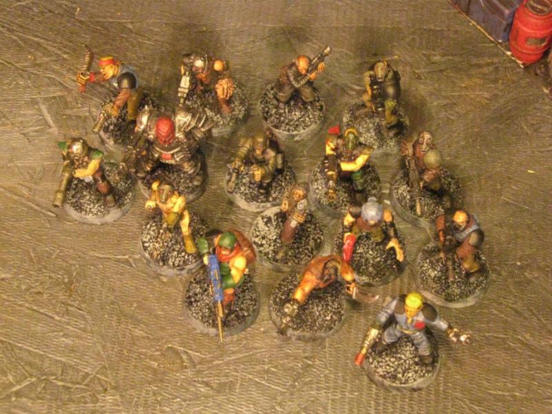 The WFB Zombies and W40K Cadians plastic sets are going to be used a lot in this force. Other bits are from the original Necromunda set and even the original Imperial Guard plastics.
