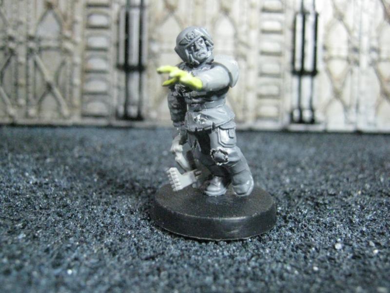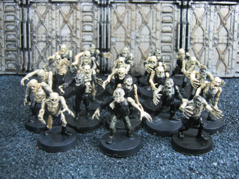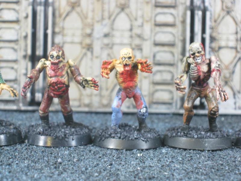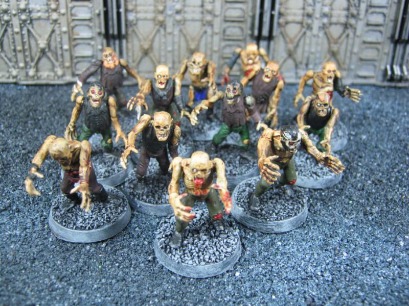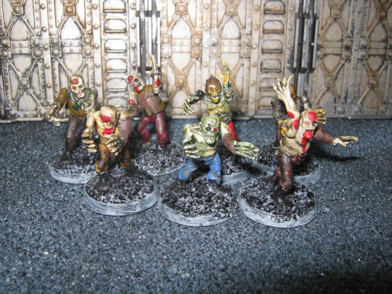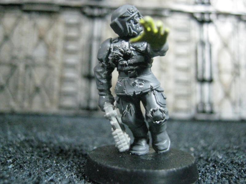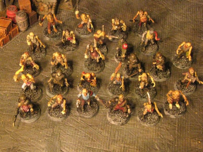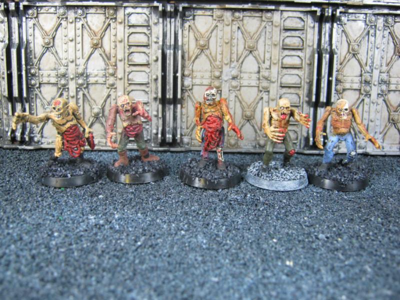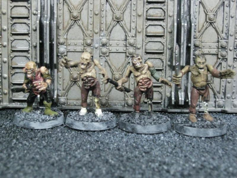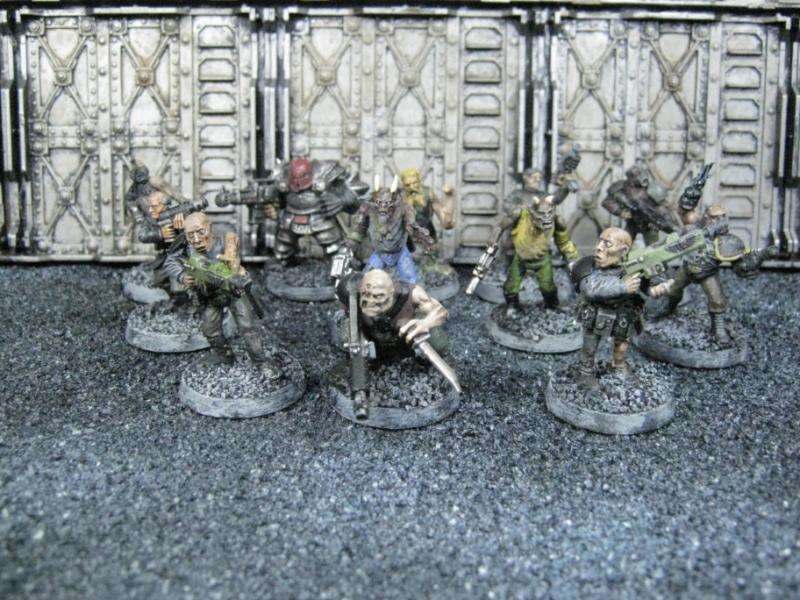 The WFB Zombies and W40K Cadians plastic sets are going to be used a lot in this force. Other bits are from the original Necromunda set and even the original Imperial Guard plastics.