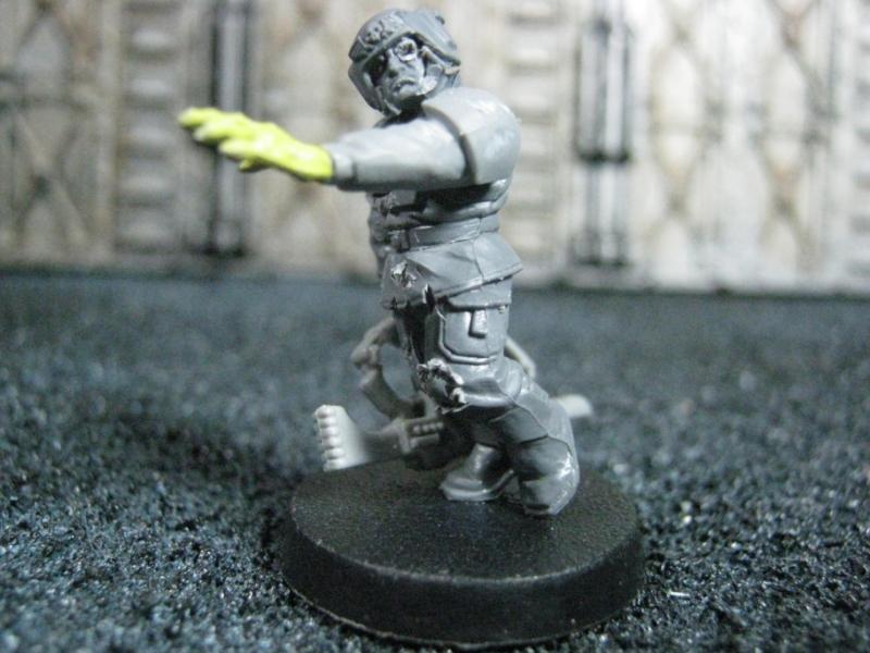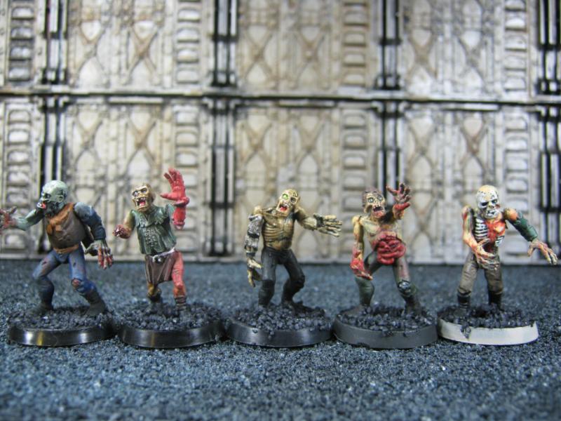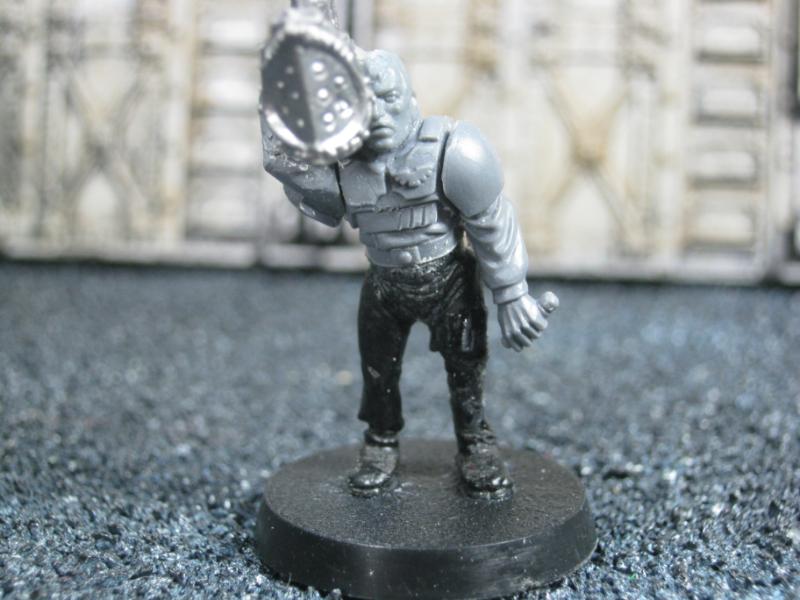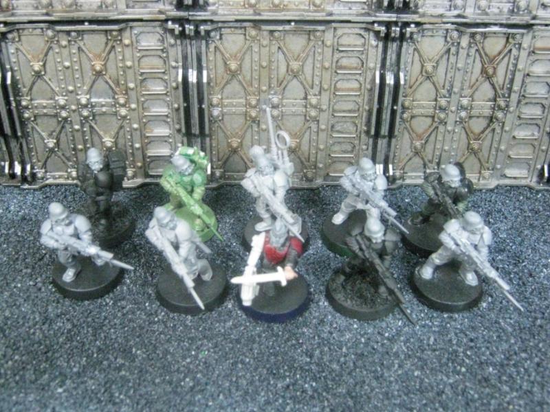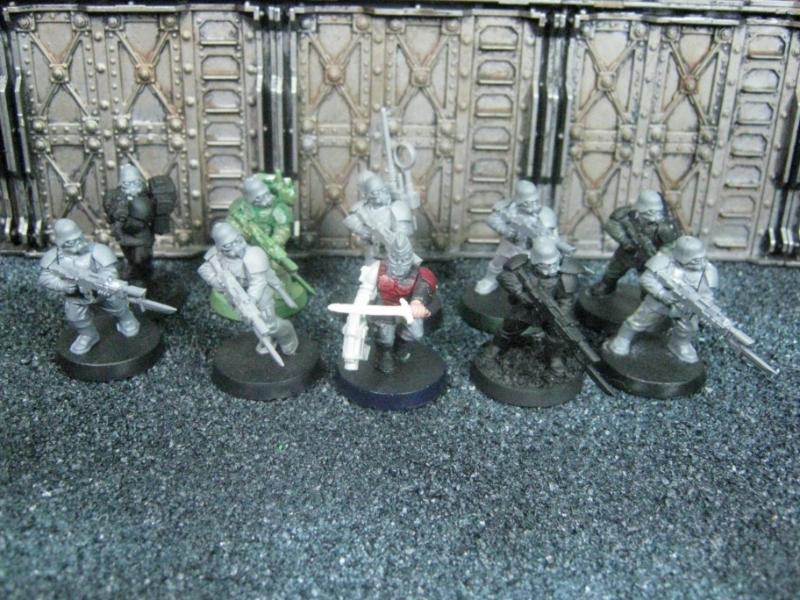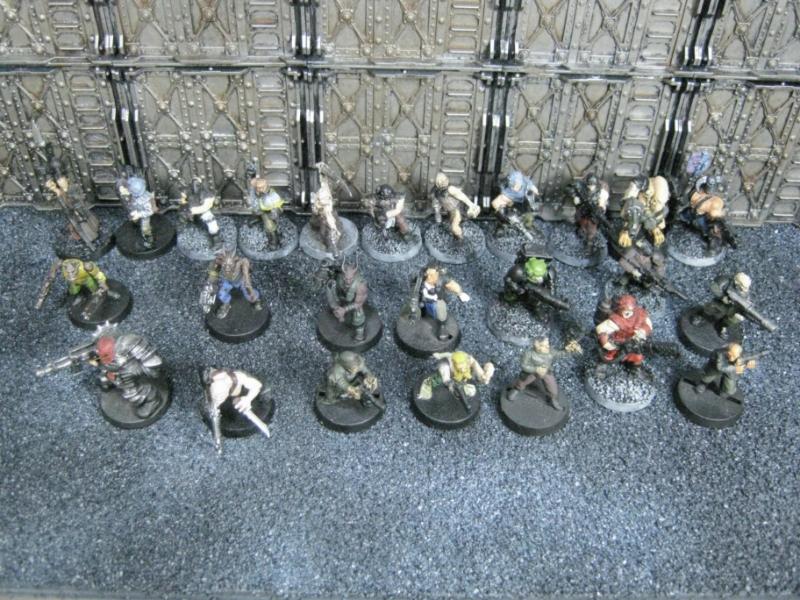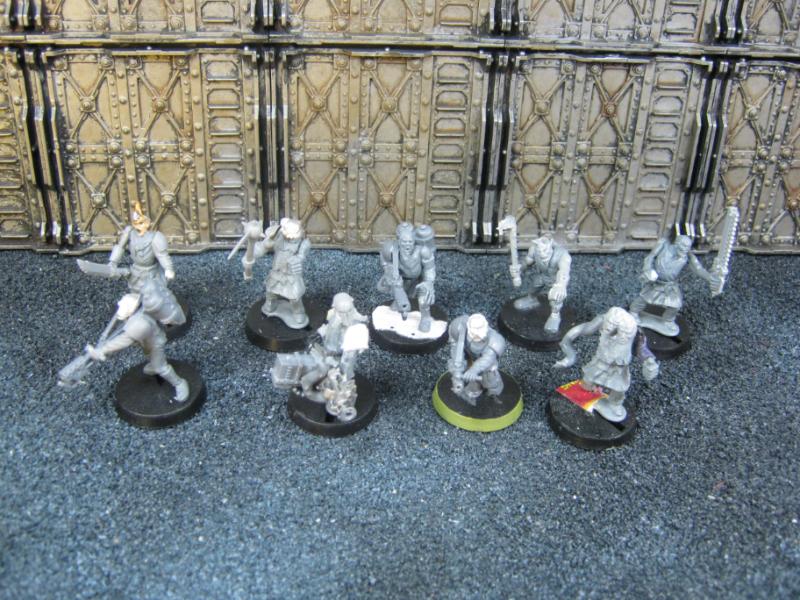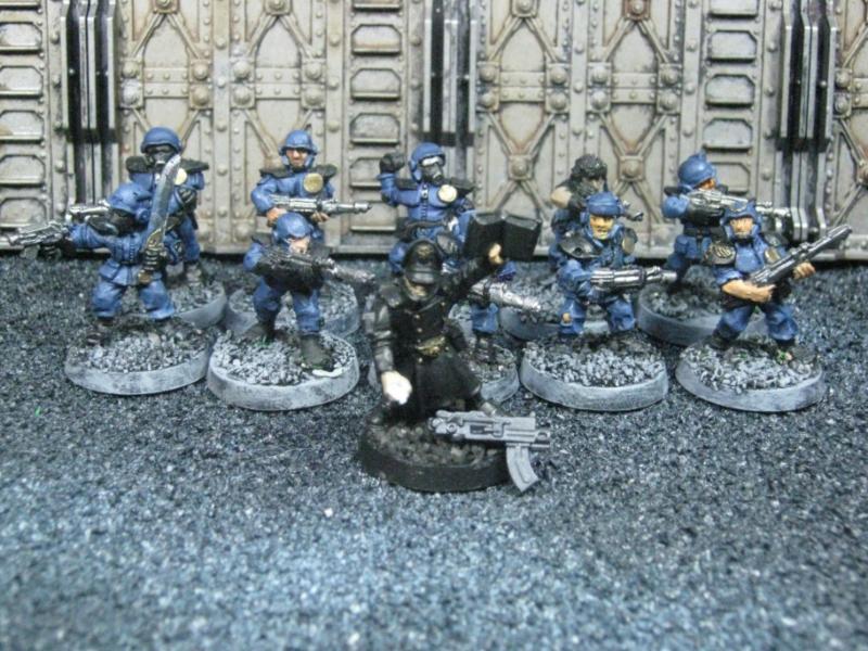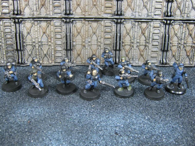 The WFB Zombies and W40K Cadians plastic sets are going to be used a lot in this force. Other bits are from the original Necromunda set and even the original Imperial Guard plastics.