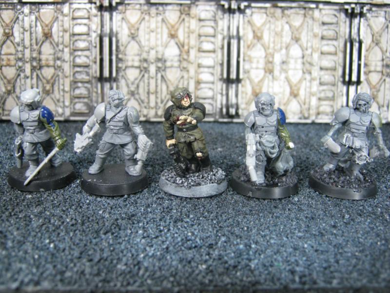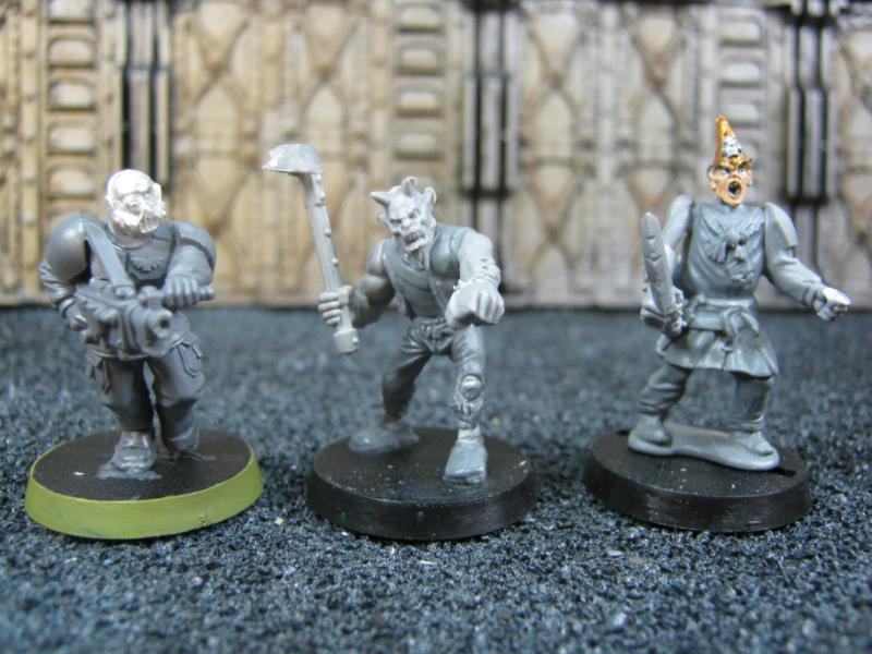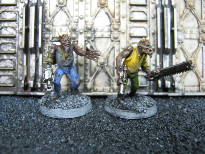 Mutants. None of these models would ever pass for human. They could fill a few different roles in the Grimdark but in this case they are Freedom Fighters standing against Imperial Tyranny. Sorry for the fuzzy pic, I was in a hurry this morning when I was taking pics because I had to load them to Dakka before leaving for work. As they get more paint on them you'll get better shots of them.