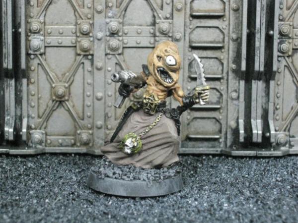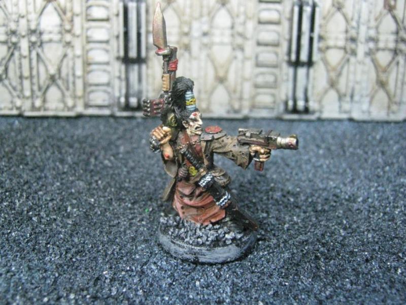 If you are familiar with Rogue Trader or Necromunda you'll see where a lot of my inspiration comes from. The variety of things you will find here (over time) will be interesting and eclectic, if not always "list legal". Expect things like a WFB Zombie w/ a Lasgun to a Necromunda Juve w/ a Shuriken Catapult. I've been thinking about this project for a very long time and have finally decided to start doing it. If you have a chance, please check out my Death Guard Plague Marines blog because that's where this truly started.