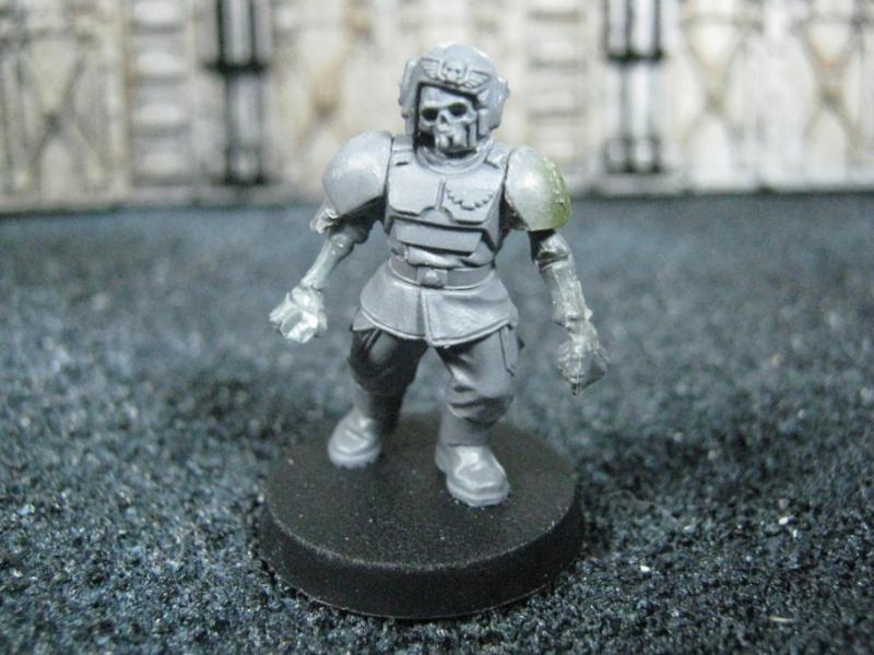 Undead Guardsmen. More whimsical than practical, but I really enjoy working on these. Eventually I want a full squad of them (10) and may run them in my games, but right now they are simply for the fun of modeling / painting.