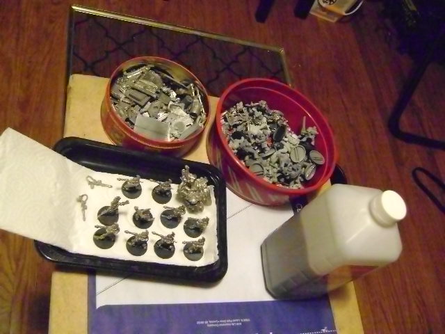 I let the minis soak for about 12 hours and tested out the stripping. Id say this will work well if you have light paint or something on there. Now these crons were nasty so I decided to let them sit a whole day. Here is everything I put in the tub o doom.