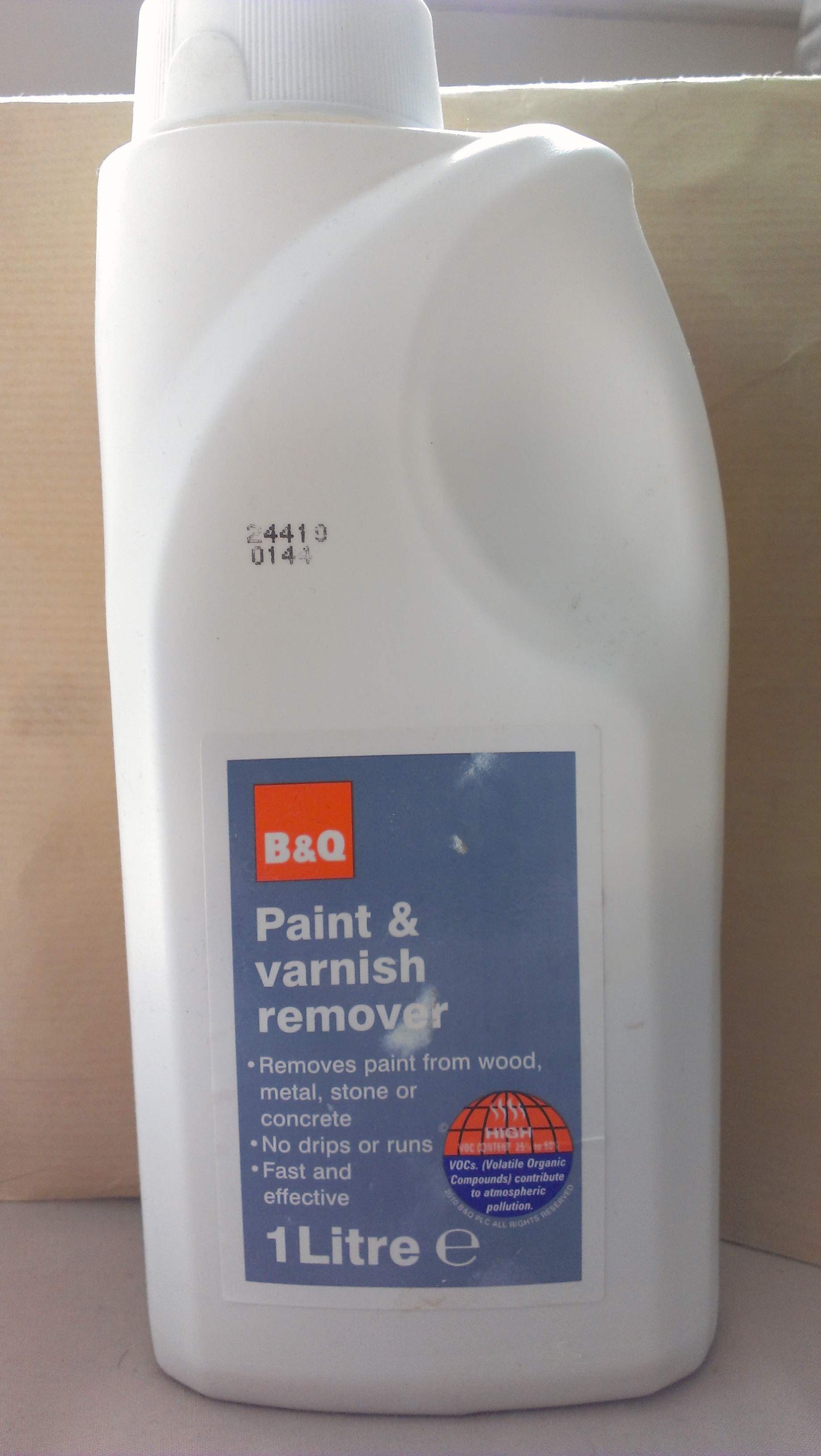 SO! There you have it. I paid $3 for the big jug, and a buck for the toothbrush. And I stripped all this