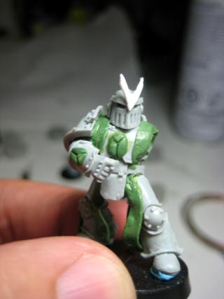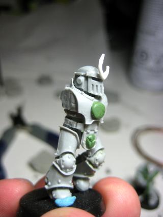 The very first Son, whom I’ve christened “Quick Man”… LOL… +1 cool points if you get the reference. From the very first pic of the 1K sons, not all of them have the Hercules Beetle tine on their helmets. I’m sure it will be a prevalent design amongst the brothers, but I’ll be sure to sprinkle the ranks with other designs as well.