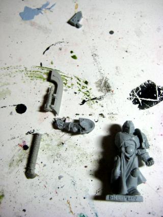 My hope was to put a pointing bolter/bolt pistol on an extended left arm while doing some sort of OSL on his bent-back right arm holding a staff of some sort… but we’ll see how far that goes. Either way, I’ve got options.