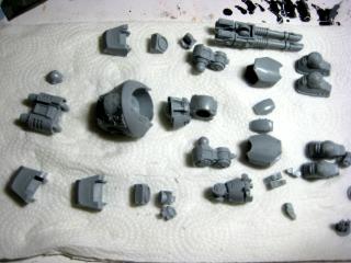 Looking great so far - given any thought to making up master parts for items like the scarab helmet add-on and casting them all in resin for consistency? While you're at it you could make a bunch of emblems for the chest and stuff.