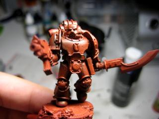 And finally, one of the most recent brothers starting out… and without any extra colors, looking very much like a Khornate World Eater…