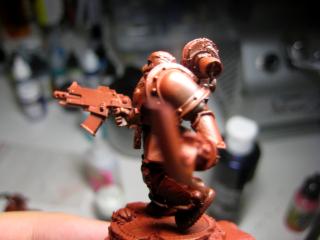Does anyone know how to get the bronze burned melta nozzle look? I'm thinking of doing that for his smoke-stacks and palm-flamer...