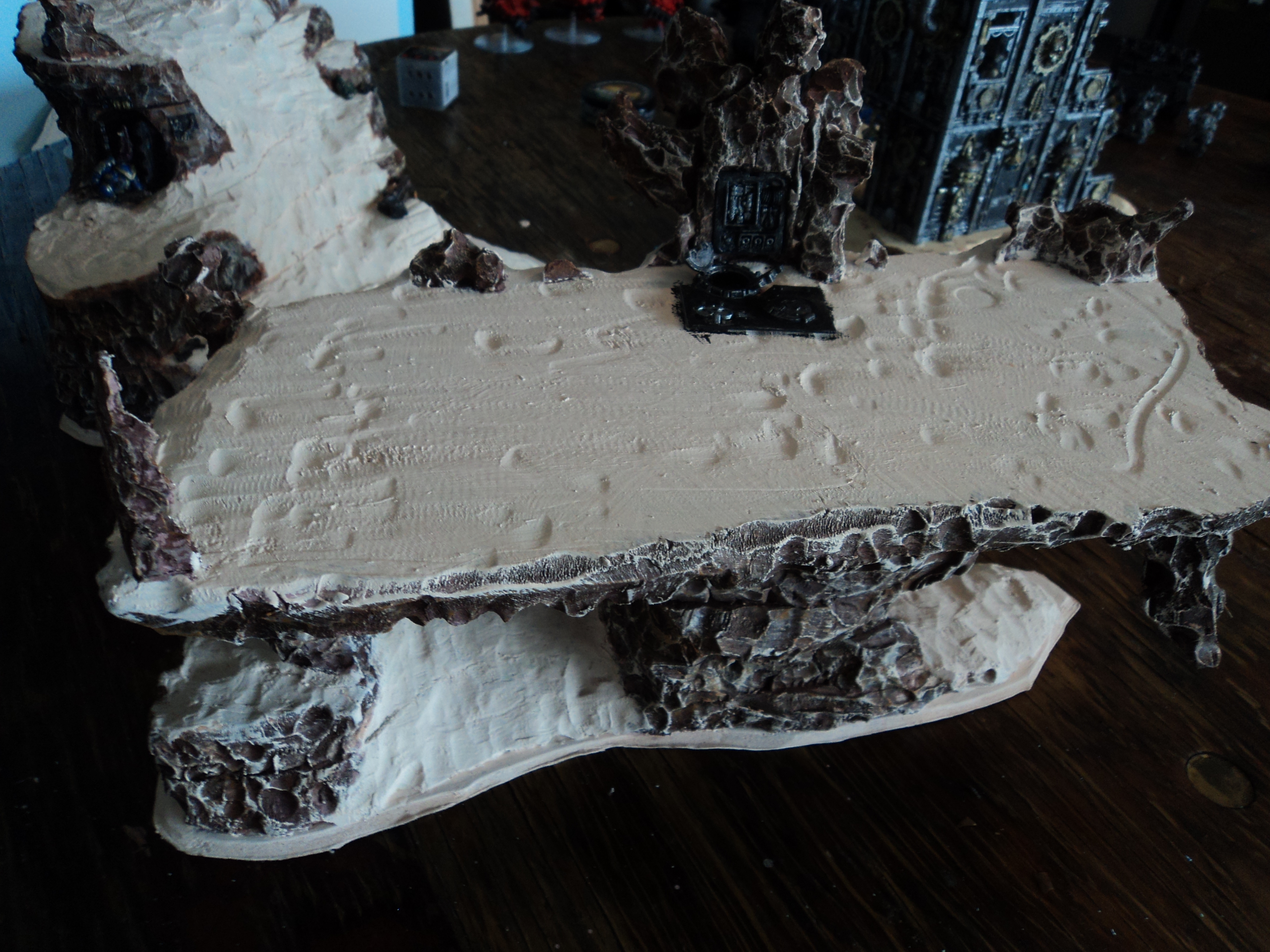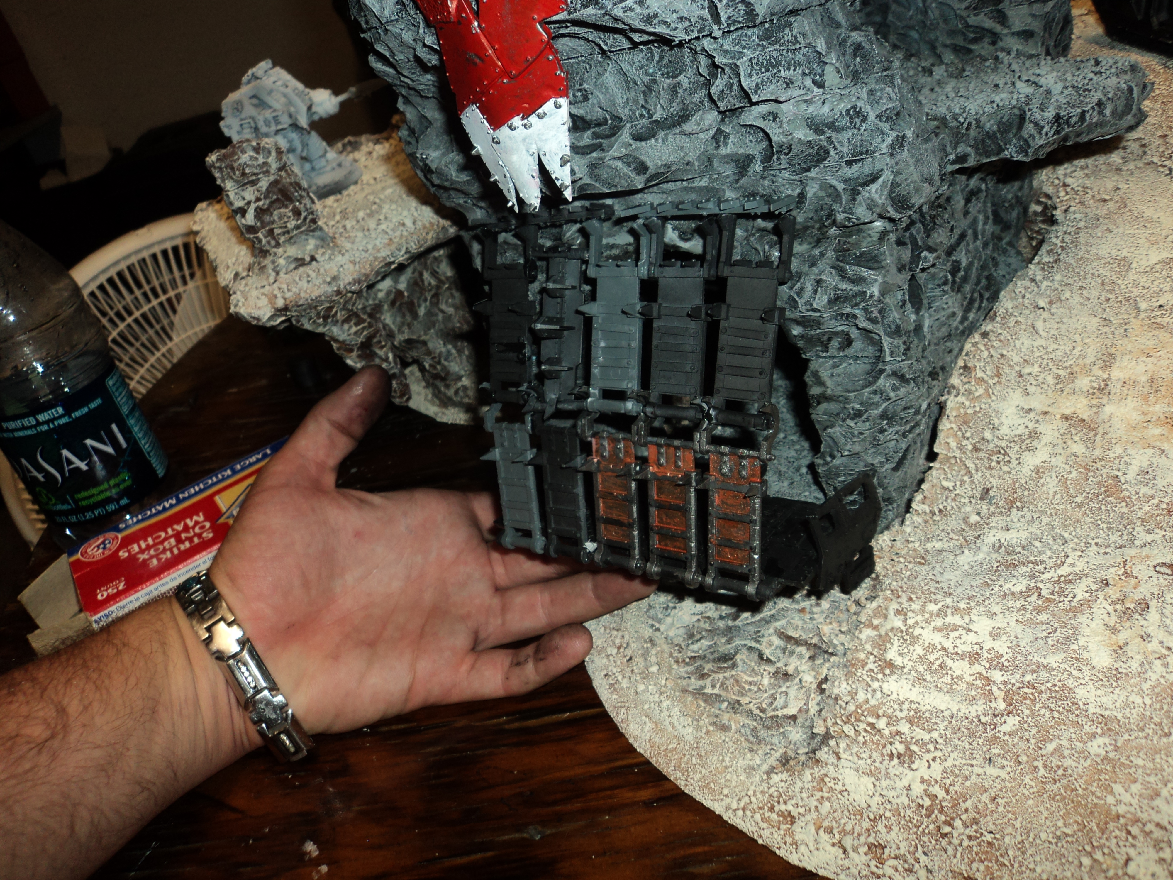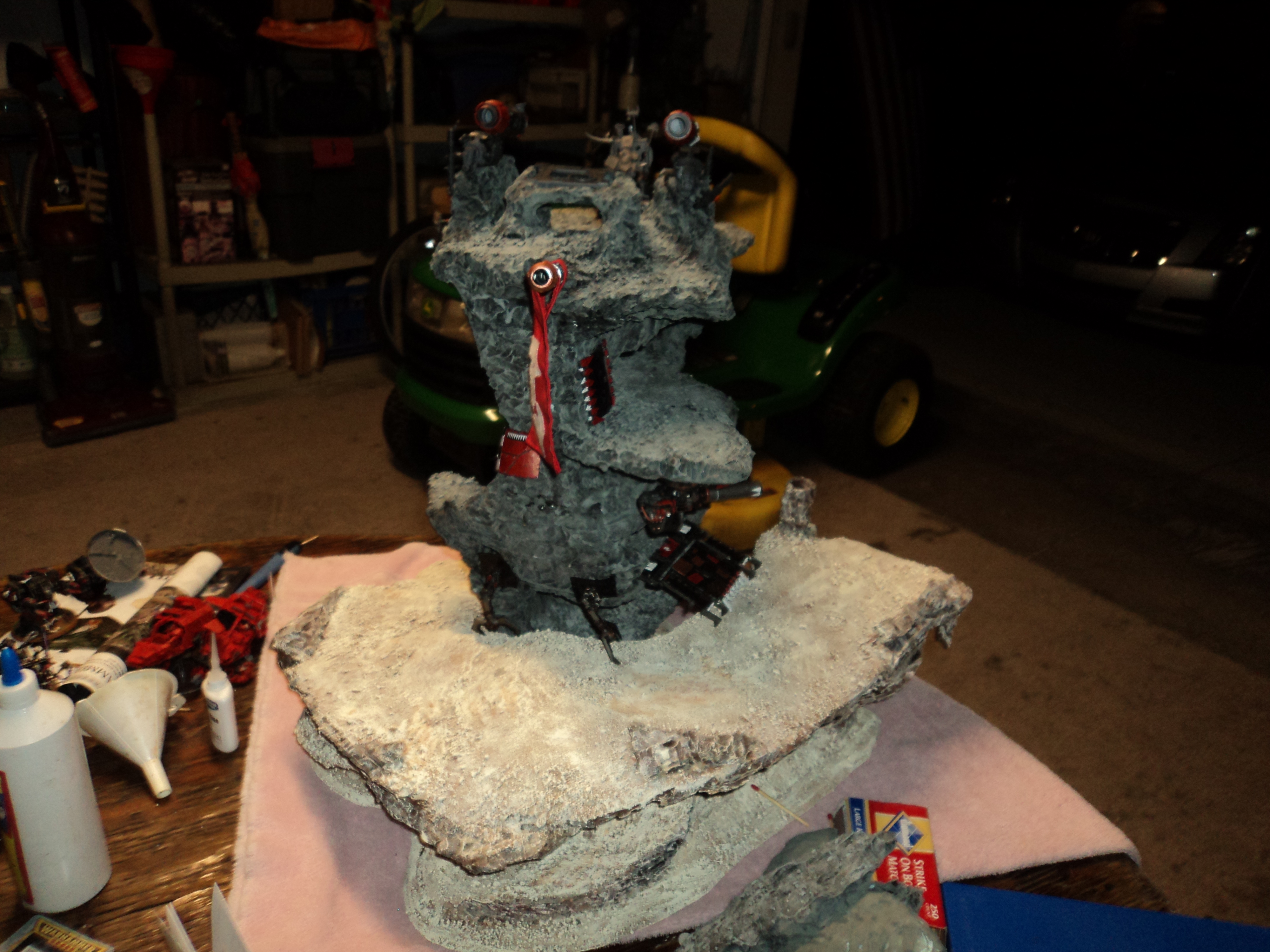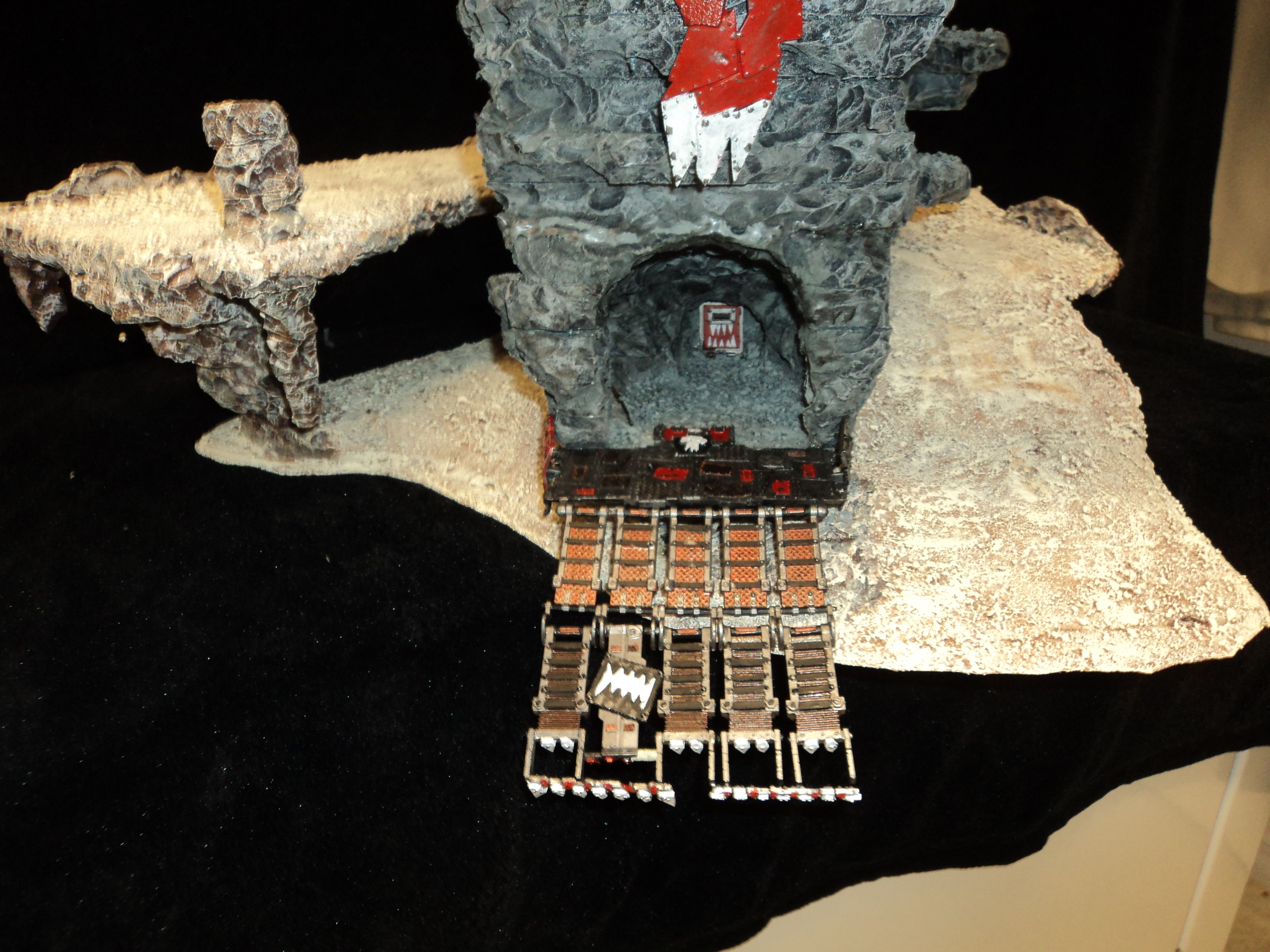 Ork Rok: The Rok is over 19in tall. It features 4 separate levels (as far as CoD would classify), and each level has multiple access points connecting to the base of the terrain. Bits will soon be covering this in the next 72 hours. Like the terrain, it is constructed out of blue foam merging with a dremmel, as well as numerous coats of paint. Flocking also lies in its future
