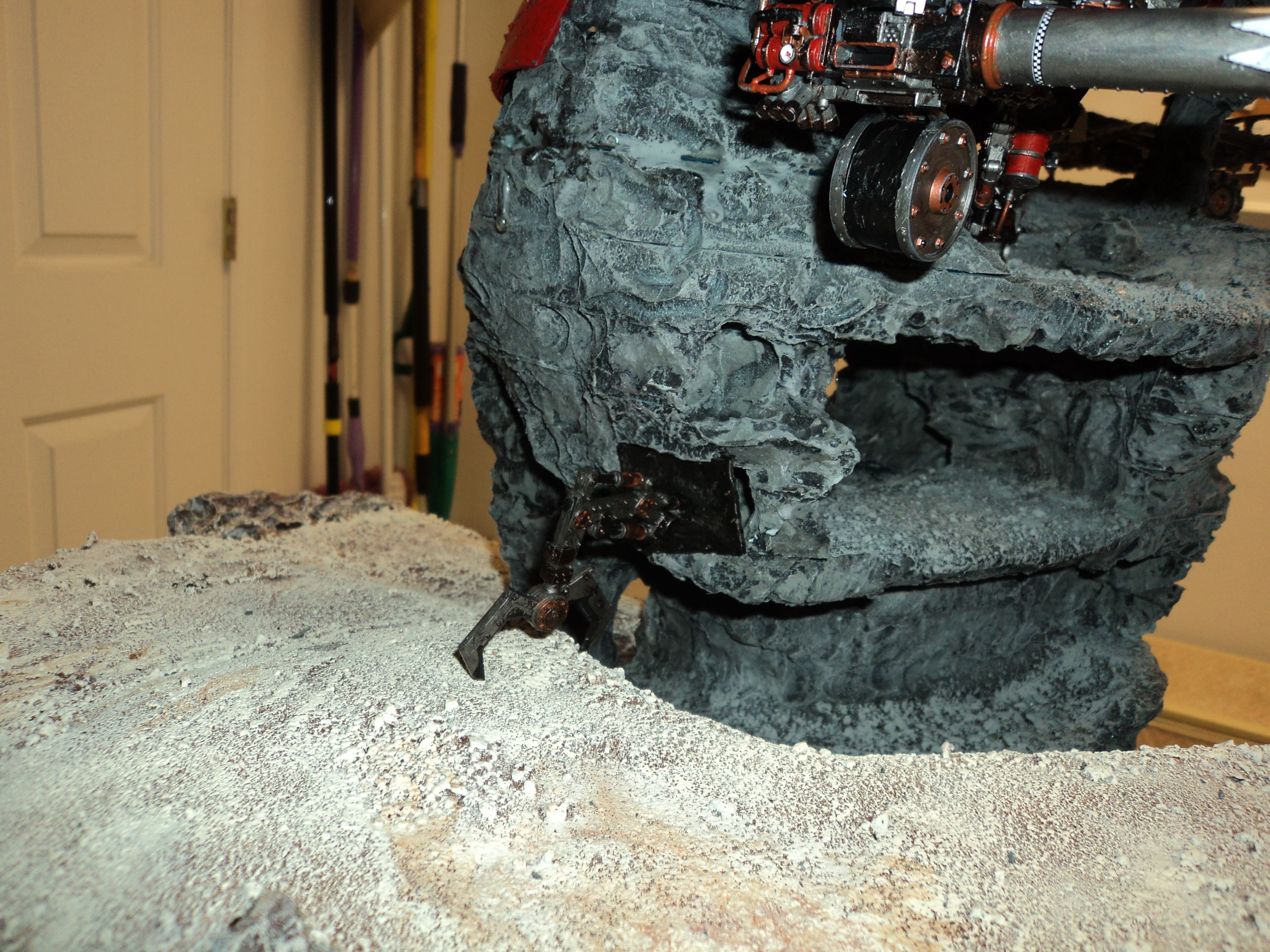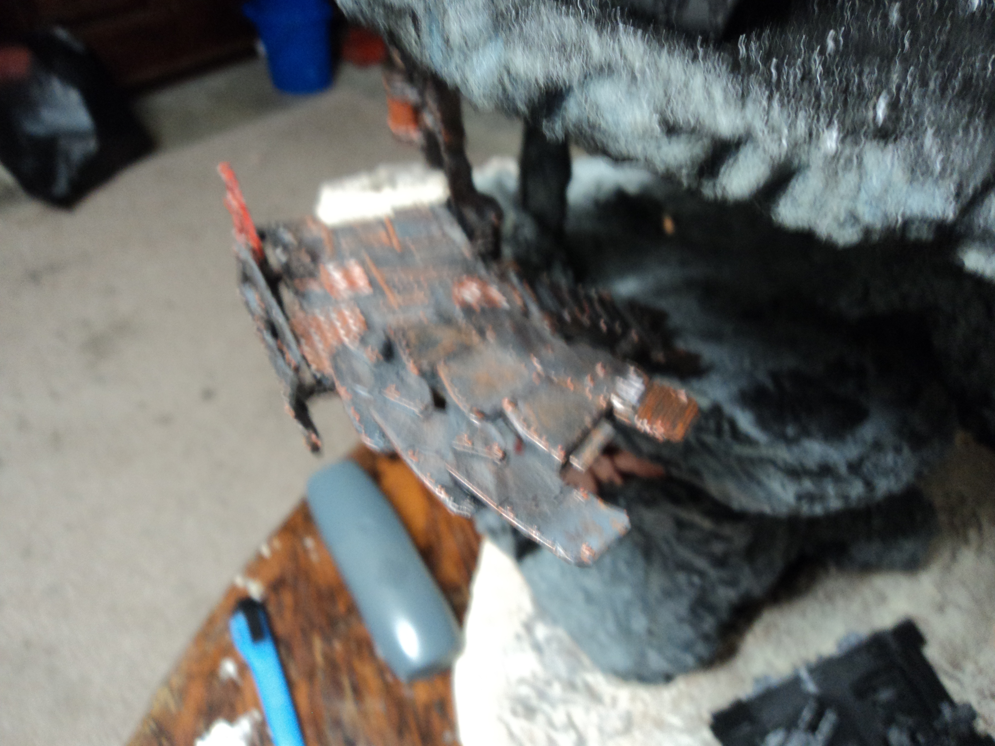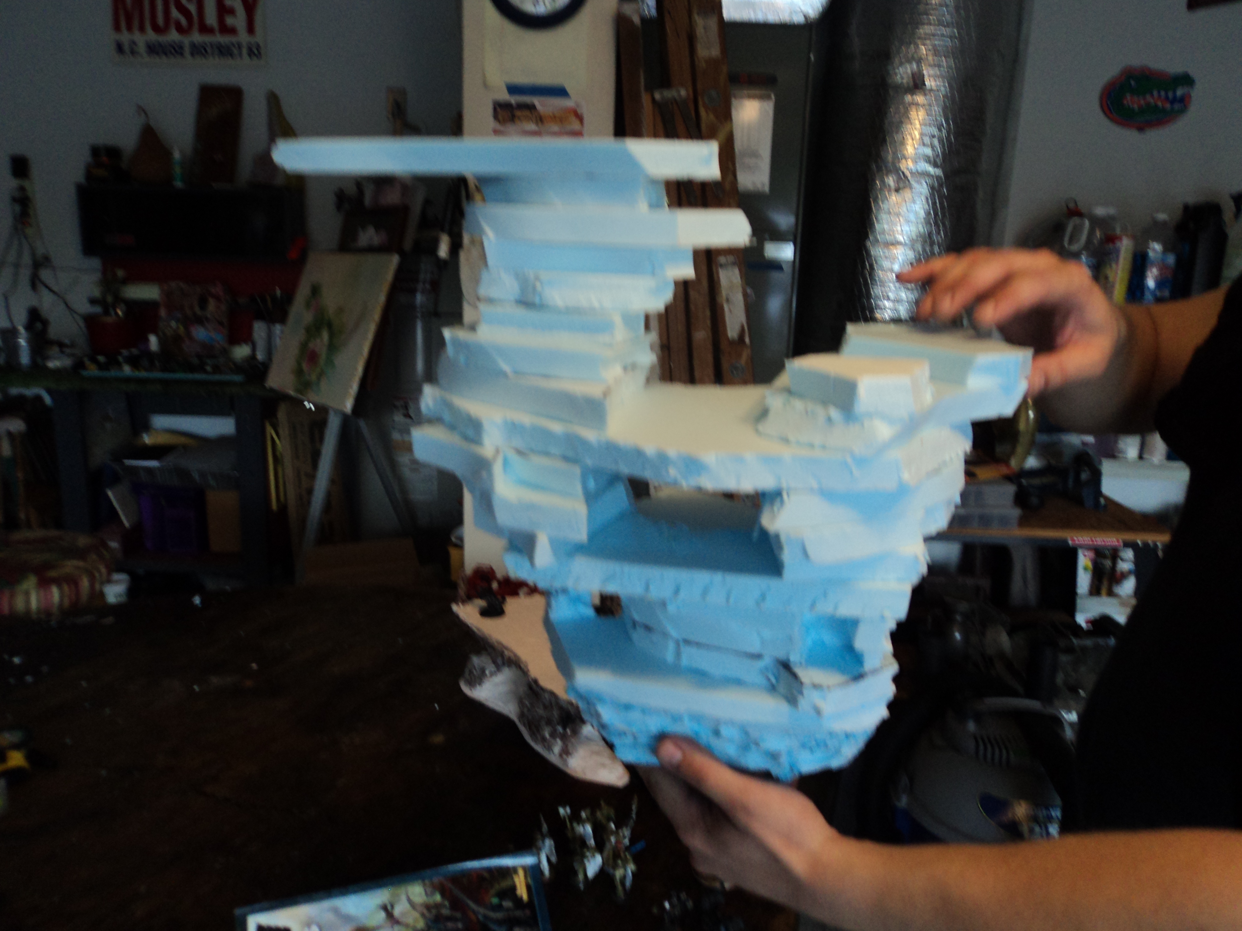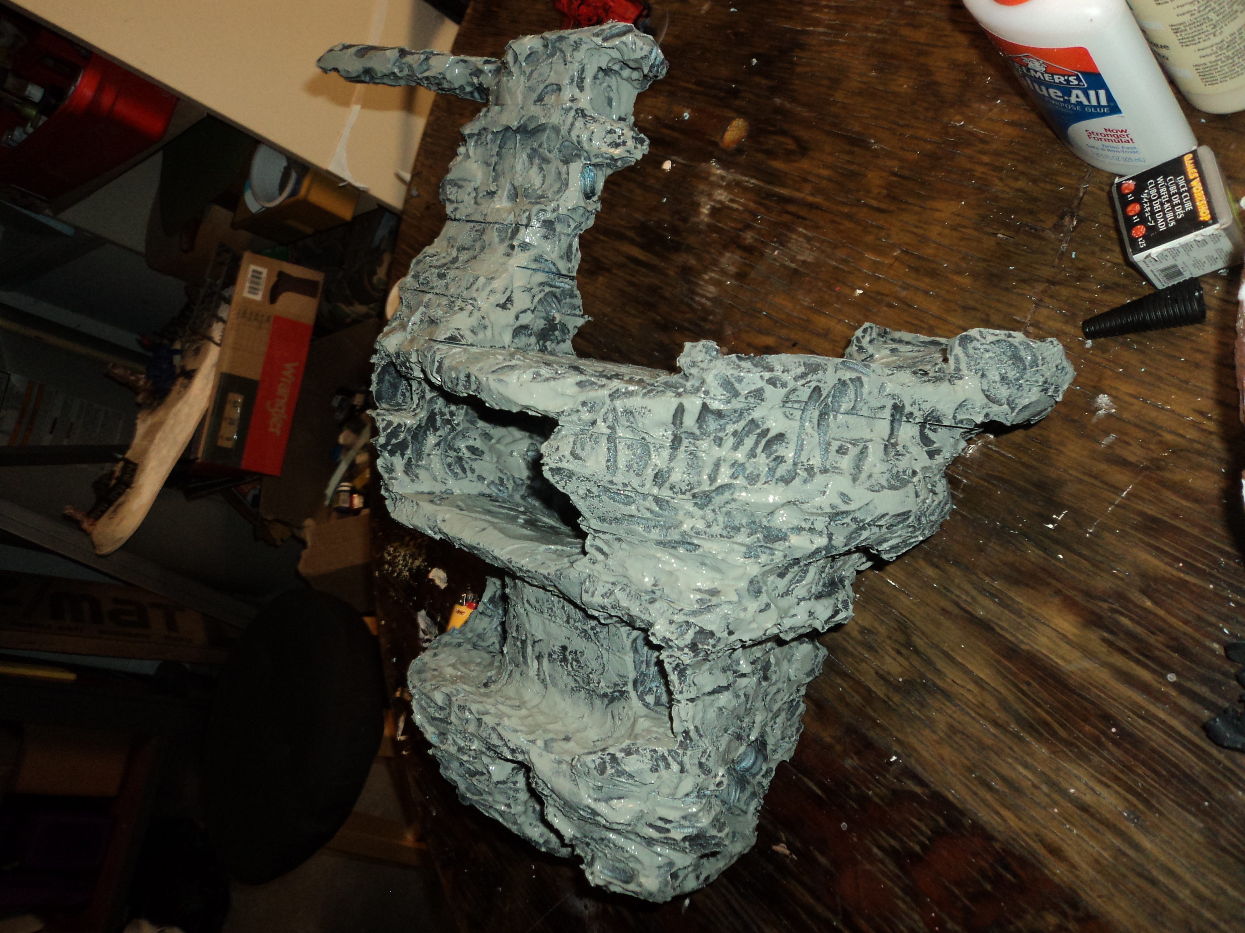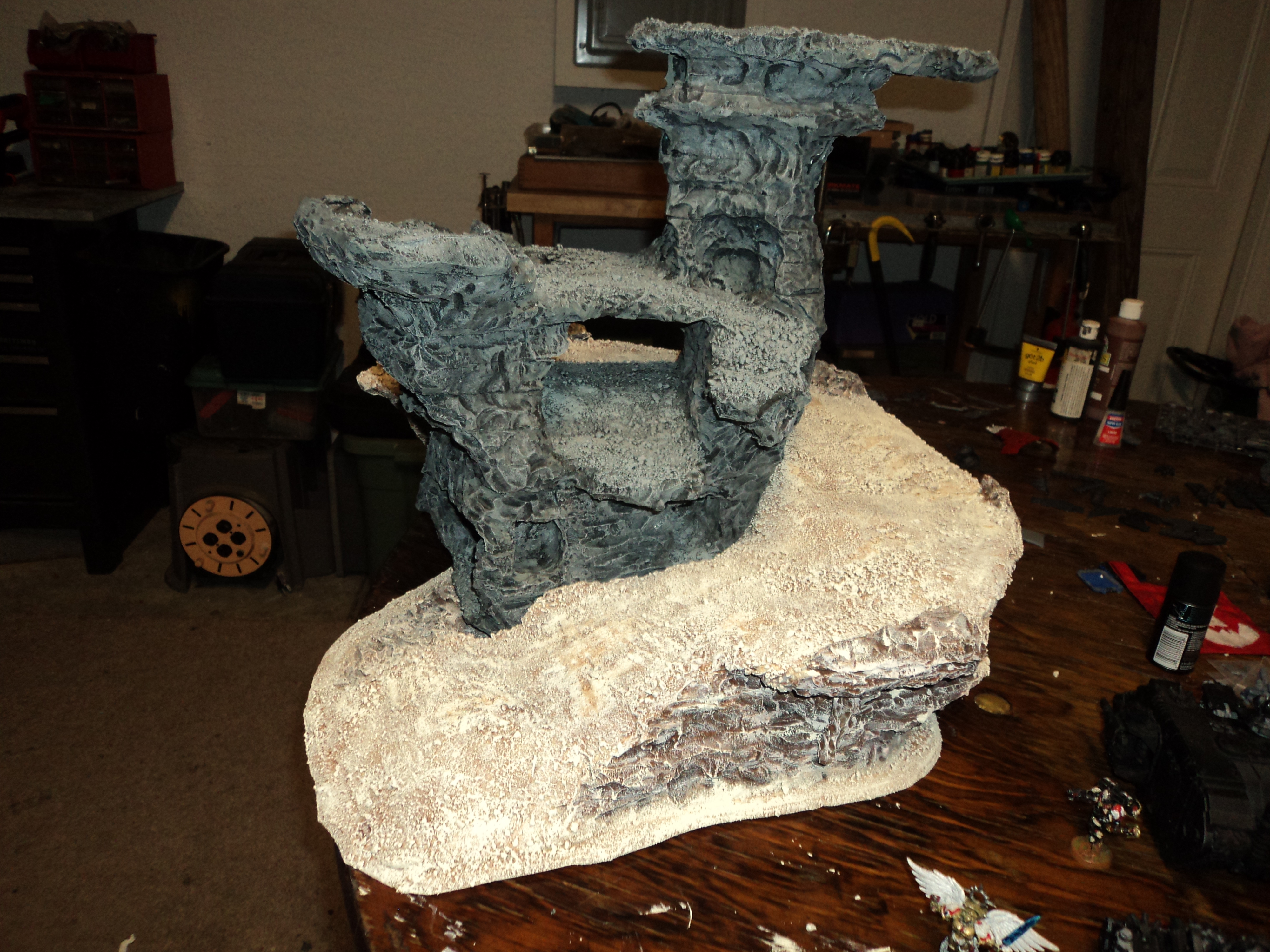 Ork Rok: The Rok is over 19in tall. It features 4 separate levels (as far as CoD would classify), and each level has multiple access points connecting to the base of the terrain. Bits will soon be covering this in the next 72 hours. Like the terrain, it is constructed out of blue foam merging with a dremmel, as well as numerous coats of paint. Flocking also lies in its future