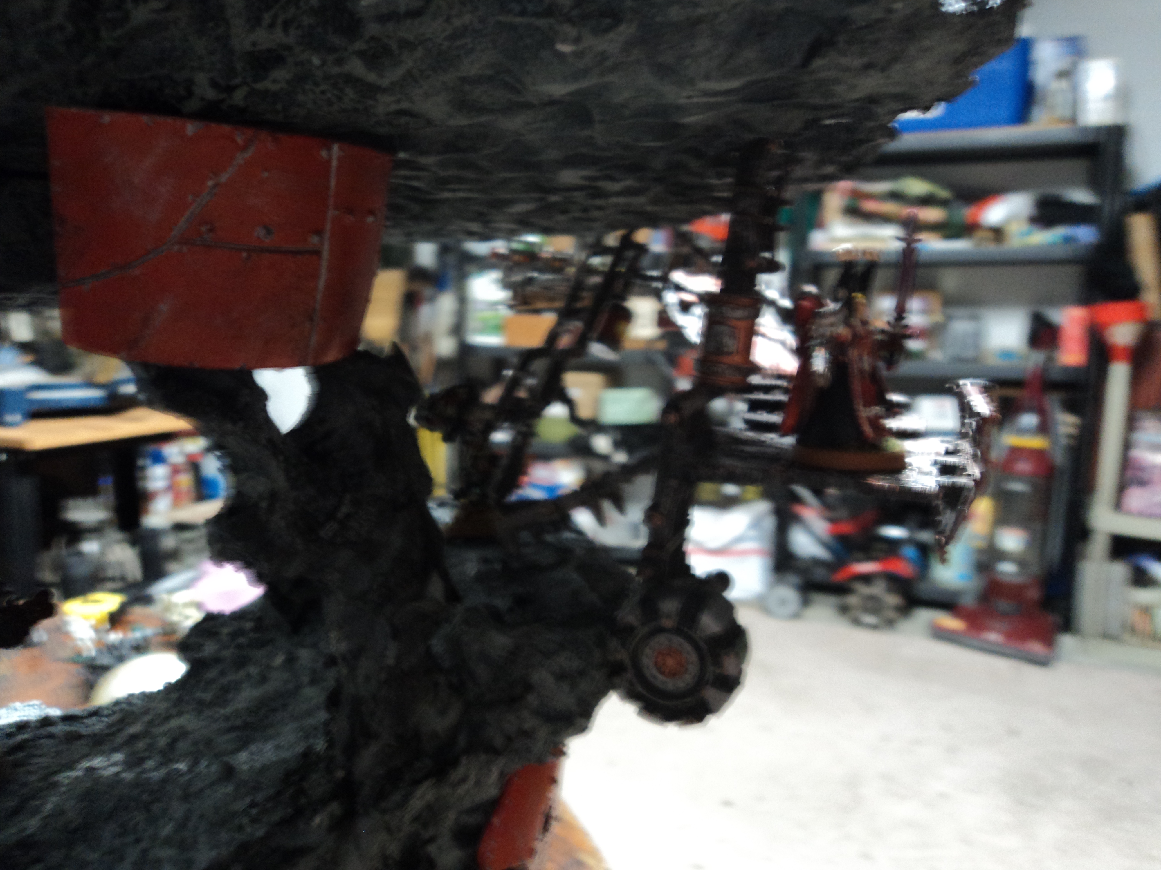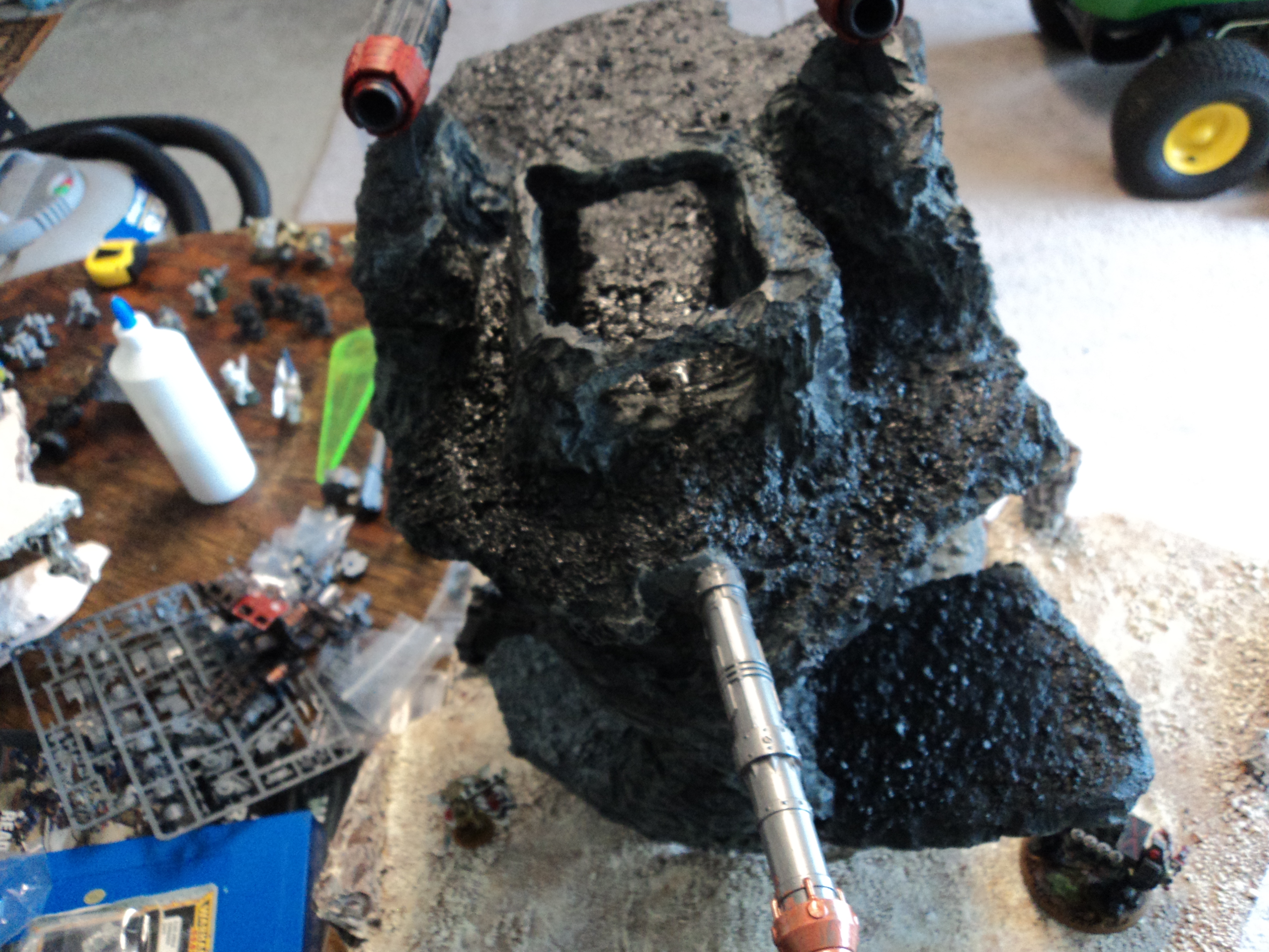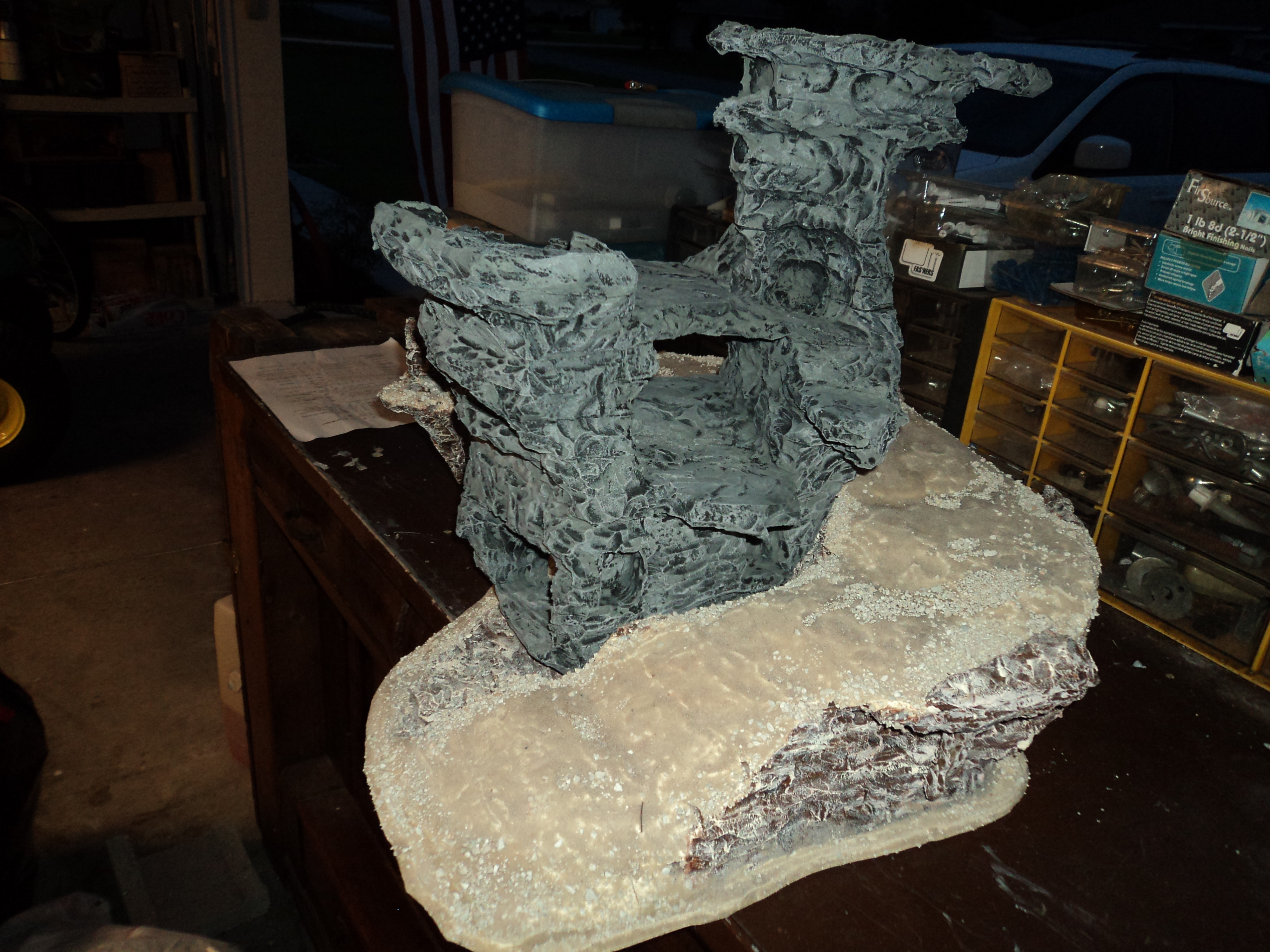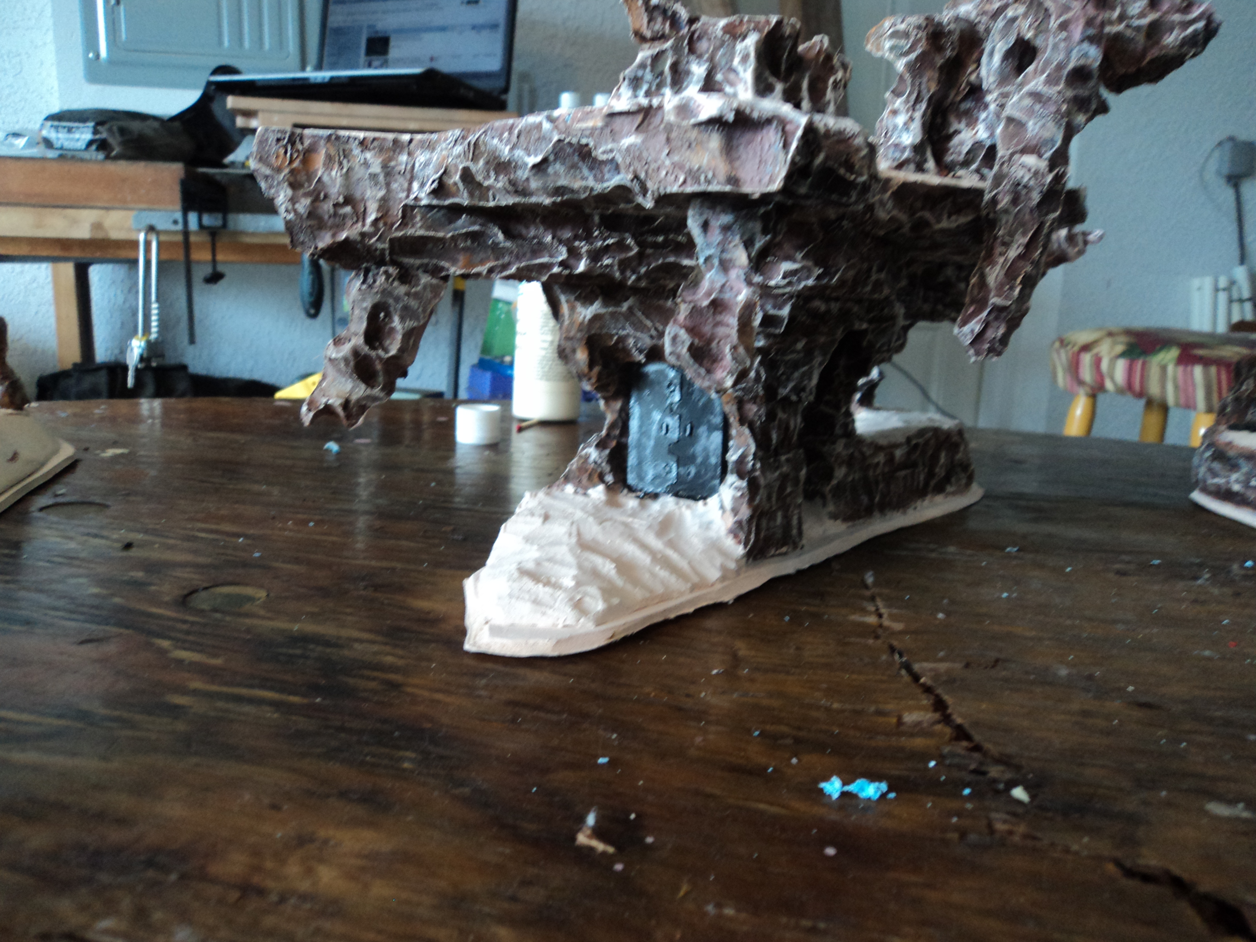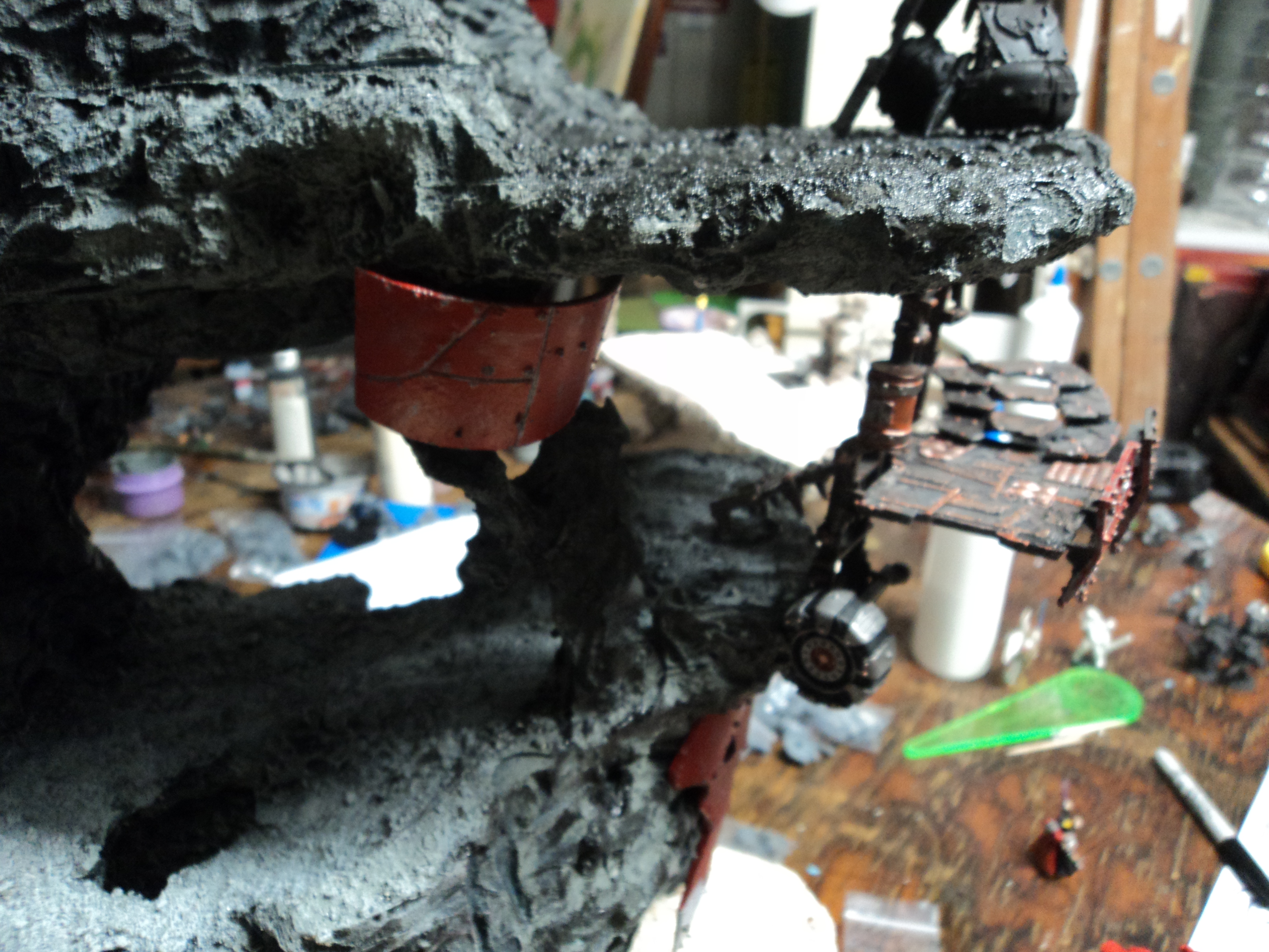 Ork Rok: The Rok is over 19in tall. It features 4 separate levels (as far as CoD would classify), and each level has multiple access points connecting to the base of the terrain. Bits will soon be covering this in the next 72 hours. Like the terrain, it is constructed out of blue foam merging with a dremmel, as well as numerous coats of paint. Flocking also lies in its future