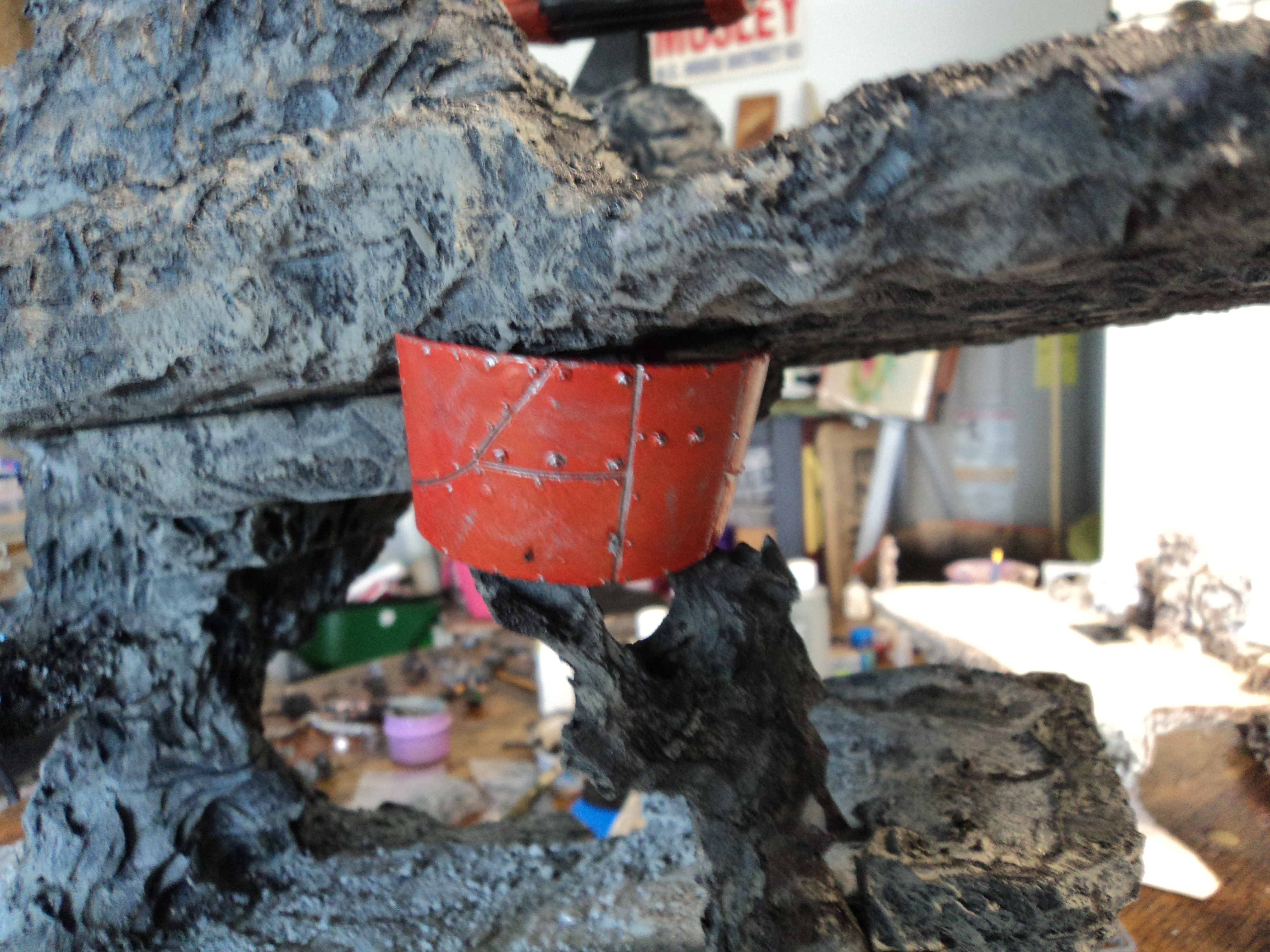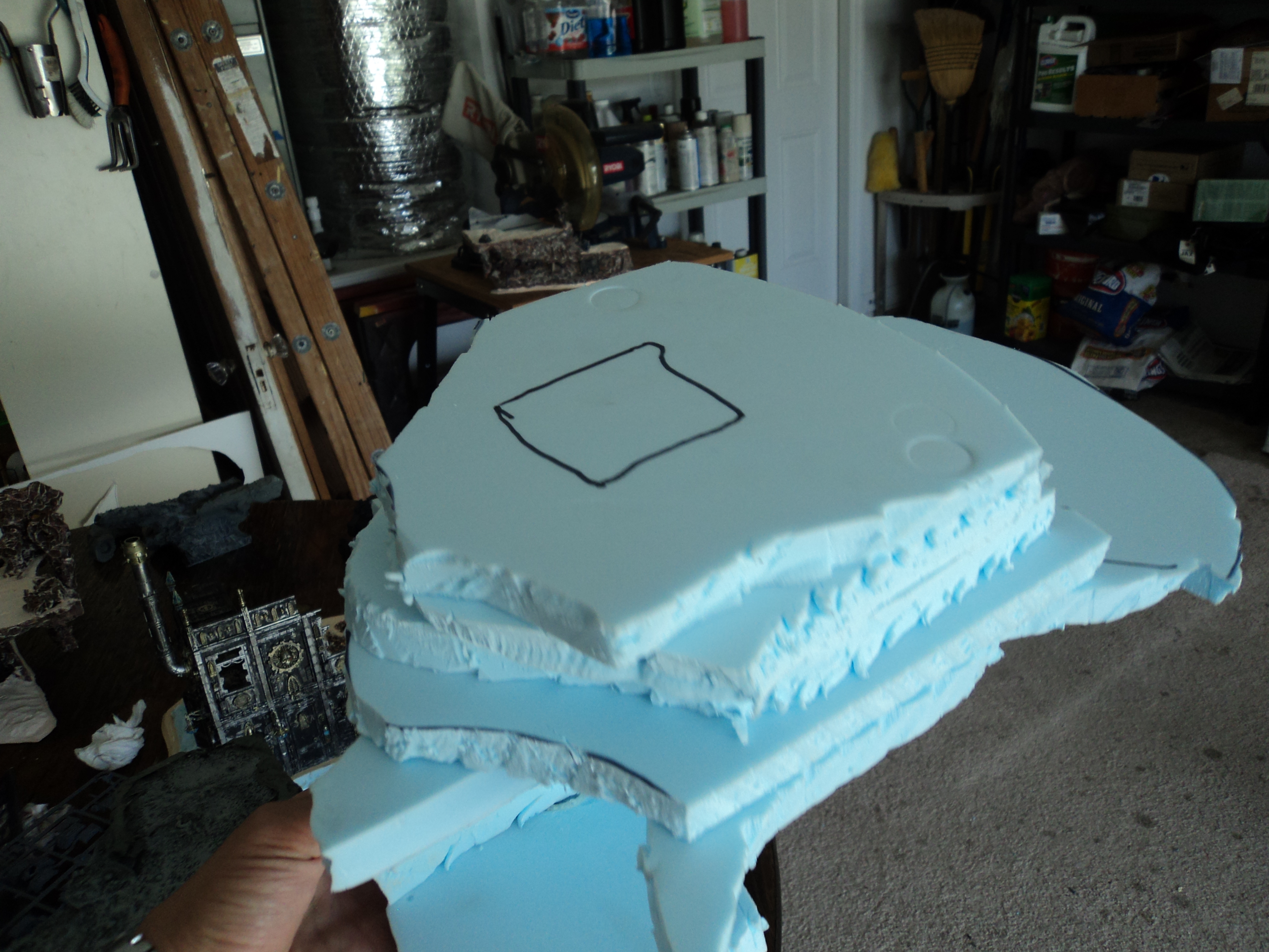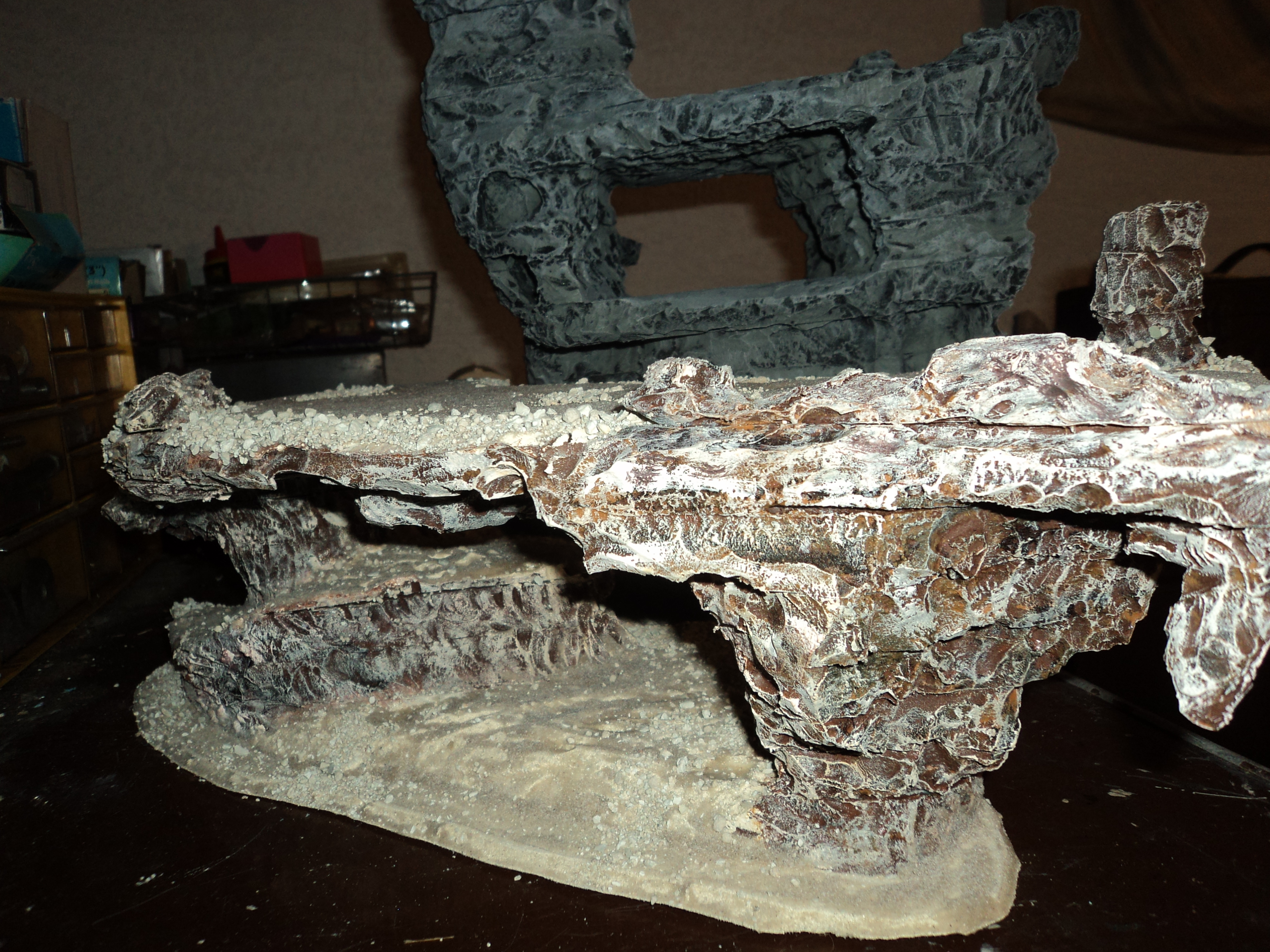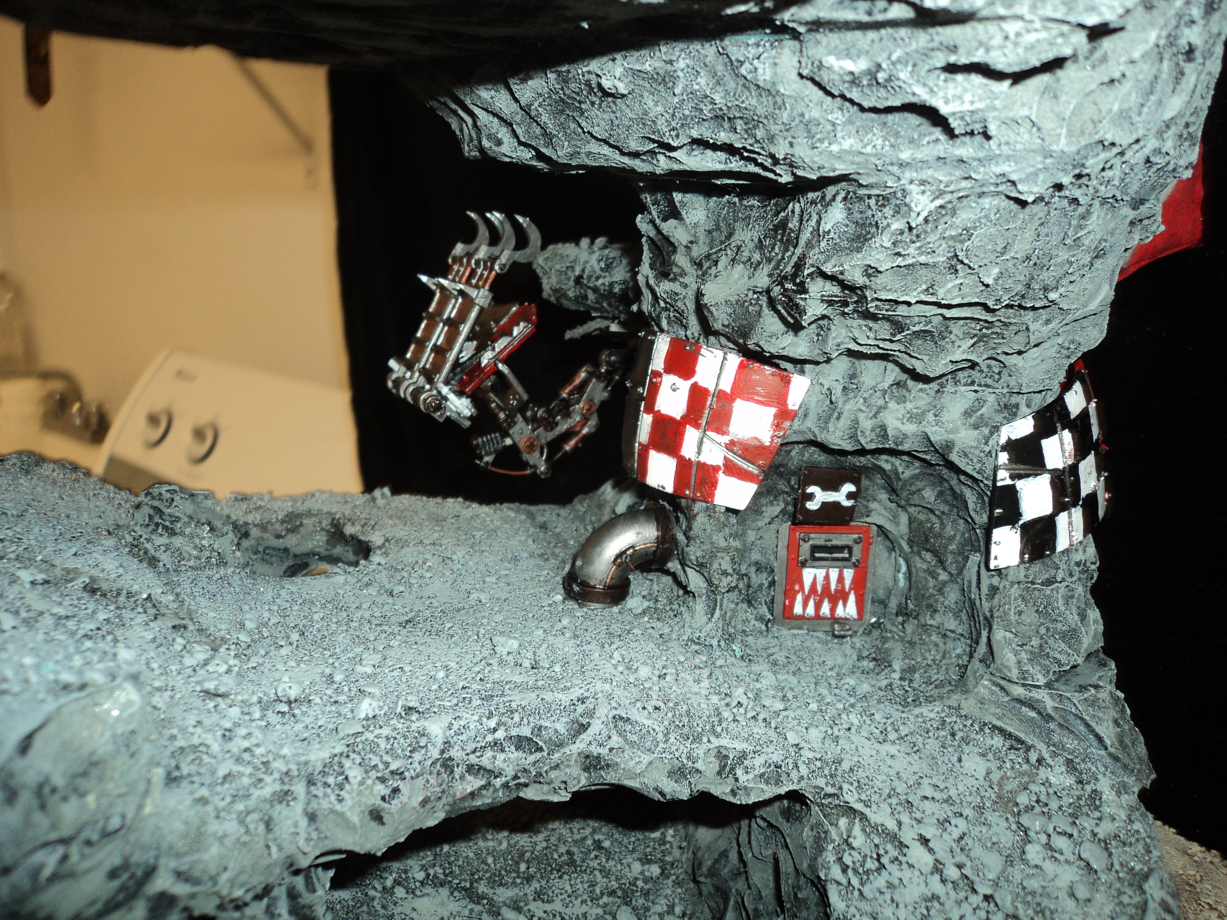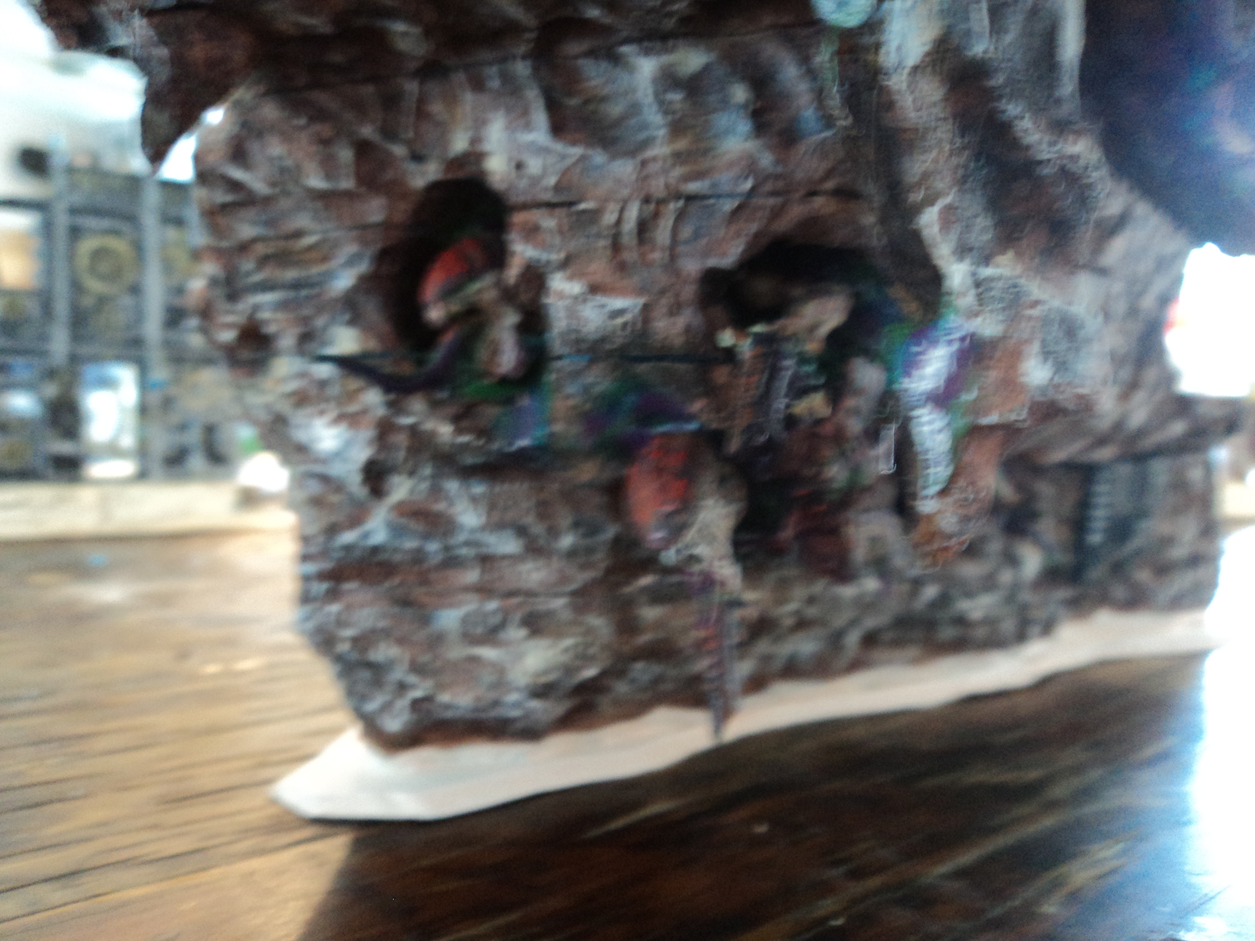 Ork Rok: The Rok is over 19in tall. It features 4 separate levels (as far as CoD would classify), and each level has multiple access points connecting to the base of the terrain. Bits will soon be covering this in the next 72 hours. Like the terrain, it is constructed out of blue foam merging with a dremmel, as well as numerous coats of paint. Flocking also lies in its future