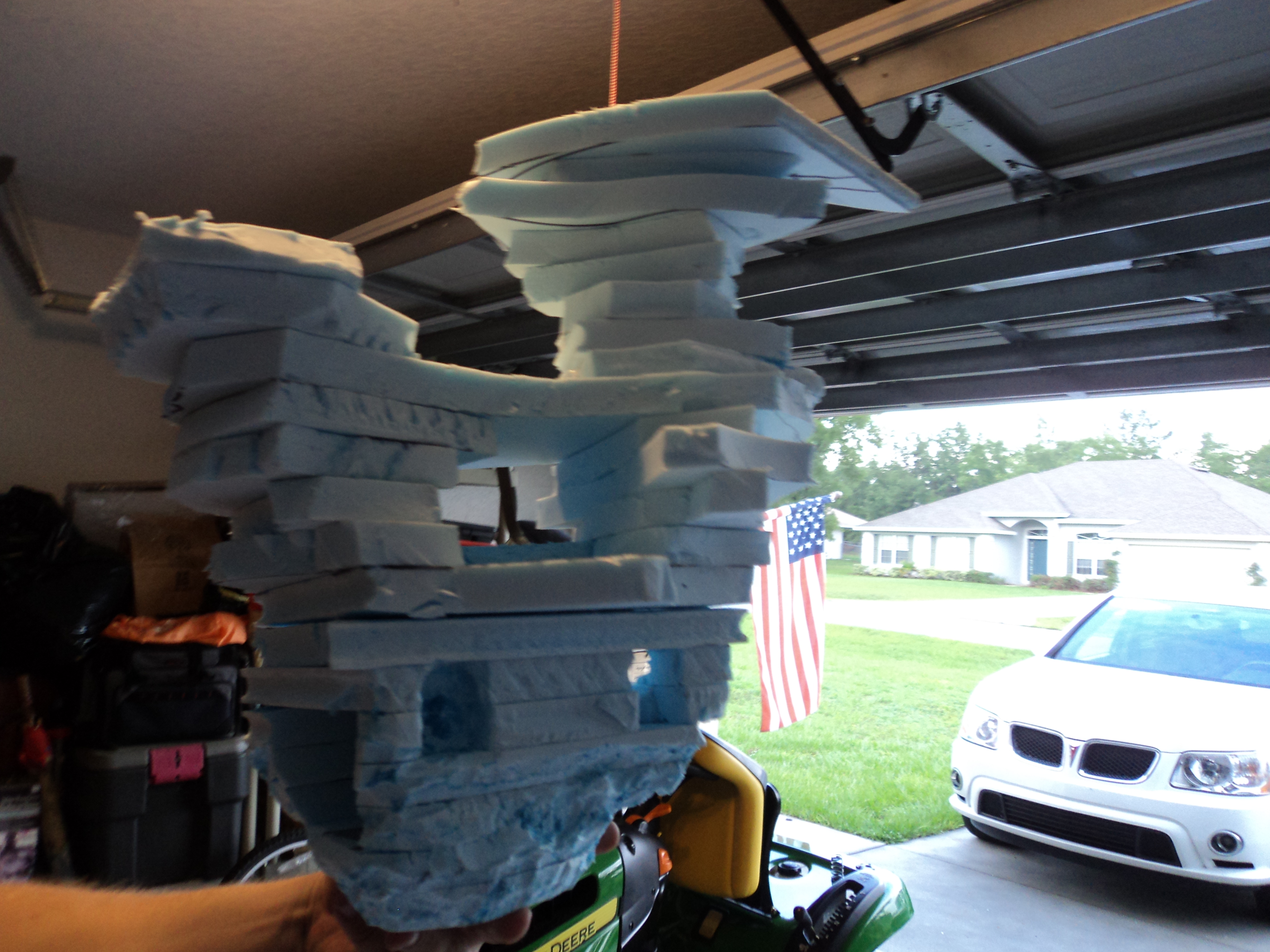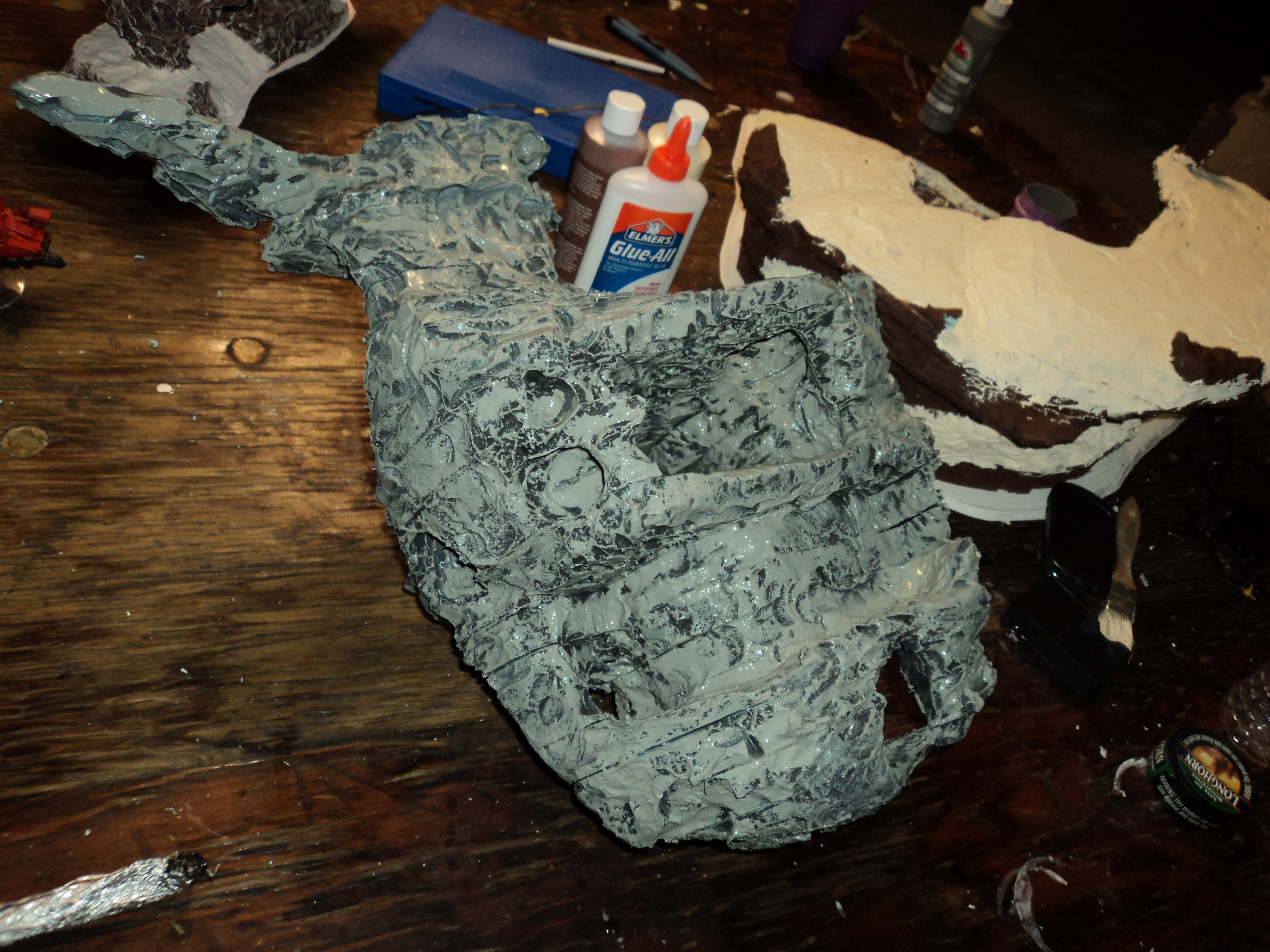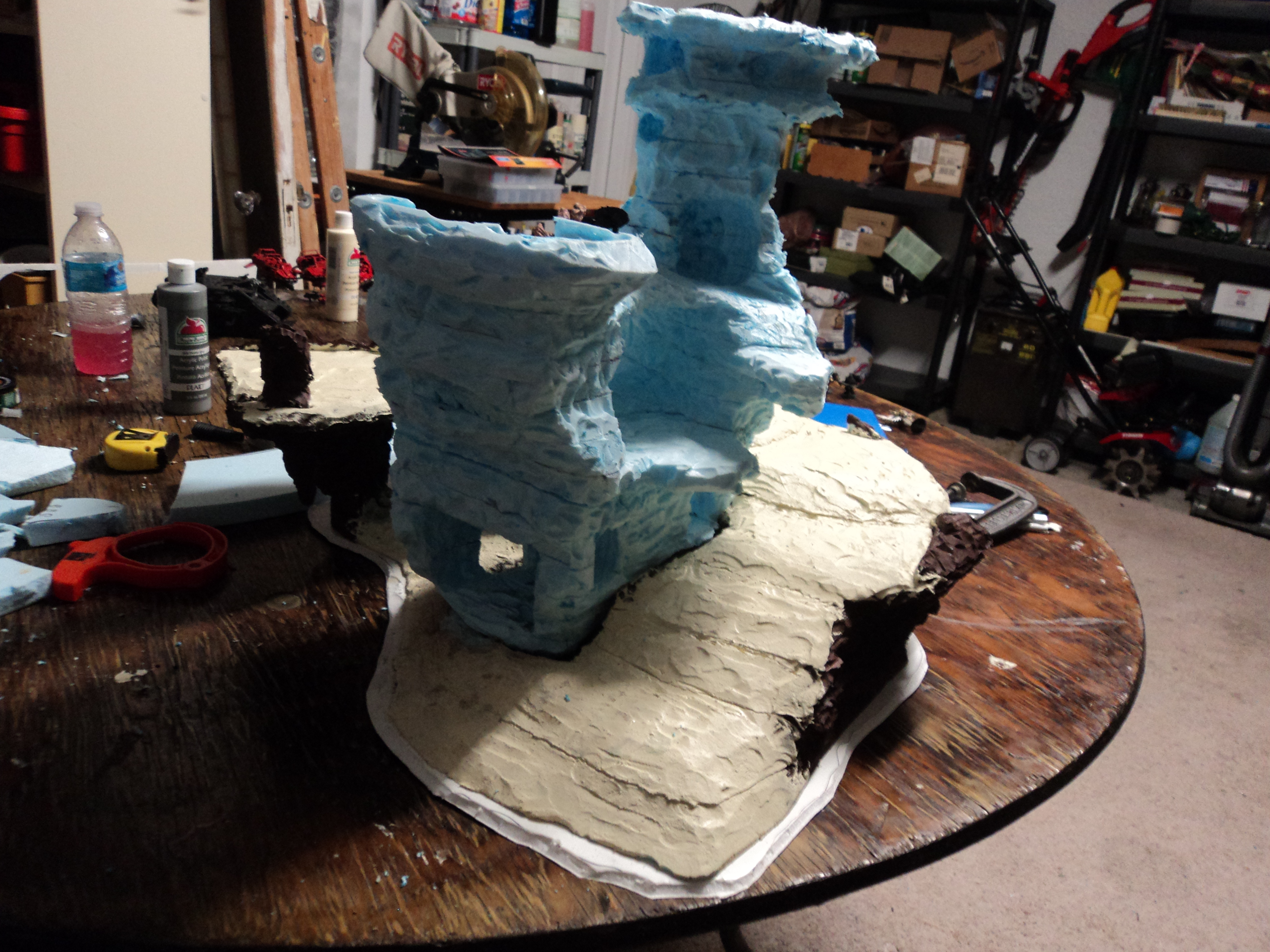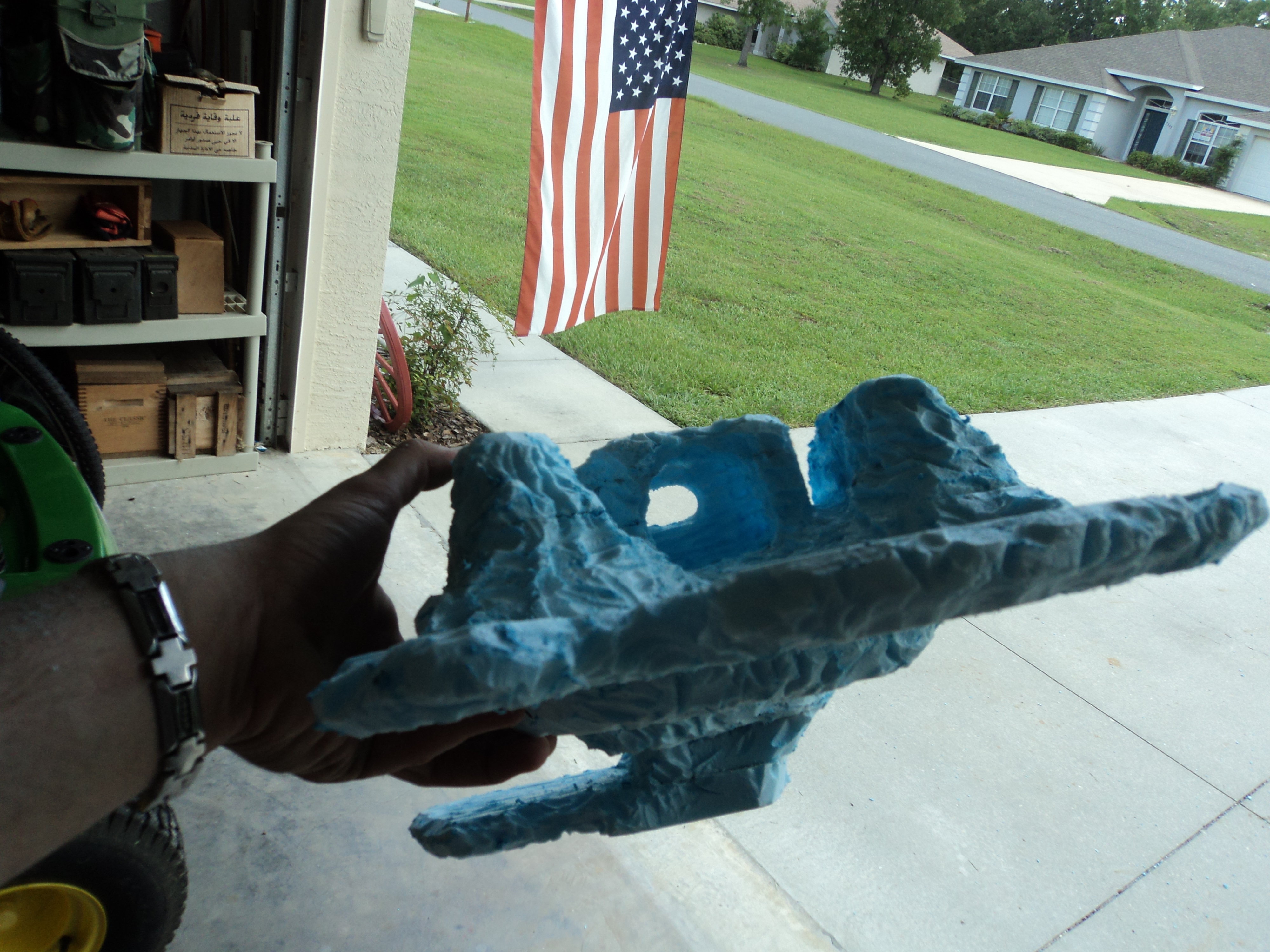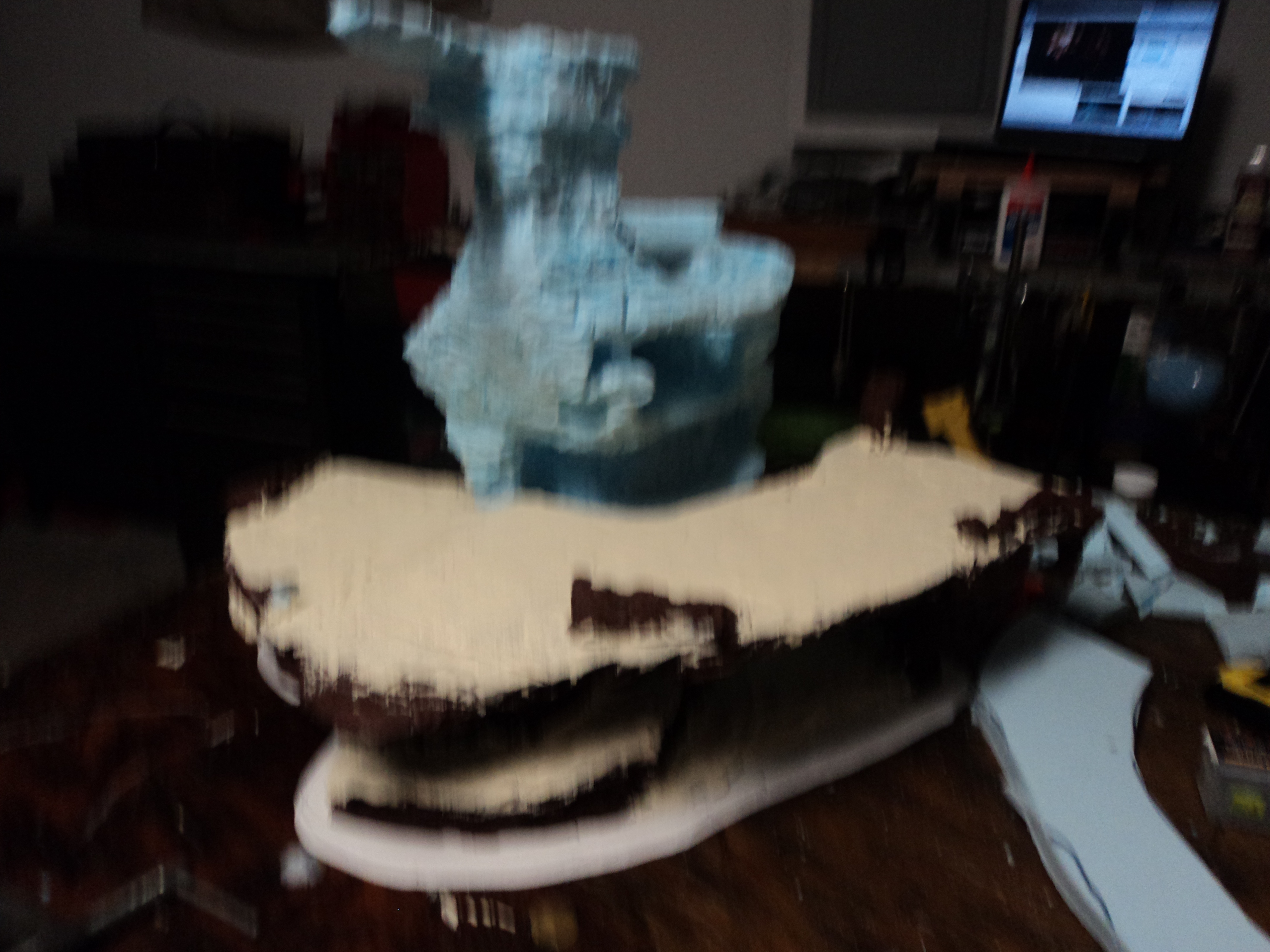 Ork Rok: The Rok is over 19in tall. It features 4 separate levels (as far as CoD would classify), and each level has multiple access points connecting to the base of the terrain. Bits will soon be covering this in the next 72 hours. Like the terrain, it is constructed out of blue foam merging with a dremmel, as well as numerous coats of paint. Flocking also lies in its future
