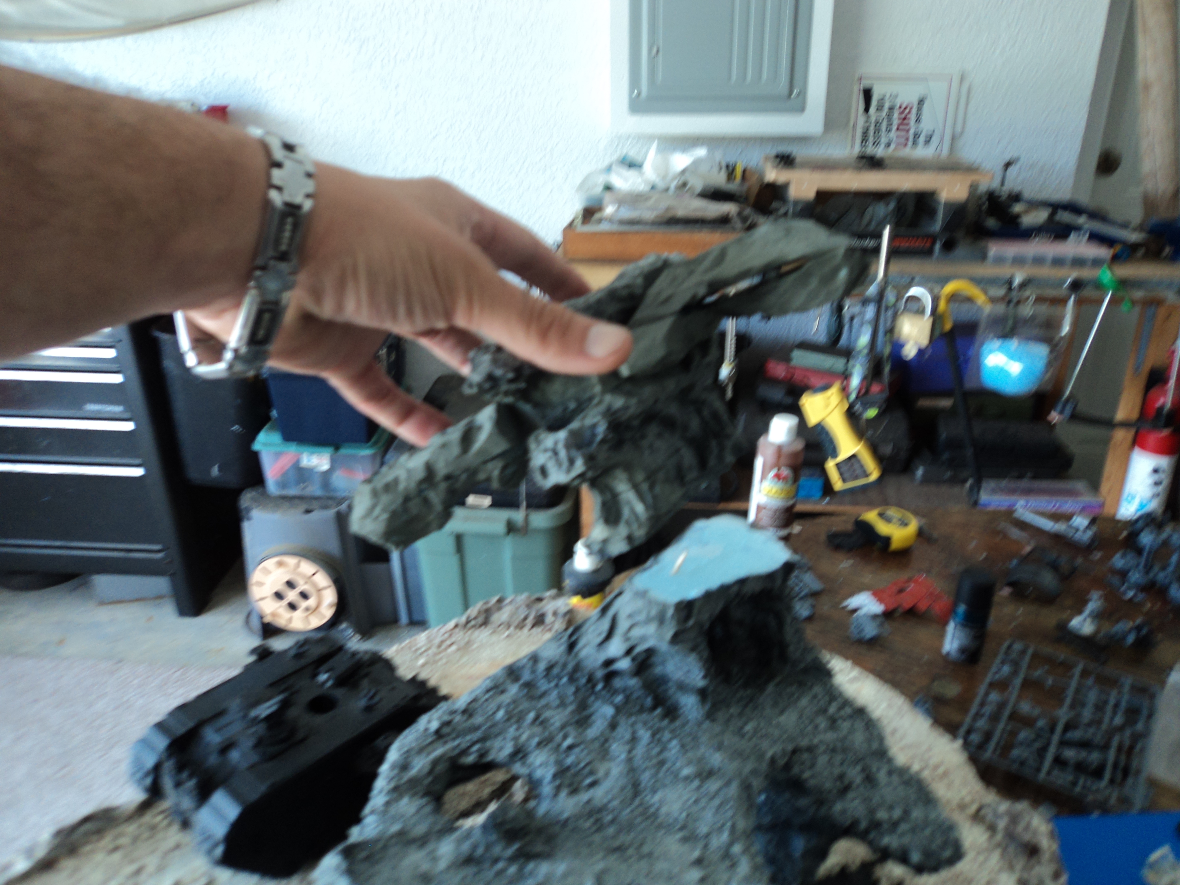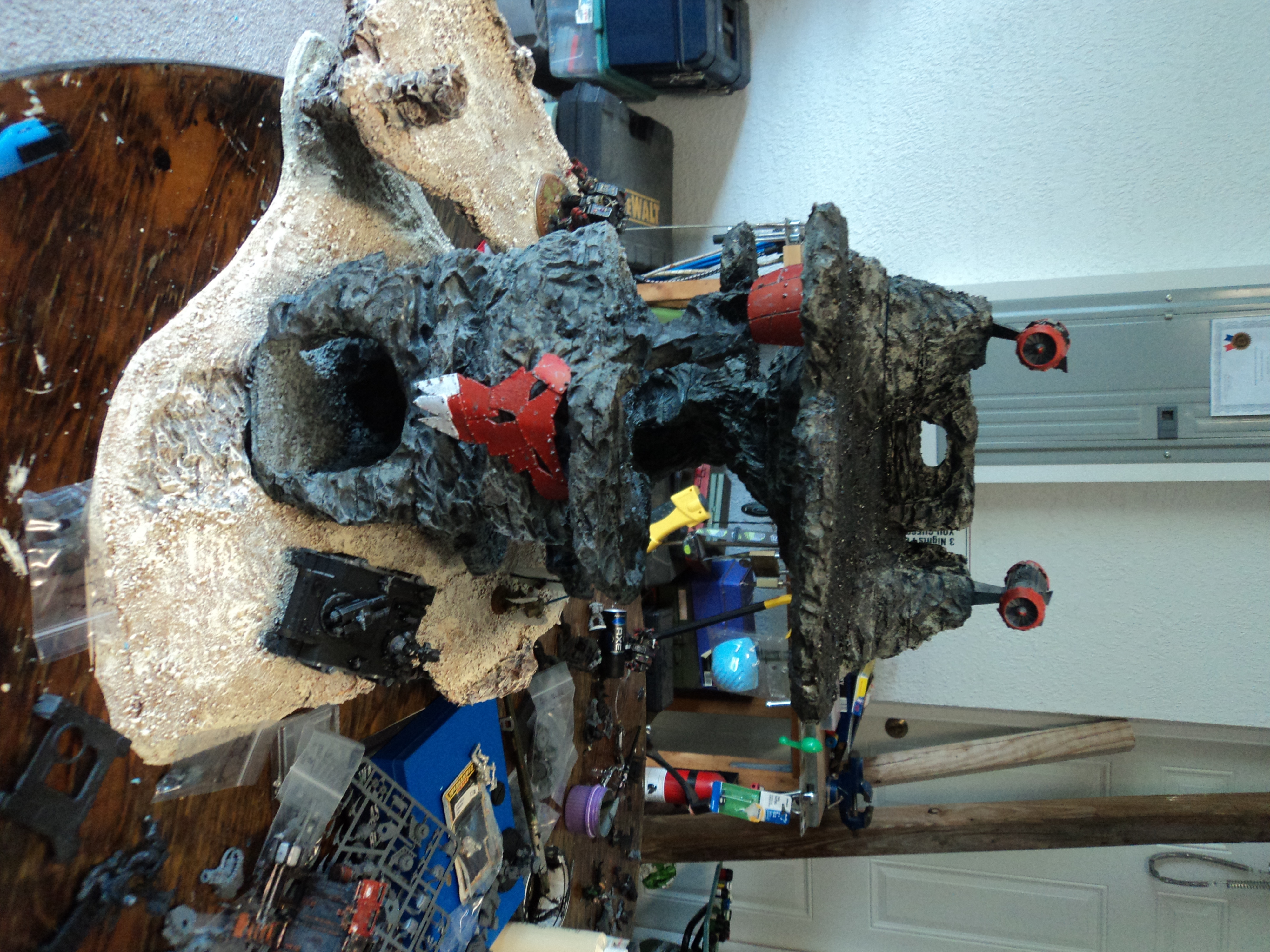 Huge Update: It's the weekend finally, and I've gotten a huge amount of bits in throughout the week. I also got my own wonderous Waagh vision and decided the Rok needed a major change. Things just didn't fit the way I was planning. This is the first of many progress reports coming in the next few days. and I am in high gear/ fully supplied for some production. 22in Removable Ork Rok, stands just over 2 ft on it's terrain base. Excited. Lot's of detail work but the main structure is now ready