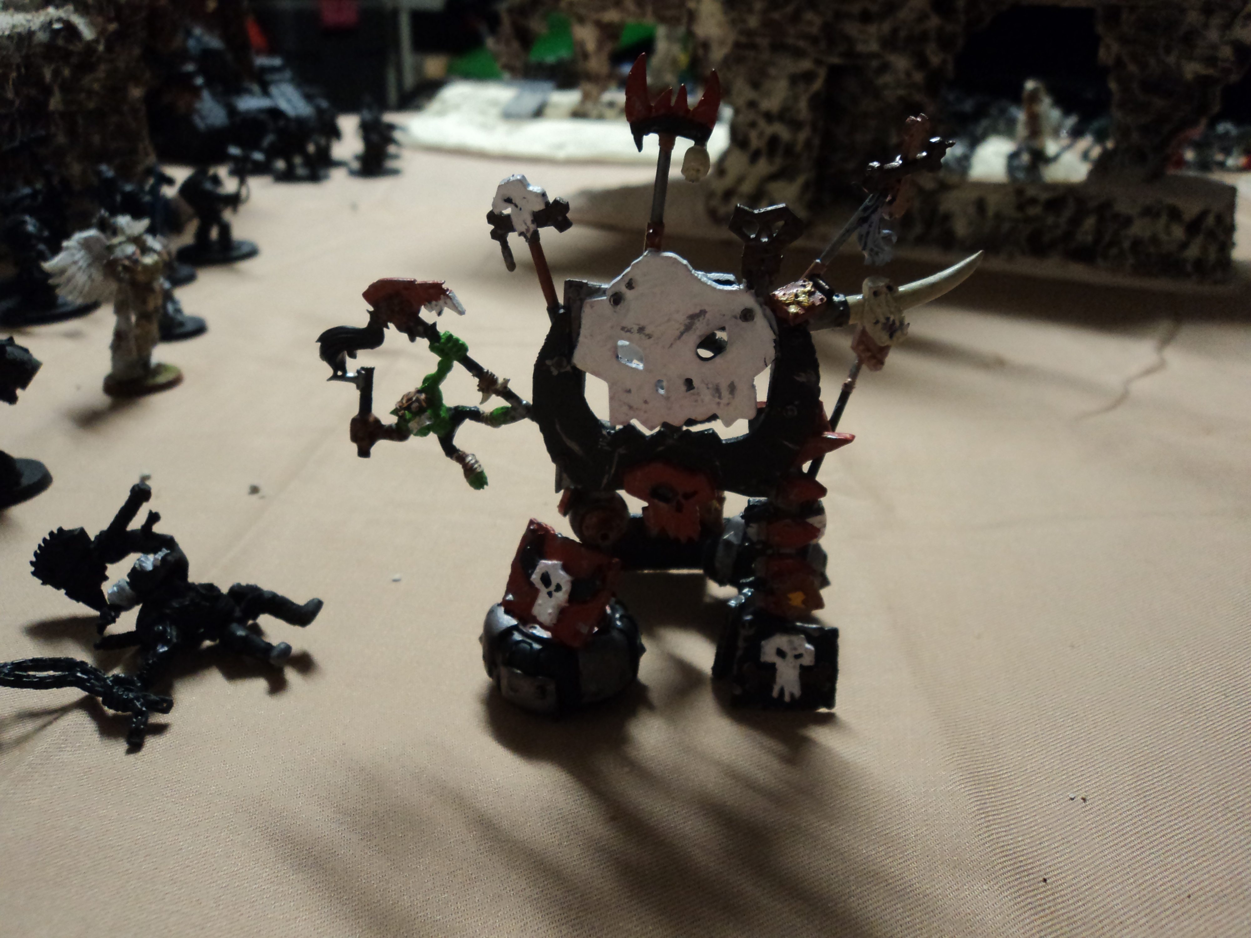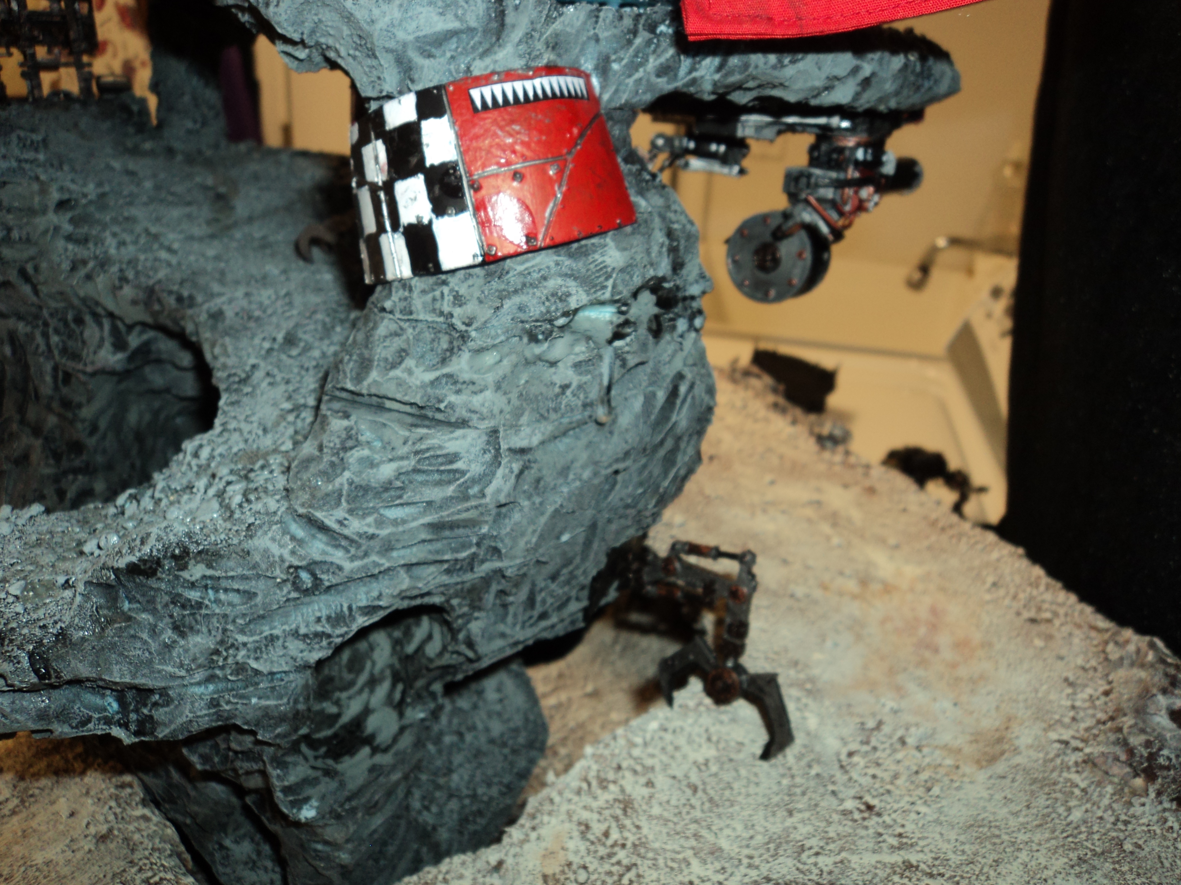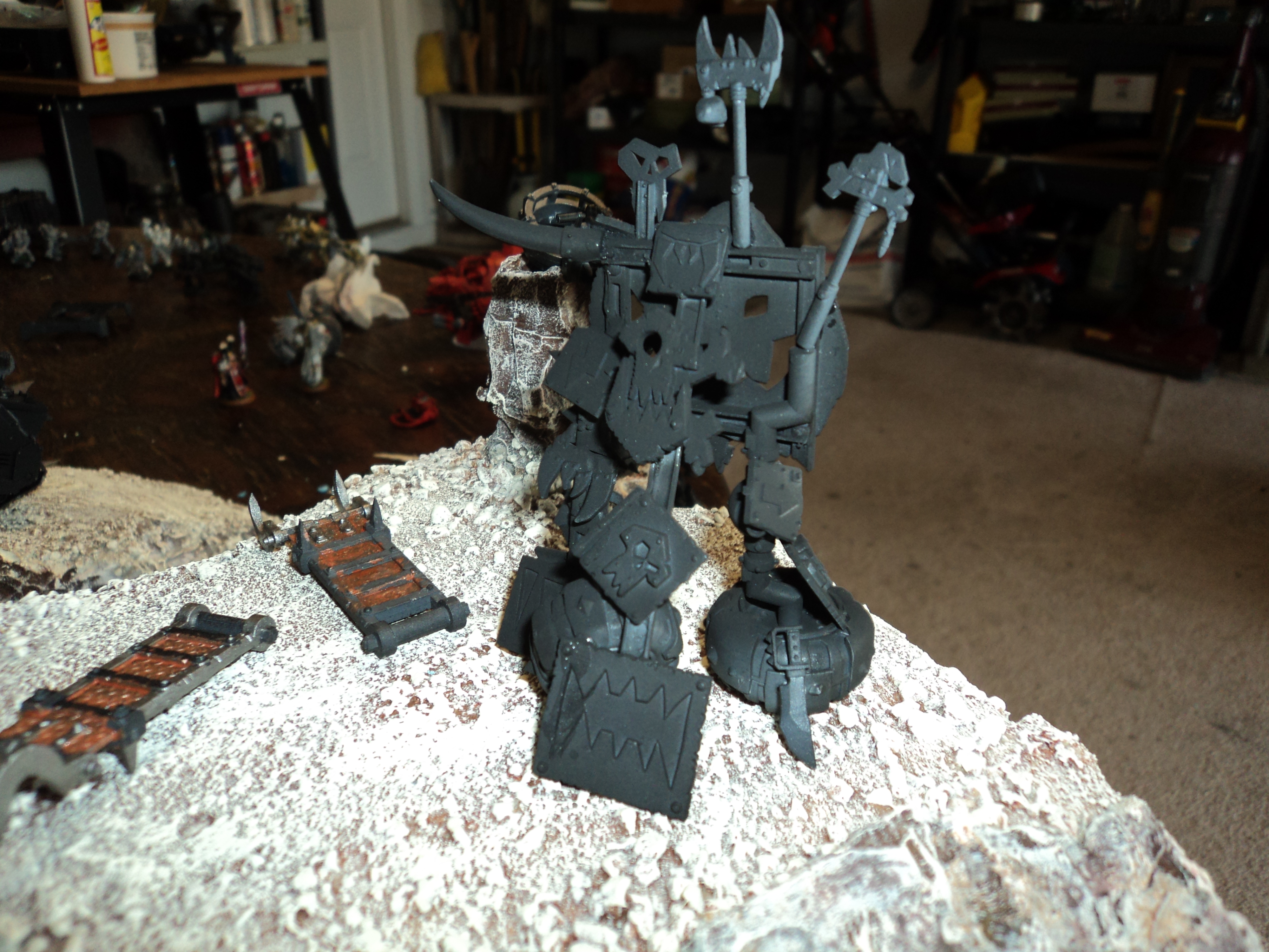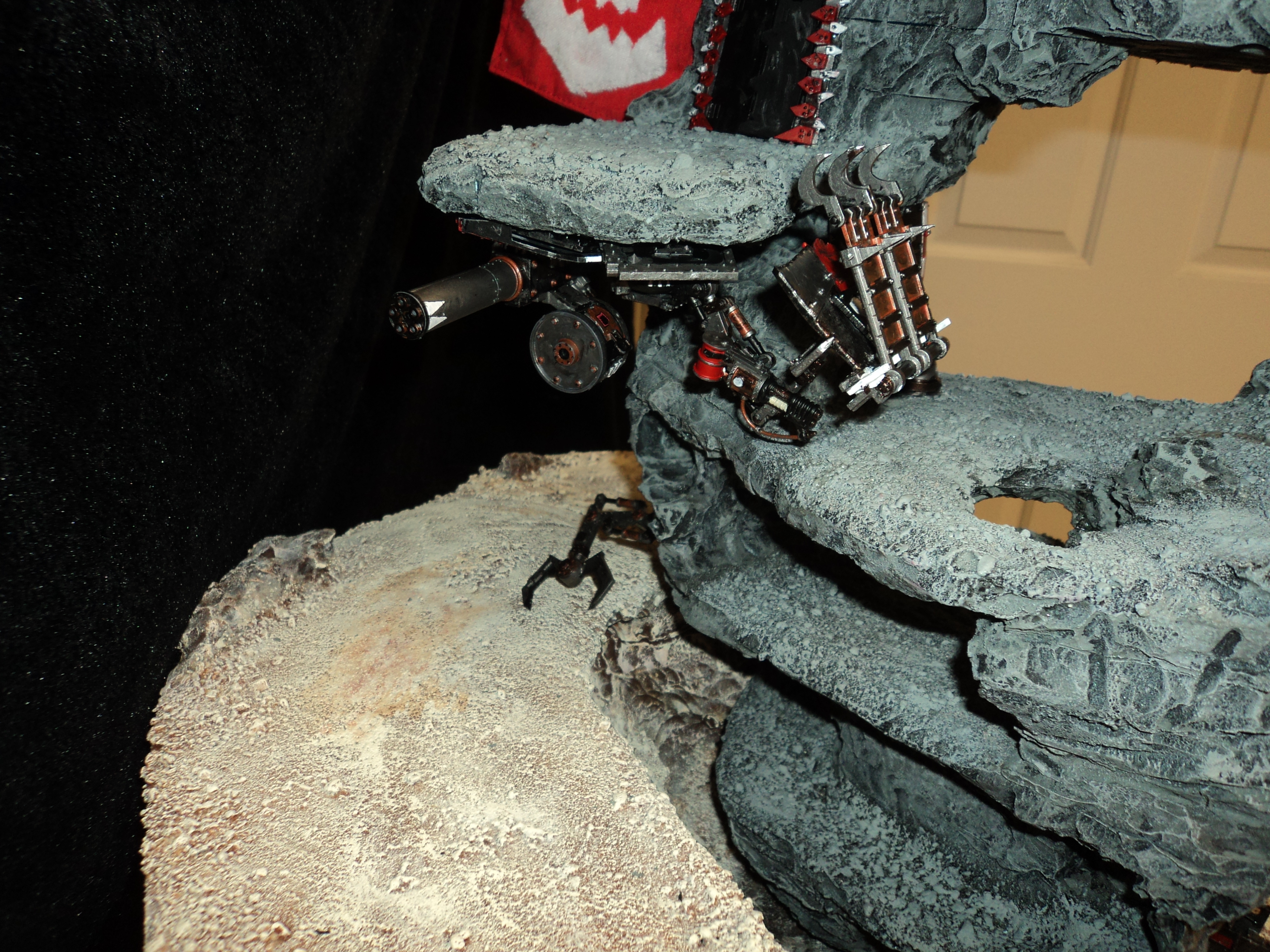 It could definitely have an Apoc role though, maybe even CoD. I figure we would assess it a Points cost, and in paying that cost you would benefit from its heavy artillery, defensive claws and such, and perhaps Waagh enhancing banners amd glyphs. Structure points of course, and perhaps even a DS option as mentioned.