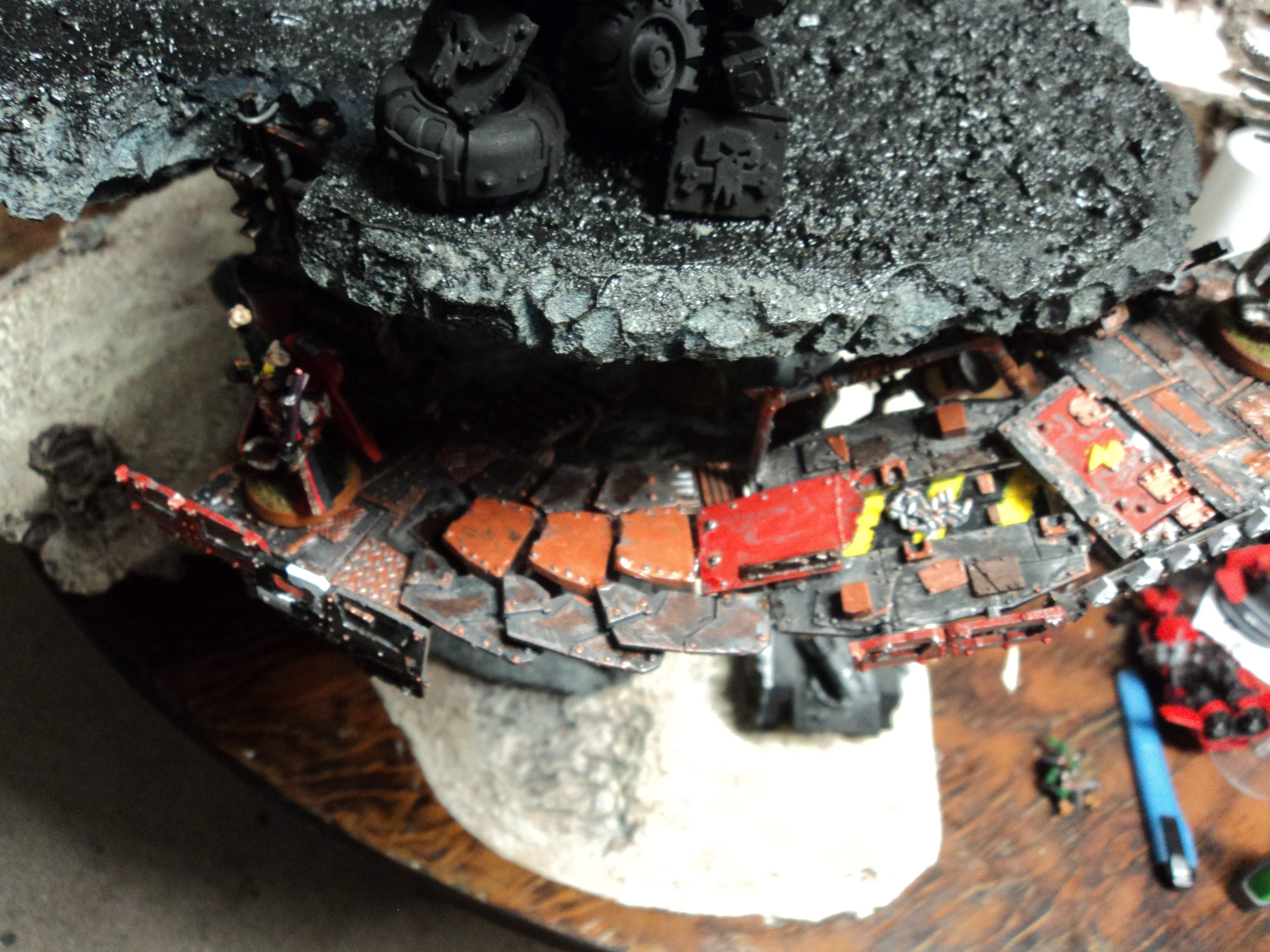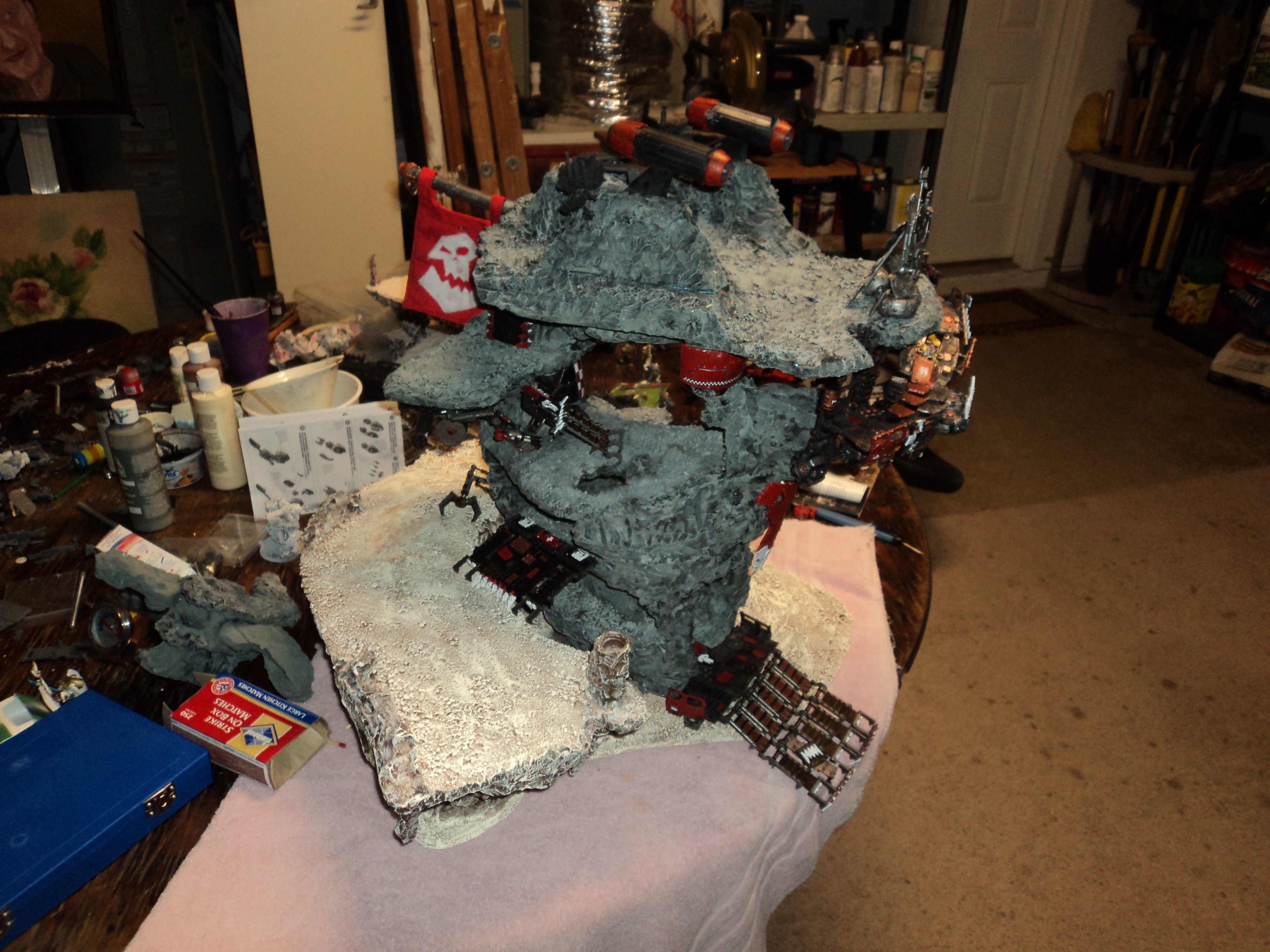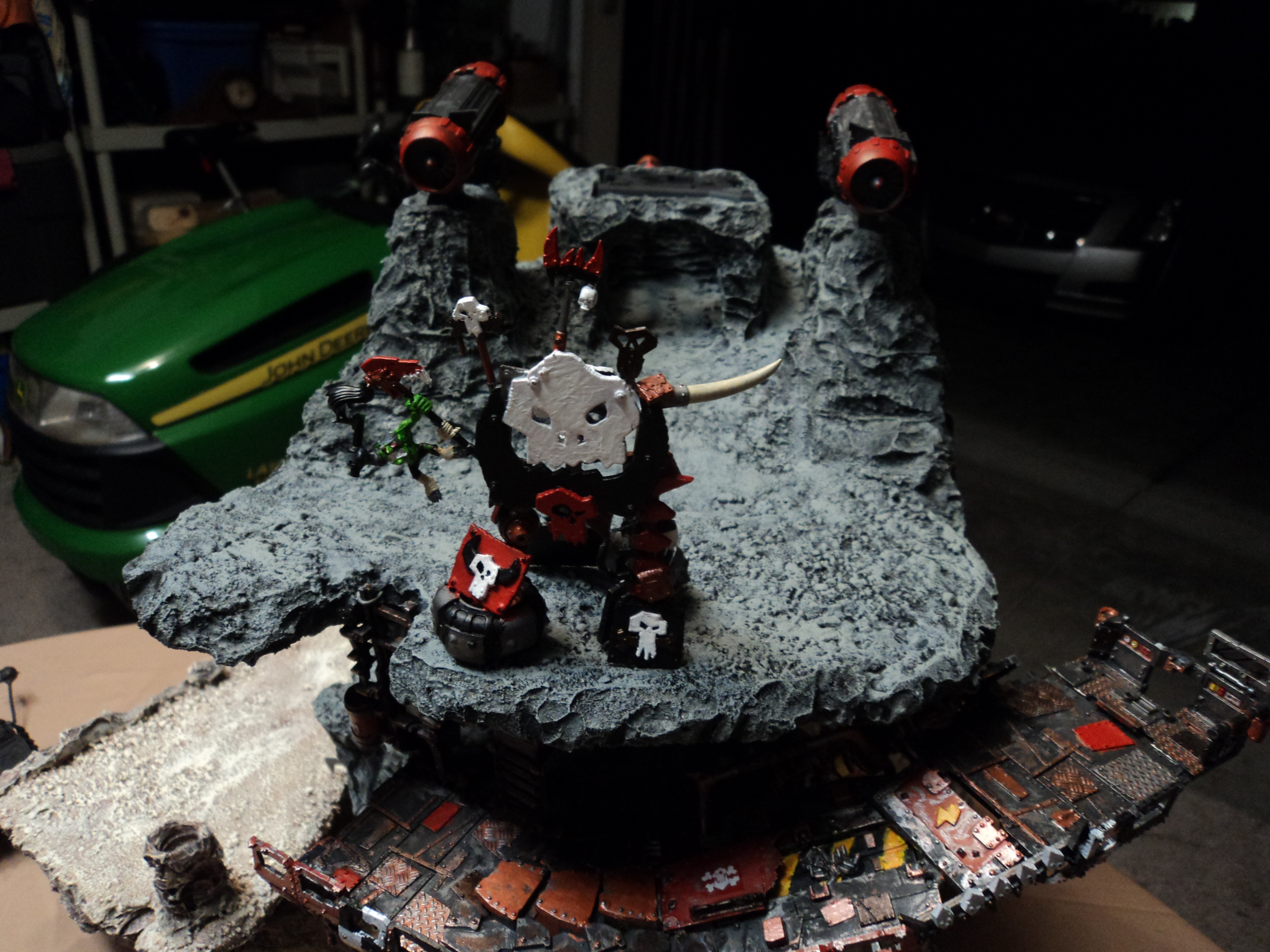 Alright, the Rok and Base are both complete! Now, the real fun begins. Turning one multi-level chunk of Rok into a venerable Orkish space seige vehicle! Still painting the Stompa faceplate, but I threw it on there to contribute to the ending vision. Thoughts, feelings, comments on this?