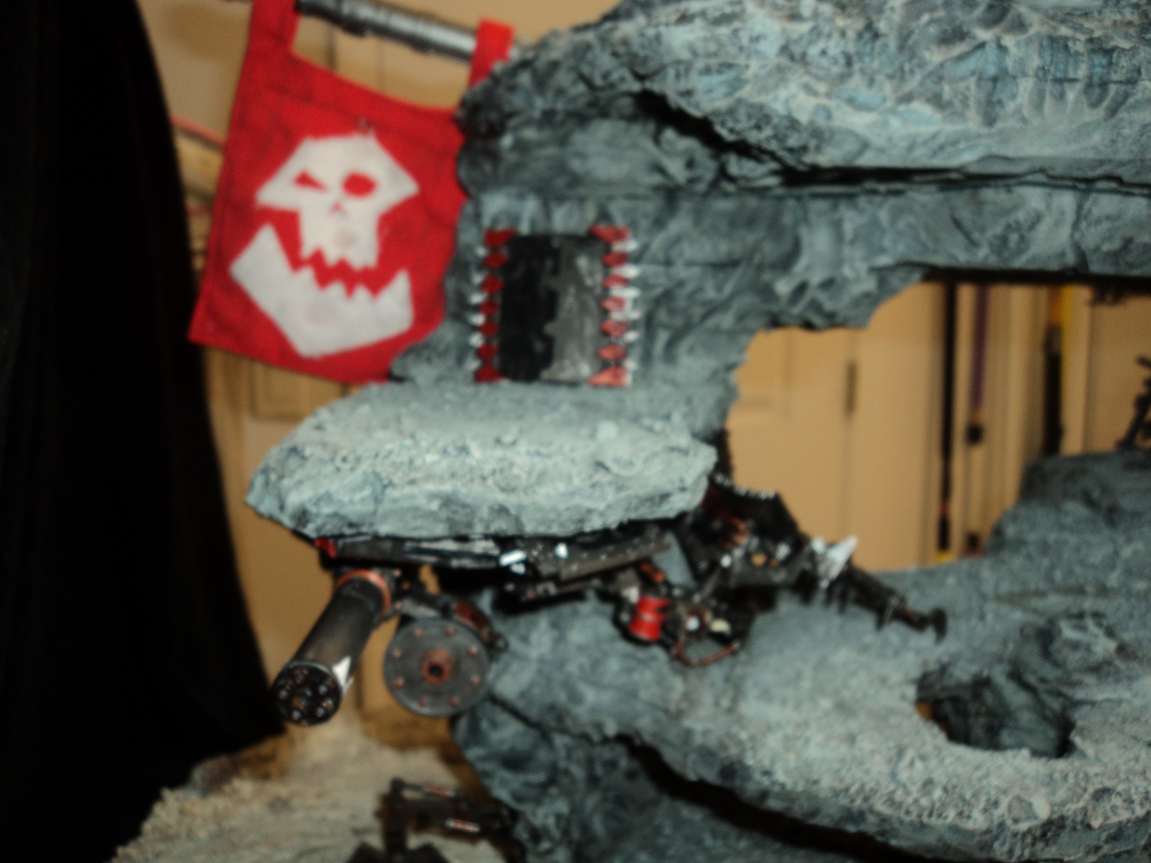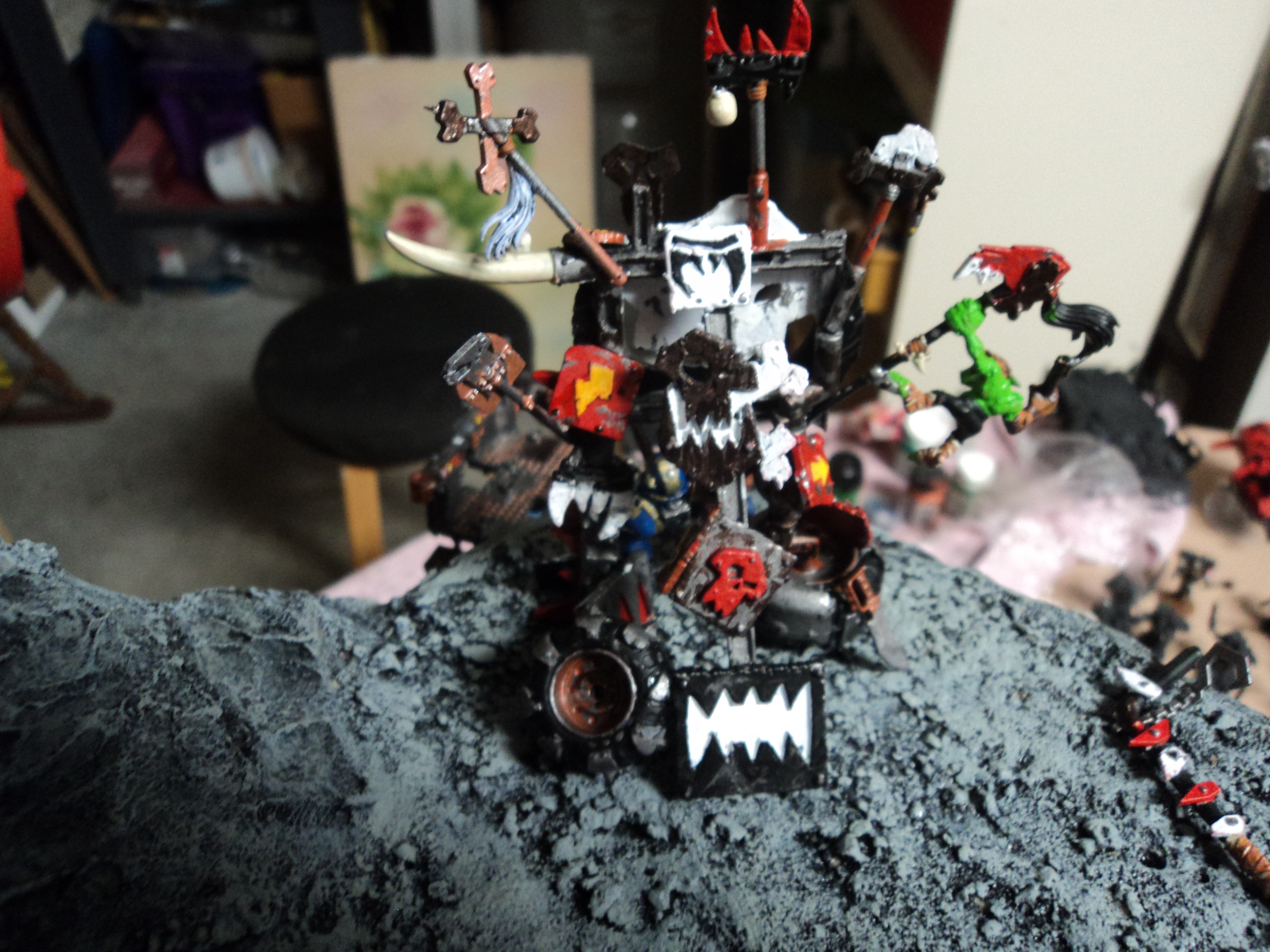 Ok I'm on the grind now. I'm trying to get the rok fully flocked, while I got the details bits being painted/assembled on the side. Here's a lil shot of what I' working with. The center piece of course... Waagh Banner.