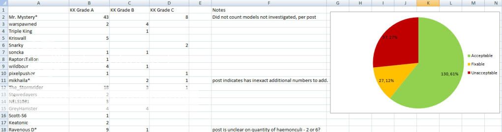 Gorechild wrote:I ordered some finecast online at the start of the week (2 boxes of wracks and a succubus) and when I opened them, 8 out of the 11 models were miscast. 2 of the 3 that werent had one or two little bubbles in, but were usable.