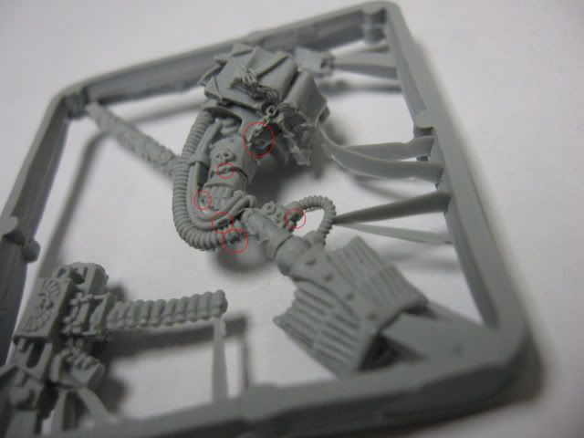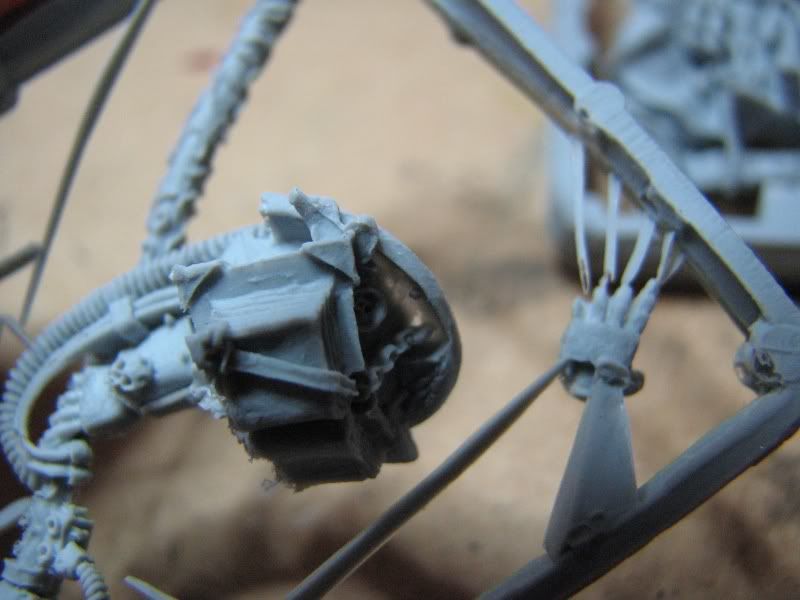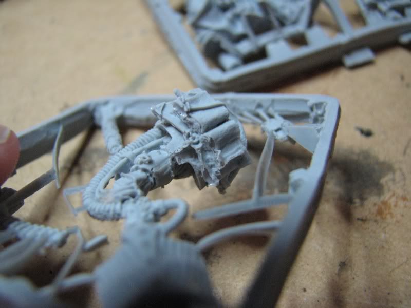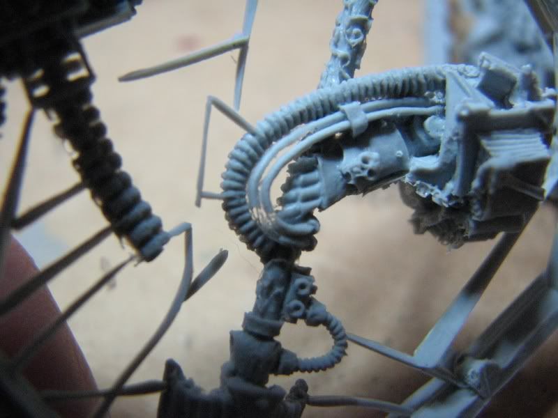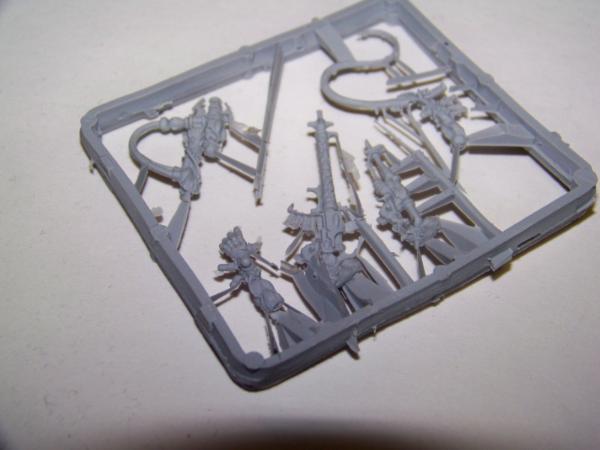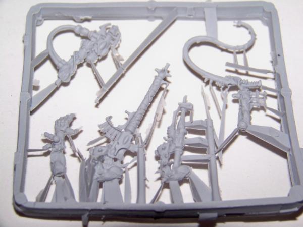 If you work on Wracks take great care removing mould lines, especially on their spinal backs, make sure you have good purchase on the botton of the area you are trimming, otherwise it'll snap. It's also very easy to carve through areas like the syringe tops etc if you are not careful.