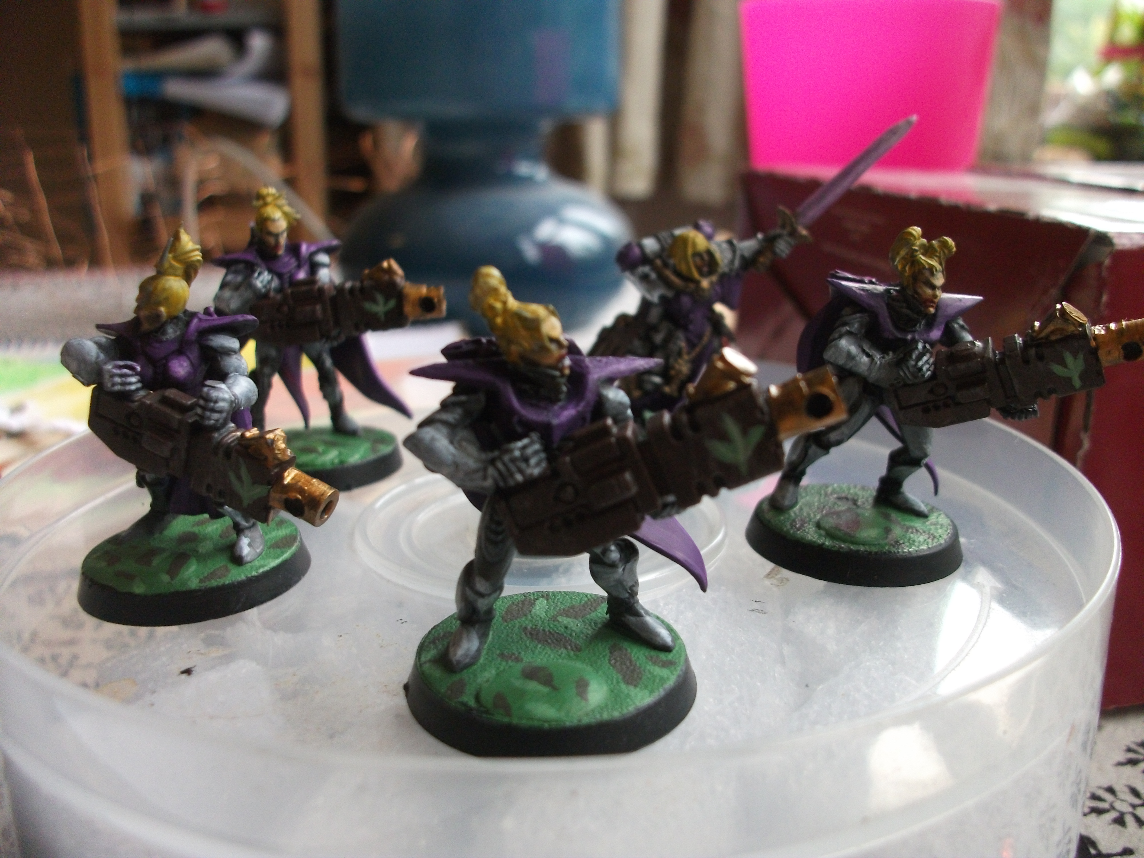 I decided wood elf glade guard and dark eldar could give me a good source of plastic sisters to convert. This involved begging my friends for