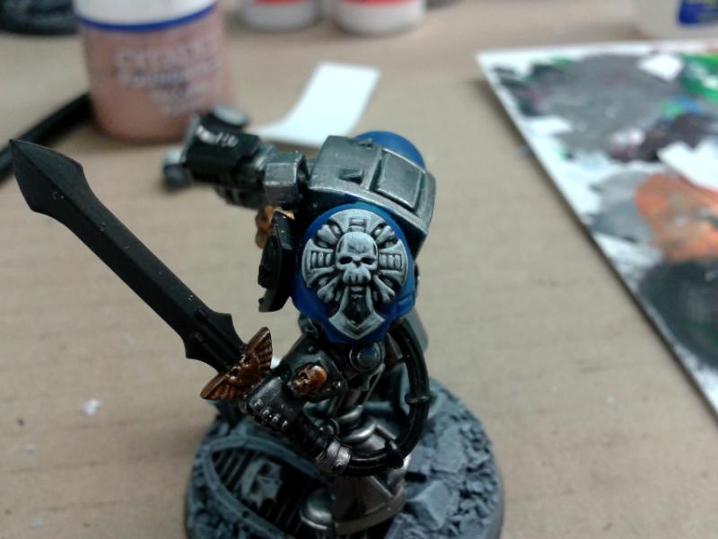 Been thinking about adding something to his left shoulderpad but I am unsure.. I want to ceep it clean, not cluttering up the model with too much detail.