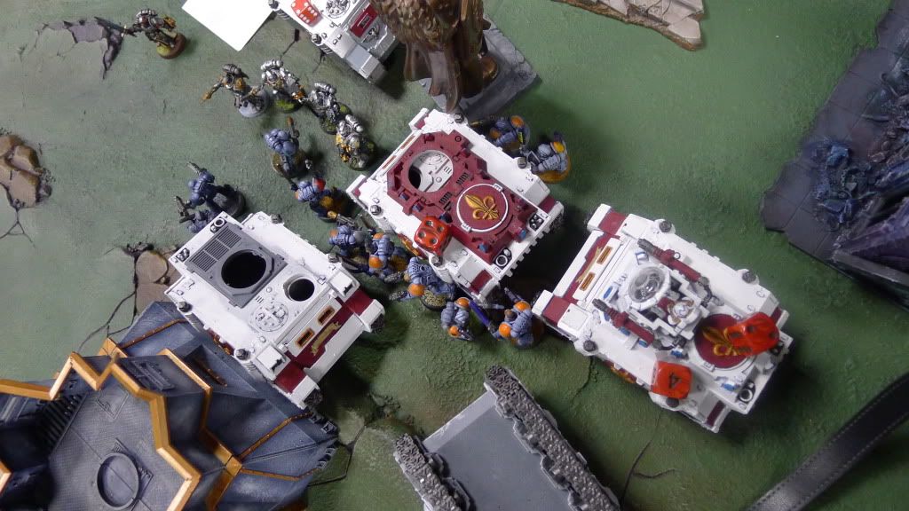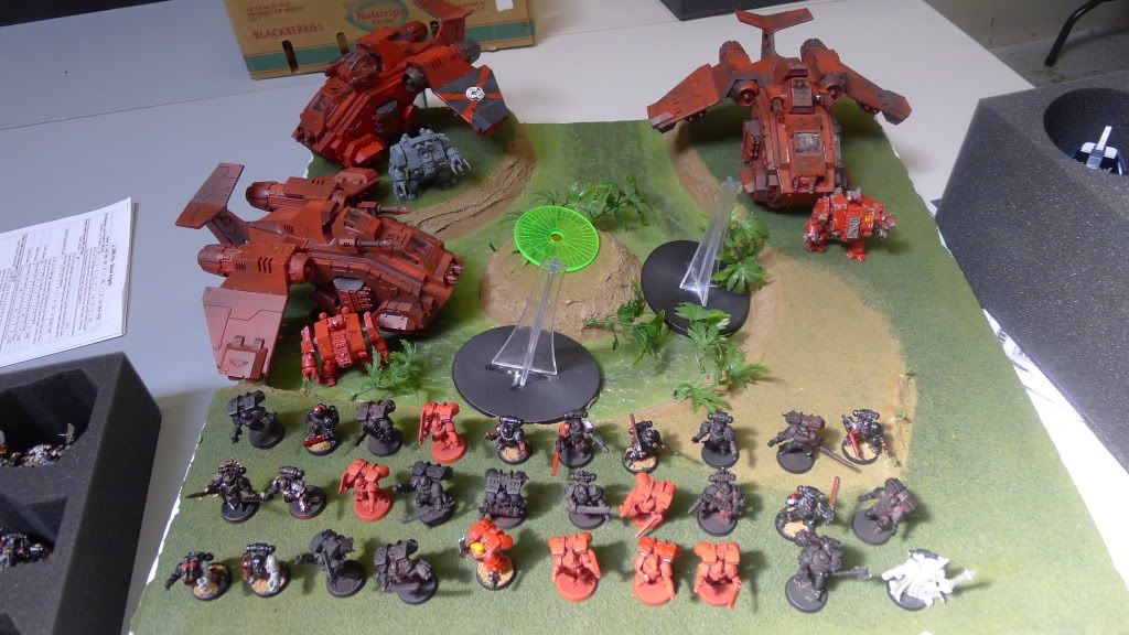 1) Neat as the 3 Stormraven's are, it's probably better to have one of them be a Land Raider. Just in case, Y'know, some body was crazy and took 5 freaking psyflemen, and they had nothing better to do.